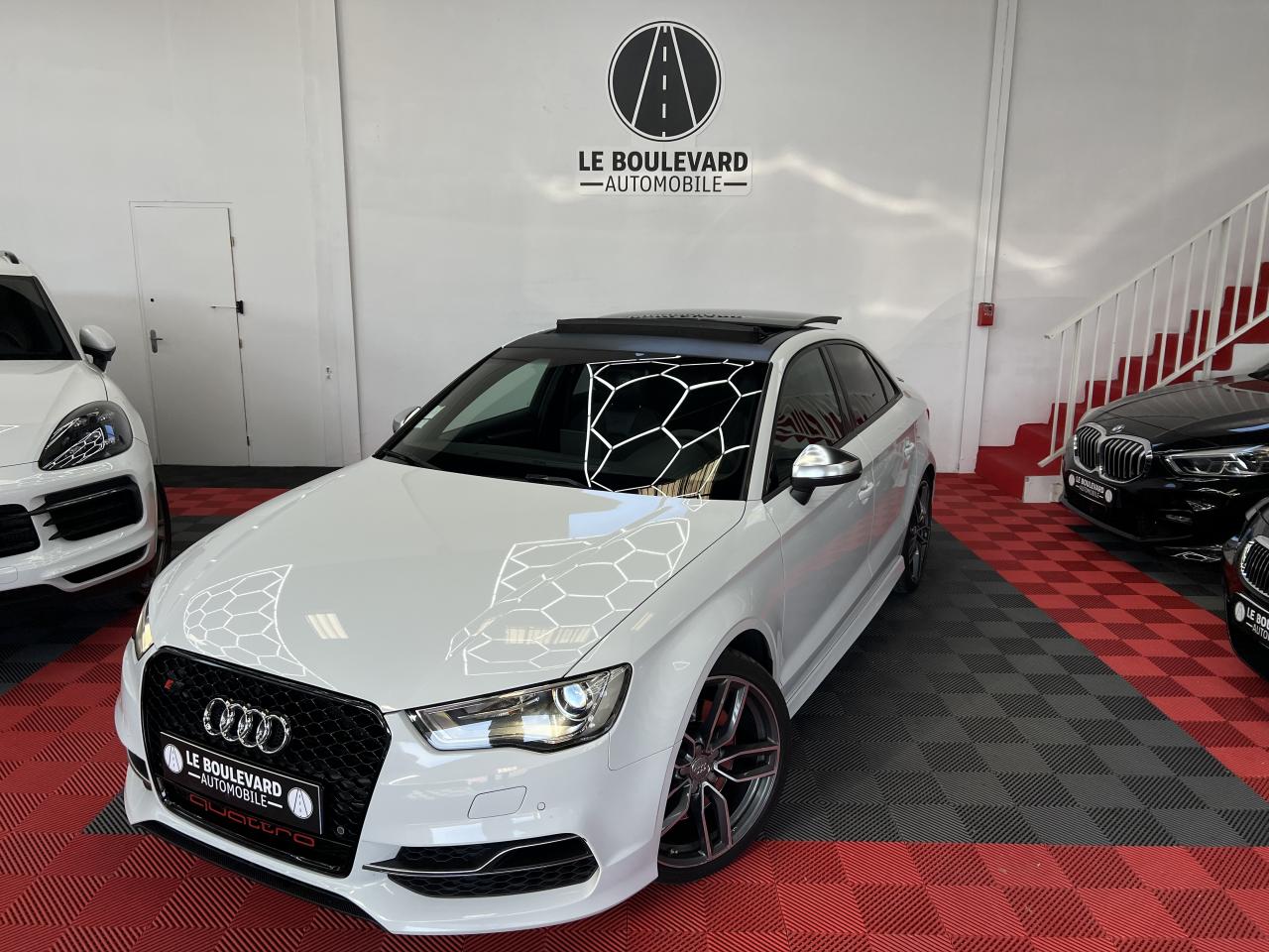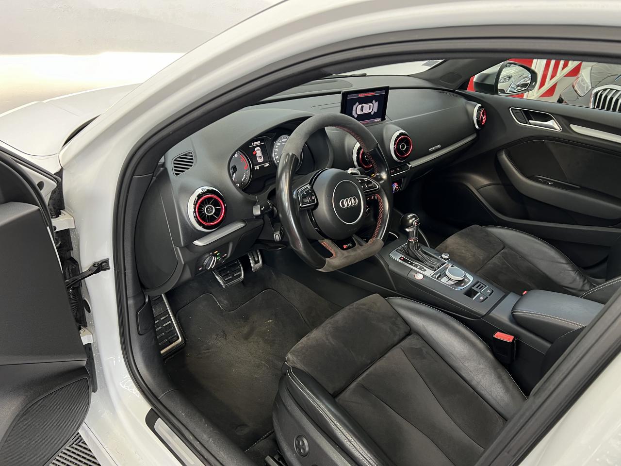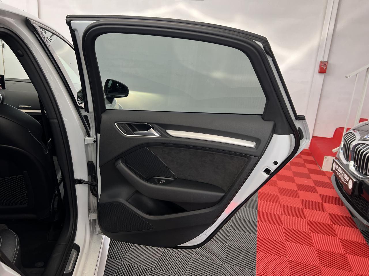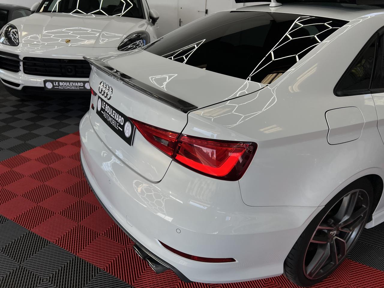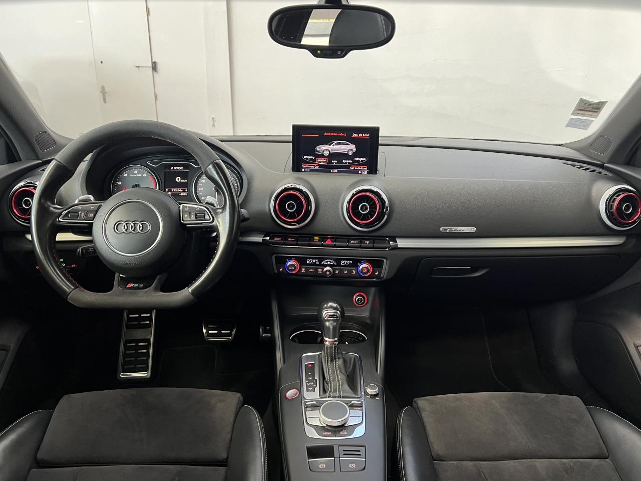 Accoudoir central avant, avec vide-poches relevable, inclinaison réglable et coulissant en longueurAirbag de genoux coté conducteurAirbags grand volume pour conducteur et passager avantAirbags latéraux à l'avant intégrés au dossier des siègesAlarme antivol : avec protection anti-remorquage par capteur d'angle d'inclinaisonAllume-cigare et cendrier amovible, couvercle chromé avec anneaux Audi, allume-cigare sur la console centrale au lieu de la prise 12 volts de sérieAntipatinage électronique ASRApplications décoratives sur les contre-portes et tableau de bord "Aluminium brossé mat"Audi Drive Select, permet différents réglagesAudi parking system à l'arrière facilitant le stationnement dans les limites du système à l'aide d'un signal sonoreAudi Premium Tracking SystemAudi Sound System avec 10 haut-parleursBecquet arrière S3 laqué dans la couleur de la carrosserie au niveau du capot de coffreBlocage électronique de différentiel (EDS)Boîte à gants grand volume côté passager avant, éclairéeCalandre Audi singleframe gris platine avec entretoises horizontales chromées, avec anneaux Audi chromés au centreCarrosserie galvanisée (entièrement galvanisée aux endroits sensibles à la corrosion)Ceintures de sécurité 3 points automatiques pour toutes les placesChâssis Sport S surbaissé de 25 mm, avec suspension et amortisseurs plus fermesCiel de pavillon en tissu noirClimatisation automatique Confort avec réglage asservi à la position du soleilContrôle électronique de stabilisation (ESC) désactivable, avec amplificateur hydraulique de freinage d'urgenceContrôle de ceinture attachée pour toutes les placesContrôle de la pression des pneusDétecteur de pluie et de luminositéDirection progressive contribuant à une augmentation de la dynamique de conduiteDossier de banquette arrière rabattable en deux parties 40/60 ou complètementEcrous de roues antivolFeux arrière avec feux de recul blancs et feux de brouillard arrière, incluant troisième feu stop surélevé et éclairage de plaque à LEDFeux de freinage adaptatifsFeux de route assistés : gestion automatique du passage de feux de croisement à pleins phares et inversementFixation pour sièges enfants ISOFIX et Top Tether pour les places arrière extérieuresIdentification du modèle/technologie sur le capot de coffre ; sur demande sans identification du modèle à l'arrièreInscription quattro sur la calandre, le capot de coffre et le tableau de bord côté passagerInscriptions S3 sur la calandre, le capot de coffre, les baguettes des seuils de portes, les étriers de freins avant, le volant Sport, le pommeau de levier de vitesses et le compte-toursJantes en aluminium coulé style 5 branches structurées avec pneus 225/40 R 18Lève-vitres à l'avant et à l'arrière, électriques, avec protection antipincement, ouverture/fermeture par le verrouillage centralisé, fonction ouverture/fermeture par impulsionLave-essuie-glace 2 vitesses, 4 intervalles de balayage réglablesMMI GPS plus avec données de navigationOEilletons de fixation, 4 dans le coffre, pour maintenir les bagages et objets dans le coffre, points de fixation pour le filet mixte en optionOutillage de bord dans le coffre incluant un cricPédalier en acier inoxydable brosséPack aluminium extérieurPack aluminium intérieurPack EclairagePack rangement et coffrePare-brise acoustique, améliore l'isolation phonique du pare-brise et réduit les bruits extérieursPare-chocs laqués dans la couleur de carrosserie avec prises d'air latérales accentuées, extension de bas de caisse ainsi que diffuseur S à l'arrière au design résolument sportifPare-soleil rabattables et pivotants, côtés conducteur et passager avant, avec miroir de courtoisie occultablePatères à vêtements sur les montants de pavillon centraux, à gauche et à droite, simplesPoignées de maintien. 4 poignées avec mécanisme amortisseur, rabattables, encastrées dans le pavillonPréparation pour téléphone portable (Bluetooth), commande sur volant multifonction, mains libres et audiostreamingPrise de courant 12 volts sur la console centrale à l'avantProtection antidémarrage électronique intégrée à la gestion du moteur ; activation automatique par la clé du véhiculeProtection latérale anticollision avec barres extrêmement rigides dans les portières et une structure latérale de carrosserie renforcéeQuattro: transmission intégrale permanente avec répartition asymétrique et dynamique de coupleRégulateur de vitesse avec maintien constant de la vitesse souhaitée à partir d'environ 30 km/hRétroviseur intérieur jour/nuit automatiqueRétroviseurs extérieurs style aluminium avec rappels de clignotant à diodes, asphérique côté conducteur, convexe côté passager avant, dégivrants et escamotables électriquementRangements dans les contre-portes à l'avant avec casier de rangement pour boissons, rangements dans les contre-portes arrièreRecommandation de repos qui analyse le comportement routier au moyen de différents capteursRoue de secours temporaire de type galetteSellerie mixte en Alcantara et cuir MilanoSeuils de portes avec inserts en aluminium et emblème S3Sièges conducteur et passager avant réglables en hauteurSièges Sport à l'avant avec estampillage SSignal sonore pour oubli d'extinction des feuxSorties d'échappement chromées, visibles et doubles, 2 sorties ovales chromées à gauche et à droiteSupport pour téléphone portable et clé avec compatiment séparé pour le rangement du téléphone portable et la clé du véhicule. Rangement intégré avec encadrement chromé sur la console centraleSystème d'airbags de têteSystème d'information du conducteur avec écran couleur haute résolution de 3,5 poucesSystème de freinage avec antiblocage (ABS) et répartiteur électronique de freinage (EBV) ; amplificateur hydraulique de freinage d'urgence à 2 rapports (Dual Rate)Système de ventilation et chauffage 4 diffuseurs d'air rondsTémoins de contr