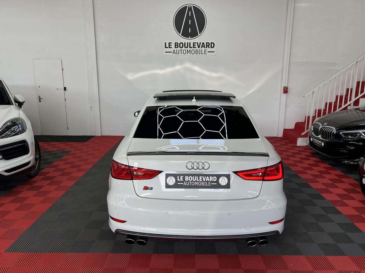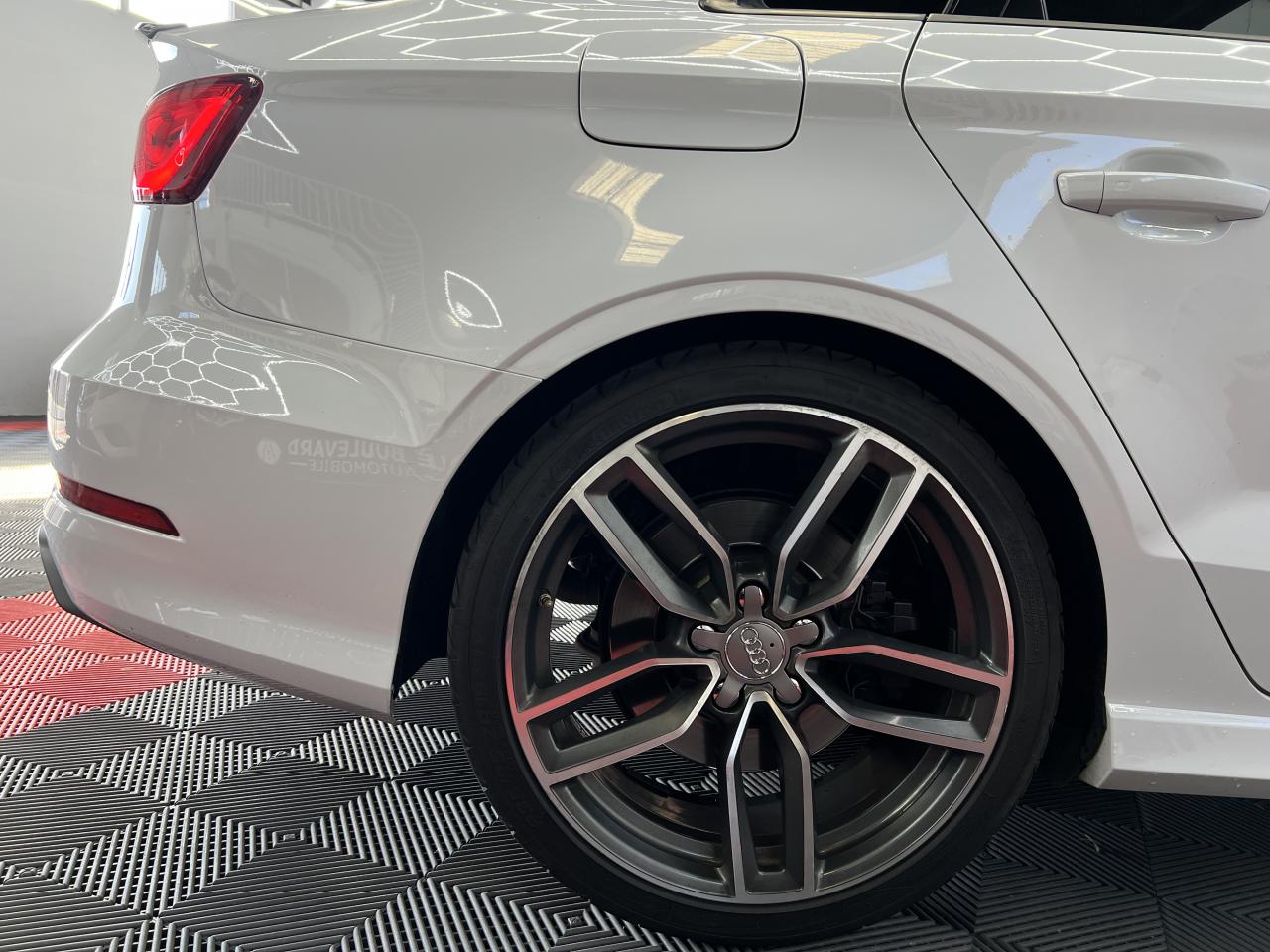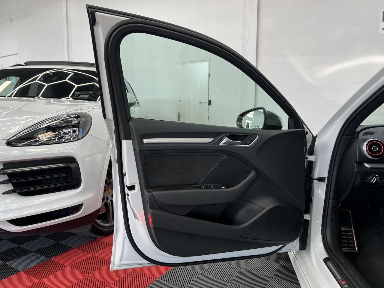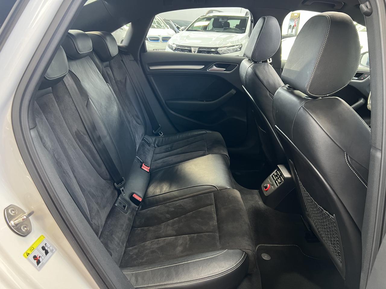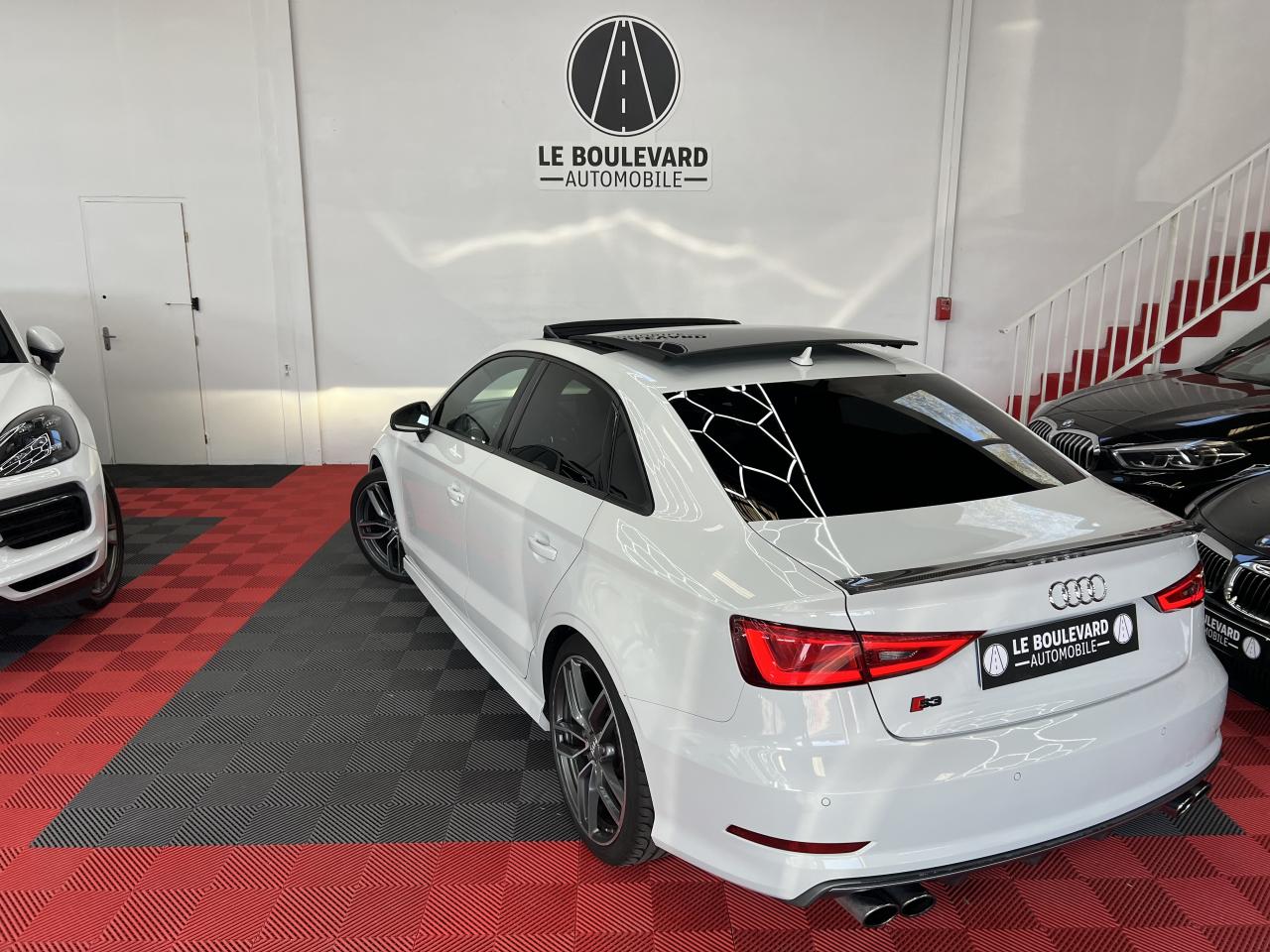 Accoudoir central avant, avec vide-poches relevable, inclinaison réglable et coulissant en longueurAirbag de genoux coté conducteurAirbags grand volume pour conducteur et passager avantAirbags latéraux à l'avant intégrés au dossier des siègesAlarme antivol : avec protection anti-remorquage par capteur d'angle d'inclinaisonAllume-cigare et cendrier amovible, couvercle chromé avec anneaux Audi, allume-cigare sur la console centrale au lieu de la prise 12 volts de sérieAntipatinage électronique ASRApplications décoratives sur les contre-portes et tableau de bord "Aluminium brossé mat"Audi Drive Select, permet différents réglagesAudi parking system à l'arrière facilitant le stationnement dans les limites du système à l'aide d'un signal sonoreAudi Premium Tracking SystemAudi Sound System avec 10 haut-parleursBecquet arrière S3 laqué dans la couleur de la carrosserie au niveau du capot de coffreBlocage électronique de différentiel (EDS)Boîte à gants grand volume côté passager avant, éclairéeCalandre Audi singleframe gris platine avec entretoises horizontales chromées, avec anneaux Audi chromés au centreCarrosserie galvanisée (entièrement galvanisée aux endroits sensibles à la corrosion)Ceintures de sécurité 3 points automatiques pour toutes les placesChâssis Sport S surbaissé de 25 mm, avec suspension et amortisseurs plus fermesCiel de pavillon en tissu noirClimatisation automatique Confort avec réglage asservi à la position du soleilContrôle électronique de stabilisation (ESC) désactivable, avec amplificateur hydraulique de freinage d'urgenceContrôle de ceinture attachée pour toutes les placesContrôle de la pression des pneusDétecteur de pluie et de luminositéDirection progressive contribuant à une augmentation de la dynamique de conduiteDossier de banquette arrière rabattable en deux parties 40/60 ou complètementEcrous de roues antivolFeux arrière avec feux de recul blancs et feux de brouillard arrière, incluant troisième feu stop surélevé et éclairage de plaque à LEDFeux de freinage adaptatifsFeux de route assistés : gestion automatique du passage de feux de croisement à pleins phares et inversementFixation pour sièges enfants ISOFIX et Top Tether pour les places arrière extérieuresIdentification du modèle/technologie sur le capot de coffre ; sur demande sans identification du modèle à l'arrièreInscription quattro sur la calandre, le capot de coffre et le tableau de bord côté passagerInscriptions S3 sur la calandre, le capot de coffre, les baguettes des seuils de portes, les étriers de freins avant, le volant Sport, le pommeau de levier de vitesses et le compte-toursJantes en aluminium coulé style 5 branches structurées avec pneus 225/40 R 18Lève-vitres à l'avant et à l'arrière, électriques, avec protection antipincement, ouverture/fermeture par le verrouillage centralisé, fonction ouverture/fermeture par impulsionLave-essuie-glace 2 vitesses, 4 intervalles de balayage réglablesMMI GPS plus avec données de navigationOEilletons de fixation, 4 dans le coffre, pour maintenir les bagages et objets dans le coffre, points de fixation pour le filet mixte en optionOutillage de bord dans le coffre incluant un cricPédalier en acier inoxydable brosséPack aluminium extérieurPack aluminium intérieurPack EclairagePack rangement et coffrePare-brise acoustique, améliore l'isolation phonique du pare-brise et réduit les bruits extérieursPare-chocs laqués dans la couleur de carrosserie avec prises d'air latérales accentuées, extension de bas de caisse ainsi que diffuseur S à l'arrière au design résolument sportifPare-soleil rabattables et pivotants, côtés conducteur et passager avant, avec miroir de courtoisie occultablePatères à vêtements sur les montants de pavillon centraux, à gauche et à droite, simplesPoignées de maintien. 4 poignées avec mécanisme amortisseur, rabattables, encastrées dans le pavillonPréparation pour téléphone portable (Bluetooth), commande sur volant multifonction, mains libres et audiostreamingPrise de courant 12 volts sur la console centrale à l'avantProtection antidémarrage électronique intégrée à la gestion du moteur ; activation automatique par la clé du véhiculeProtection latérale anticollision avec barres extrêmement rigides dans les portières et une structure latérale de carrosserie renforcéeQuattro: transmission intégrale permanente avec répartition asymétrique et dynamique de coupleRégulateur de vitesse avec maintien constant de la vitesse souhaitée à partir d'environ 30 km/hRétroviseur intérieur jour/nuit automatiqueRétroviseurs extérieurs style aluminium avec rappels de clignotant à diodes, asphérique côté conducteur, convexe côté passager avant, dégivrants et escamotables électriquementRangements dans les contre-portes à l'avant avec casier de rangement pour boissons, rangements dans les contre-portes arrièreRecommandation de repos qui analyse le comportement routier au moyen de différents capteursRoue de secours temporaire de type galetteSellerie mixte en Alcantara et cuir MilanoSeuils de portes avec inserts en aluminium et emblème S3Sièges conducteur et passager avant réglables en hauteurSièges Sport à l'avant avec estampillage SSignal sonore pour oubli d'extinction des feuxSorties d'échappement chromées, visibles et doubles, 2 sorties ovales chromées à gauche et à droiteSupport pour téléphone portable et clé avec compatiment séparé pour le rangement du téléphone portable et la clé du véhicule. Rangement intégré avec encadrement chromé sur la console centraleSystème d'airbags de têteSystème d'information du conducteur avec écran couleur haute résolution de 3,5 poucesSystème de freinage avec antiblocage (ABS) et répartiteur électronique de freinage (EBV) ; amplificateur hydraulique de freinage d'urgence à 2 rapports (Dual Rate)Système de ventilation et chauffage 4 diffuseurs d'air rondsTémoins de contr