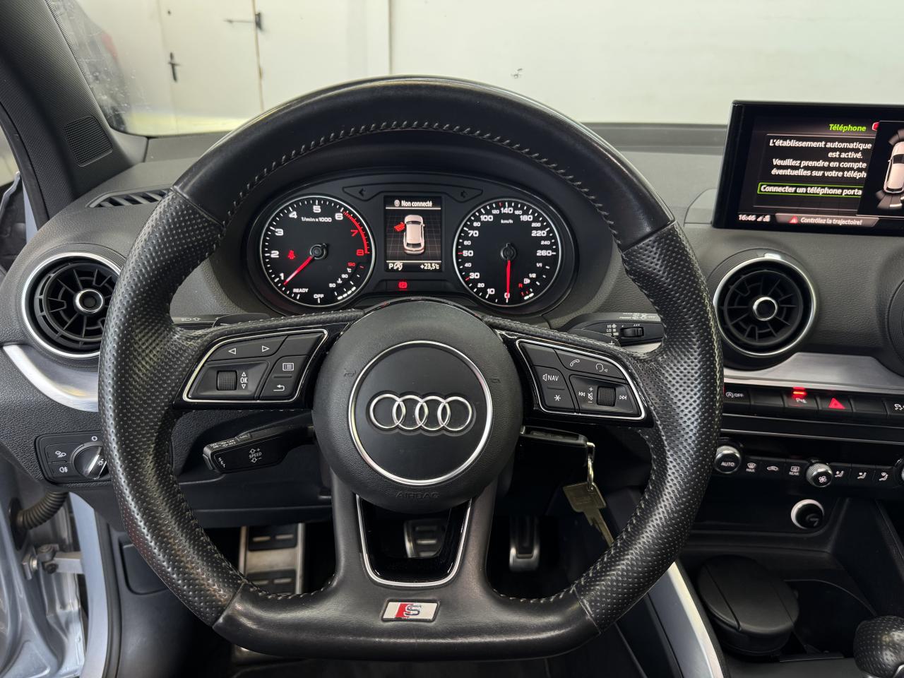 Accoudoir central avantAllume cigare et cendrierAntipatinage ASR pour une motricité optimale, empêche le patinage des roues motricesApplications décoratives en aluminium brossé matAudi Drive SelectAudi Music InterfaceAudi Parking System : système acoustique d'aide au stationnement arrièreAudi pre sense frontAudi smartphone interfaceAudi Sound SystemBande grise en haut du pare-briseBlade Argent glacierBlocage électronique de différentiel (EDS)Boîte de vitesses S tronic séquentielle à 7 rapports à double embrayage avec commande électrohydrauliqueBoîtiers de rétroviseurs extérieurs dans la teinte du véhiculeCeinture de sécurité réglable en hauteurCeintures de sécurité 3 points automatiques pour toutes les placesCeintures de sécurité assorties à la couleur des garnituresChâssis “Sport”Châssis DynamiqueCiel de pavillon en tissu noirClimatisation automatiqueColonne de direction de sécuritéContrôle de port de ceinture sur siège conducteur et passager AVContrôle de pression des pneus ( TPMS )Contrôle électronique de stabilité (ESC)Désactivation de l'airbag du passager avantDétecteur de pluie et allumage automatique des projecteursDéverrouillage de coffre par touche douce : déverrouillage avec assistance électriqueDirection assistée électromécaniqueDirection progressiveDispositif anti-erreur de carburantDossier de banquette arrière rabattable en deux parties , 1/3, 2/3 ou complétementEclairage intérieur, à temporisation avec contacteurs sur toutes les portières ; éclairage du coffreEcrous antivolFeux arrière rouges, avec feux de recul blancs et feux de brouillard arrière intégrés, feux de plaque arrière à LED ; incluant troisième feu stop surélevéFixation pour sièges enfants ISOFIX et Top Tether pour les places arrière extérieuresFrein de stationnement electromécaniqueFreins à disque à l'avant et à l'arrièreIdentification du modèle/technologie sur le capot de coffre ; sur demande sans identification du modèle à l'arrièreInscription “S line” sur les ailes avantInterface BluetoothJantes en aluminium coulé style 5 branches en Y,7 J x 18 avec pneus 215/50 R 18Lave-pharesMMI navigationMoulures de seuils avec insert en aluminium et emblème S, éclairéesOutillage de bord et cricPare-soleil avec miroirs de courtoisiePédales et repose-pied en acier inoxydablePeinture intégralePhares à LED avec clignotants arrière à LED dynamiquesPommeau du levier/sélecteur de vitesses en cuir perforé noirProtection antidémarrage électronique, intégrée à la gestion du moteur, activation automatique par la clé du véhiculeRécupération d'énergie, générée lors des phases de freinage ou de décélération permettant une économie de carburantRégulateur de vitesseRepose-genoux et diffuseurs d'air laquésRétroviseurs extérieur rabattables automatiquementRétroviseurs extérieurs avec clignotants à LED intégrésRétroviseurs extérieurs réglables et escamotables électriquement, dégivrants des deux côtés et buses de lave-glaces dégivrantesRoue de secours à encombrement réduitSécurité enfantsSellerie S line en tissu Pulse/cuir noirSièges avant réglables manuellement en hauteur et en profondeurSièges avant sportSortie d'échappement avec embout chroméSorties d'échappement monoflux avec 2 sorties à gaucheSurpiqûres contrastées sur les selleries, volant Sport en cuir, soufflet de levier/sélecteur de vitesses ainsi que tapis complémentairesSuspension sportSystème d'information du conducteur avec écran couleurSystème Start/Stop désactivableTapis complémentaires à l'avant et à l'arrièreTriangle de pré-signalisationTrousse de secoursVide-pochesVitres électriques avant et arrièreVitres latérales et arrière athermiqueVolant réglable manuellement en hauteur et en profondeurVolant Sport S line en cuir style 3 branches avec multifonction avec emblème S (poignées de volant en cuir perforé)