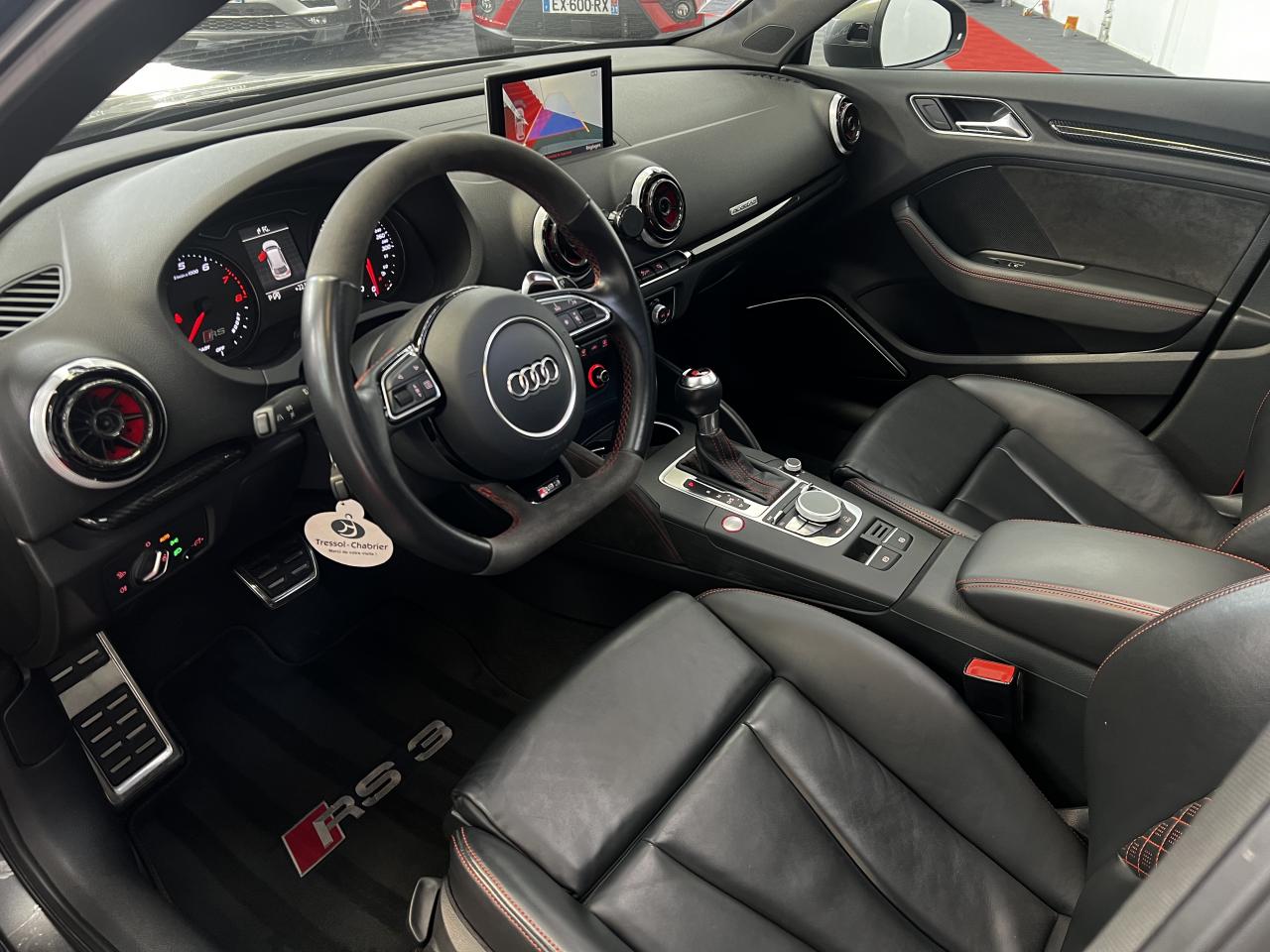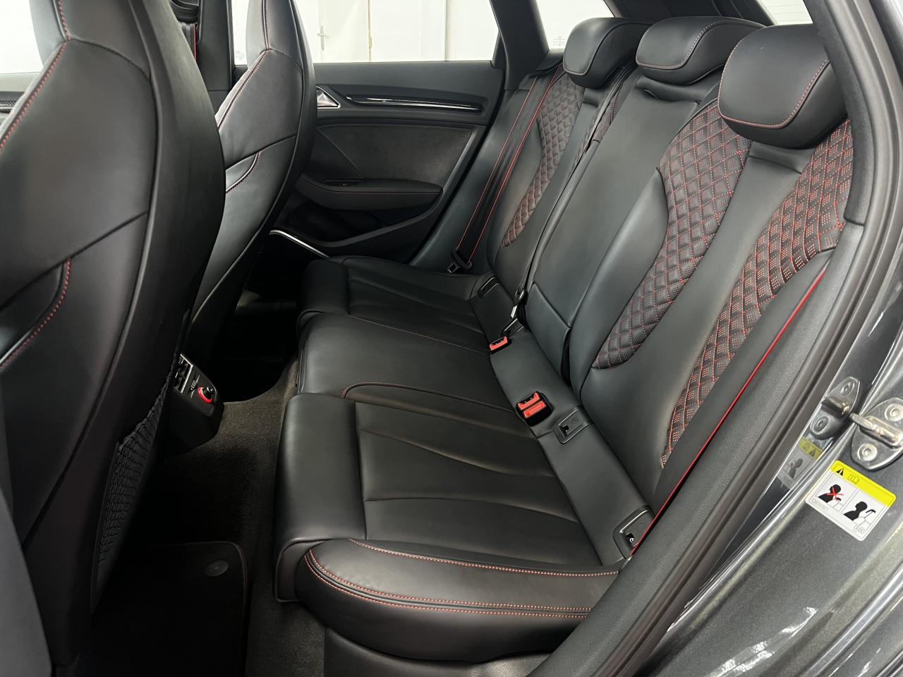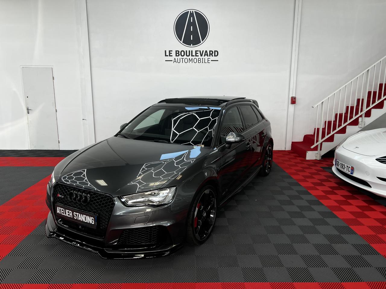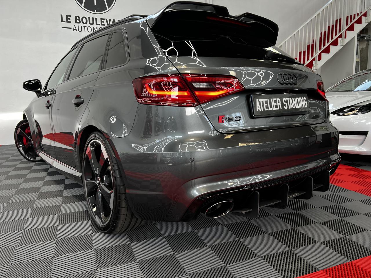 Accoudoir central arrière avec porte-boissons, trappe... Adaptive lights Airbags latéraux à l'arrière Appui lombaire à 4 axes avec réglage électrique,... Audi Active Lane Assist Audi Active Lane Assist + Audi Side Assist Audi connect en combinaison avec le MMI GPS advanced avec MMI... Audi Hold Assist : maintient le véhicule à l'arrêt... Audi magnetic ride : système d'amortisseurs adaptatifs... Audi side assist : assistant de changement de trajectoire Bang & Olufsen Sound System Caméra de recul : avec affichage de la zone située... ... Cuir étendu Audi exclusive sur les accoudoirs de portières,... Eléments de commande en cuir Audi exclusive : couronne... ... Etriers de frein laqués rouge avec inscription RS à... Fixations pour sièges enfants ISOFIX pour le siège... Jantes en aluminium coulé Audi Sport style 5 branches... MMI GPS Advanced avec MMI touch Pack assistance Pack Confort Pack cuir Audi exclusive en cuir Nappa Pack Design RS Pack esthétique aluminium mat Peinture métallisée ou nacrée Phares à LED Phares à portée variable Rampes de pavillon noir mat Réception radio numérique (DAB) Rétroviseurs extérieurs escamotables électriquement,... Sièges avant chauffants Sièges Sport RS à l'avant en cuir Nappa avec... Sorties d'échappement Sport RS pour une sonorité... Tapis de sol Audi exclusive avec logo RS 3 Tapis réversible pour le coffre, velours d'un côté,... Toit panoramique en verre : commande électrique pour relever... Vitesse maximale (Vmax) relevée à 280 km/h Vitres surteintées (privacy glass) : lunette arrière...