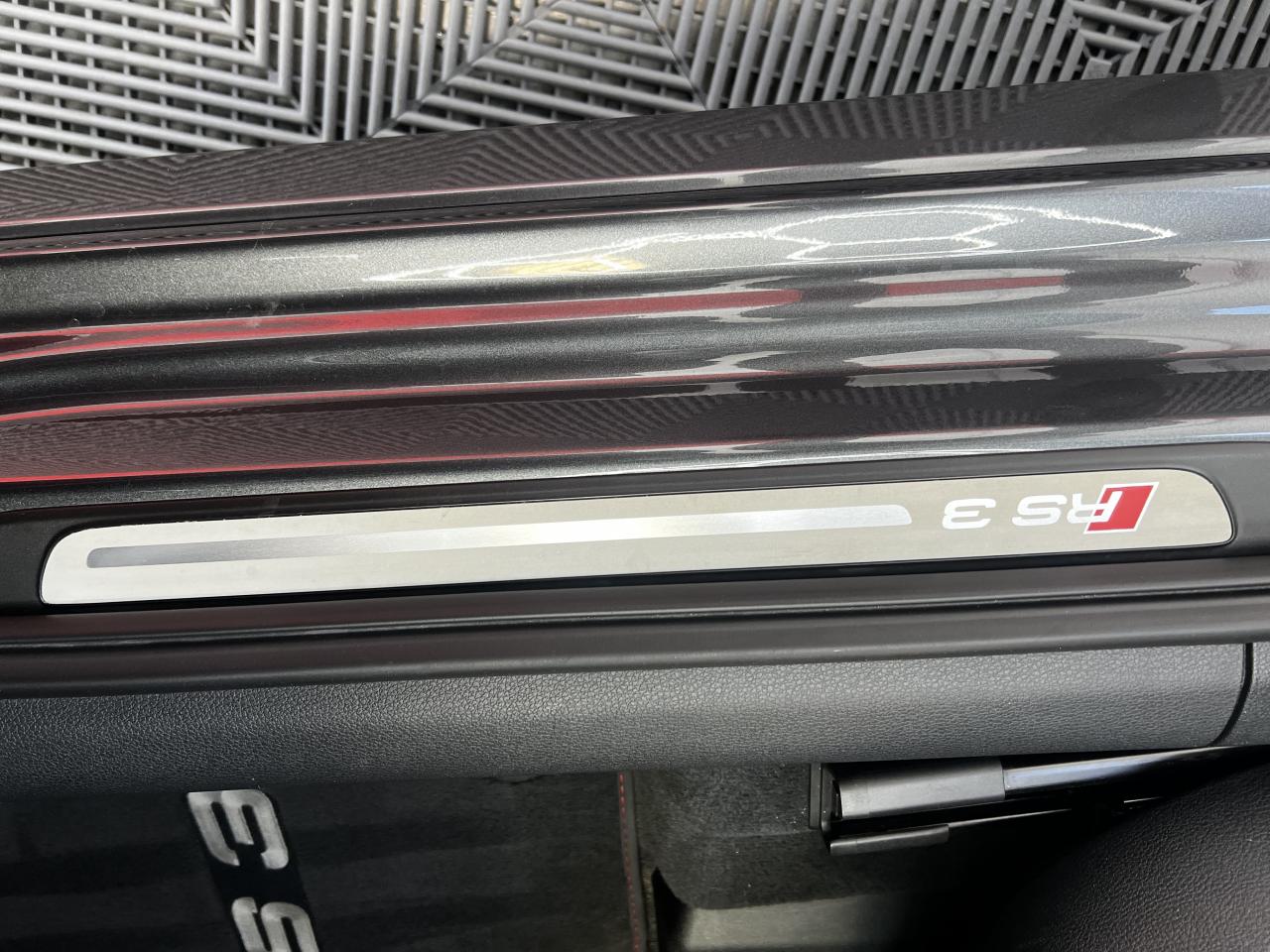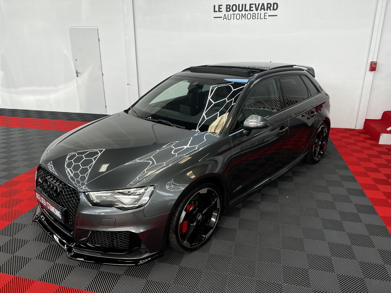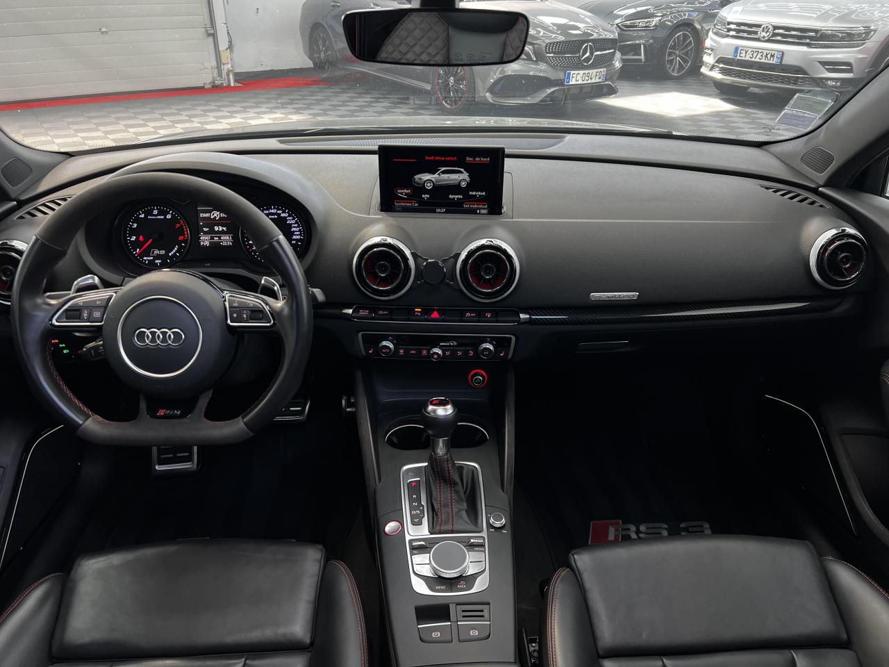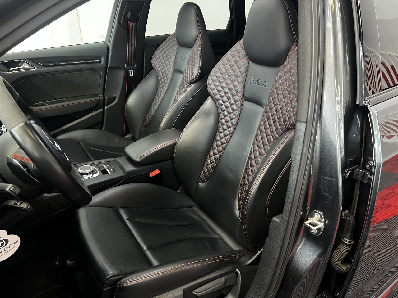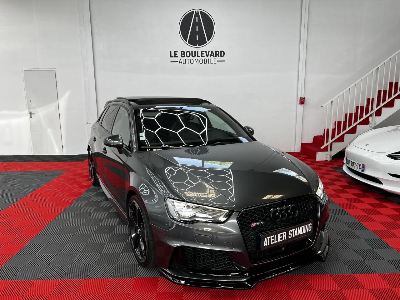 Accoudoir central arrière avec porte-boissons, trappe... Adaptive lights Airbags latéraux à l'arrière Appui lombaire à 4 axes avec réglage électrique,... Audi Active Lane Assist Audi Active Lane Assist + Audi Side Assist Audi connect en combinaison avec le MMI GPS advanced avec MMI... Audi Hold Assist : maintient le véhicule à l'arrêt... Audi magnetic ride : système d'amortisseurs adaptatifs... Audi side assist : assistant de changement de trajectoire Bang & Olufsen Sound System Caméra de recul : avec affichage de la zone située... ... Cuir étendu Audi exclusive sur les accoudoirs de portières,... Eléments de commande en cuir Audi exclusive : couronne... ... Etriers de frein laqués rouge avec inscription RS à... Fixations pour sièges enfants ISOFIX pour le siège... Jantes en aluminium coulé Audi Sport style 5 branches... MMI GPS Advanced avec MMI touch Pack assistance Pack Confort Pack cuir Audi exclusive en cuir Nappa Pack Design RS Pack esthétique aluminium mat Peinture métallisée ou nacrée Phares à LED Phares à portée variable Rampes de pavillon noir mat Réception radio numérique (DAB) Rétroviseurs extérieurs escamotables électriquement,... Sièges avant chauffants Sièges Sport RS à l'avant en cuir Nappa avec... Sorties d'échappement Sport RS pour une sonorité... Tapis de sol Audi exclusive avec logo RS 3 Tapis réversible pour le coffre, velours d'un côté,... Toit panoramique en verre : commande électrique pour relever... Vitesse maximale (Vmax) relevée à 280 km/h Vitres surteintées (privacy glass) : lunette arrière...