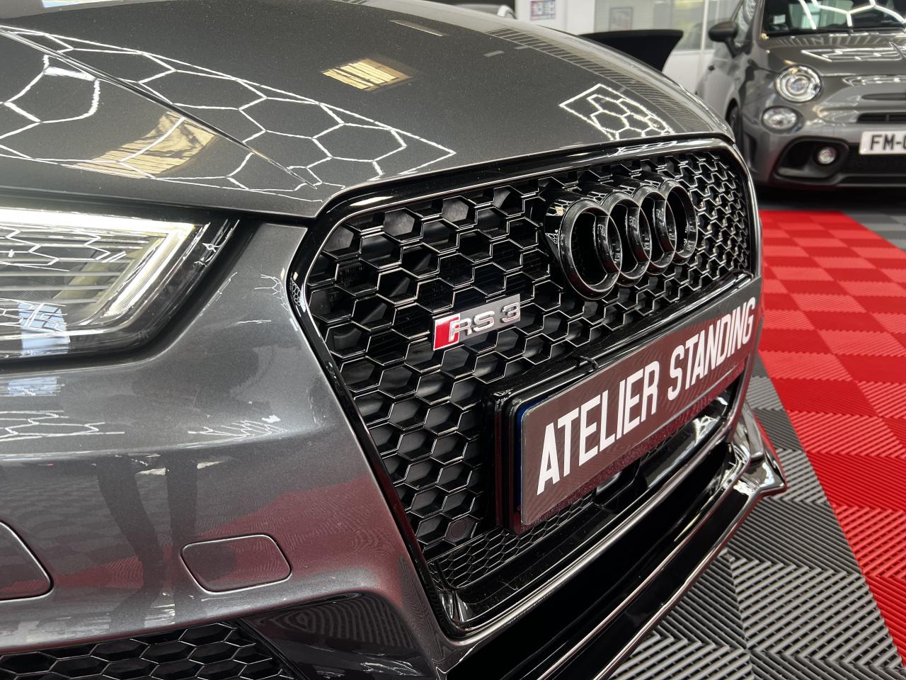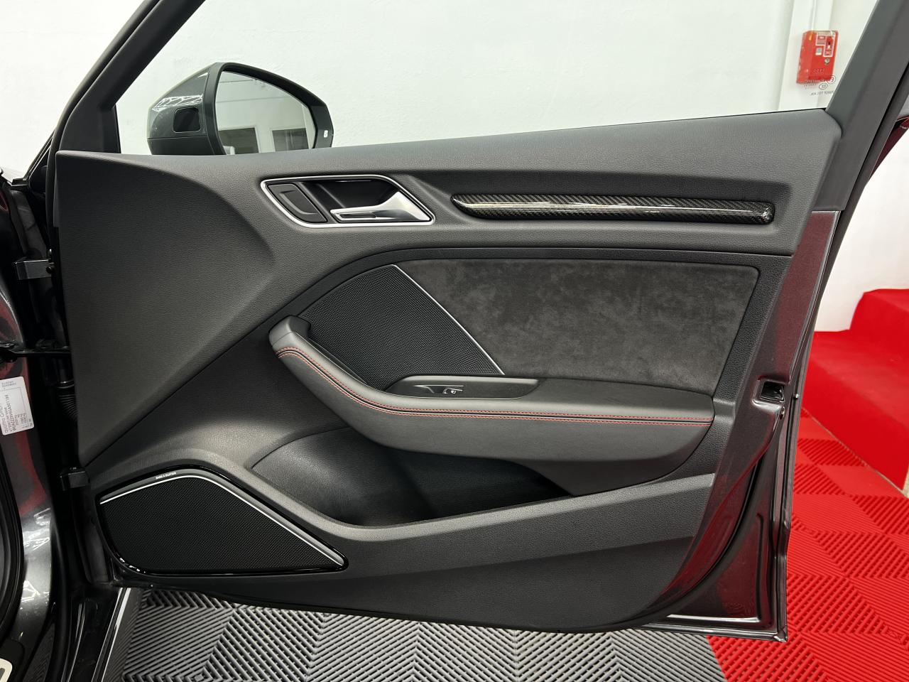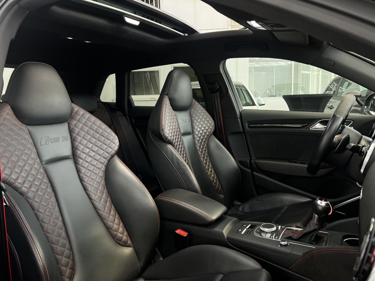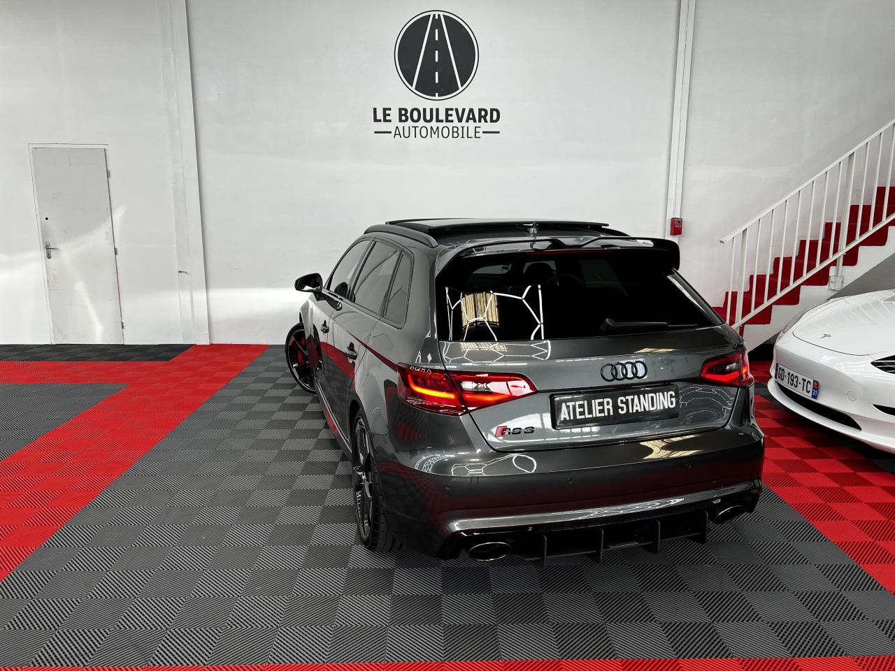 Accoudoir central arrière avec porte-boissons, trappe... Adaptive lights Airbags latéraux à l'arrière Appui lombaire à 4 axes avec réglage électrique,... Audi Active Lane Assist Audi Active Lane Assist + Audi Side Assist Audi connect en combinaison avec le MMI GPS advanced avec MMI... Audi Hold Assist : maintient le véhicule à l'arrêt... Audi magnetic ride : système d'amortisseurs adaptatifs... Audi side assist : assistant de changement de trajectoire Bang & Olufsen Sound System Caméra de recul : avec affichage de la zone située... ... Cuir étendu Audi exclusive sur les accoudoirs de portières,... Eléments de commande en cuir Audi exclusive : couronne... ... Etriers de frein laqués rouge avec inscription RS à... Fixations pour sièges enfants ISOFIX pour le siège... Jantes en aluminium coulé Audi Sport style 5 branches... MMI GPS Advanced avec MMI touch Pack assistance Pack Confort Pack cuir Audi exclusive en cuir Nappa Pack Design RS Pack esthétique aluminium mat Peinture métallisée ou nacrée Phares à LED Phares à portée variable Rampes de pavillon noir mat Réception radio numérique (DAB) Rétroviseurs extérieurs escamotables électriquement,... Sièges avant chauffants Sièges Sport RS à l'avant en cuir Nappa avec... Sorties d'échappement Sport RS pour une sonorité... Tapis de sol Audi exclusive avec logo RS 3 Tapis réversible pour le coffre, velours d'un côté,... Toit panoramique en verre : commande électrique pour relever... Vitesse maximale (Vmax) relevée à 280 km/h Vitres surteintées (privacy glass) : lunette arrière...