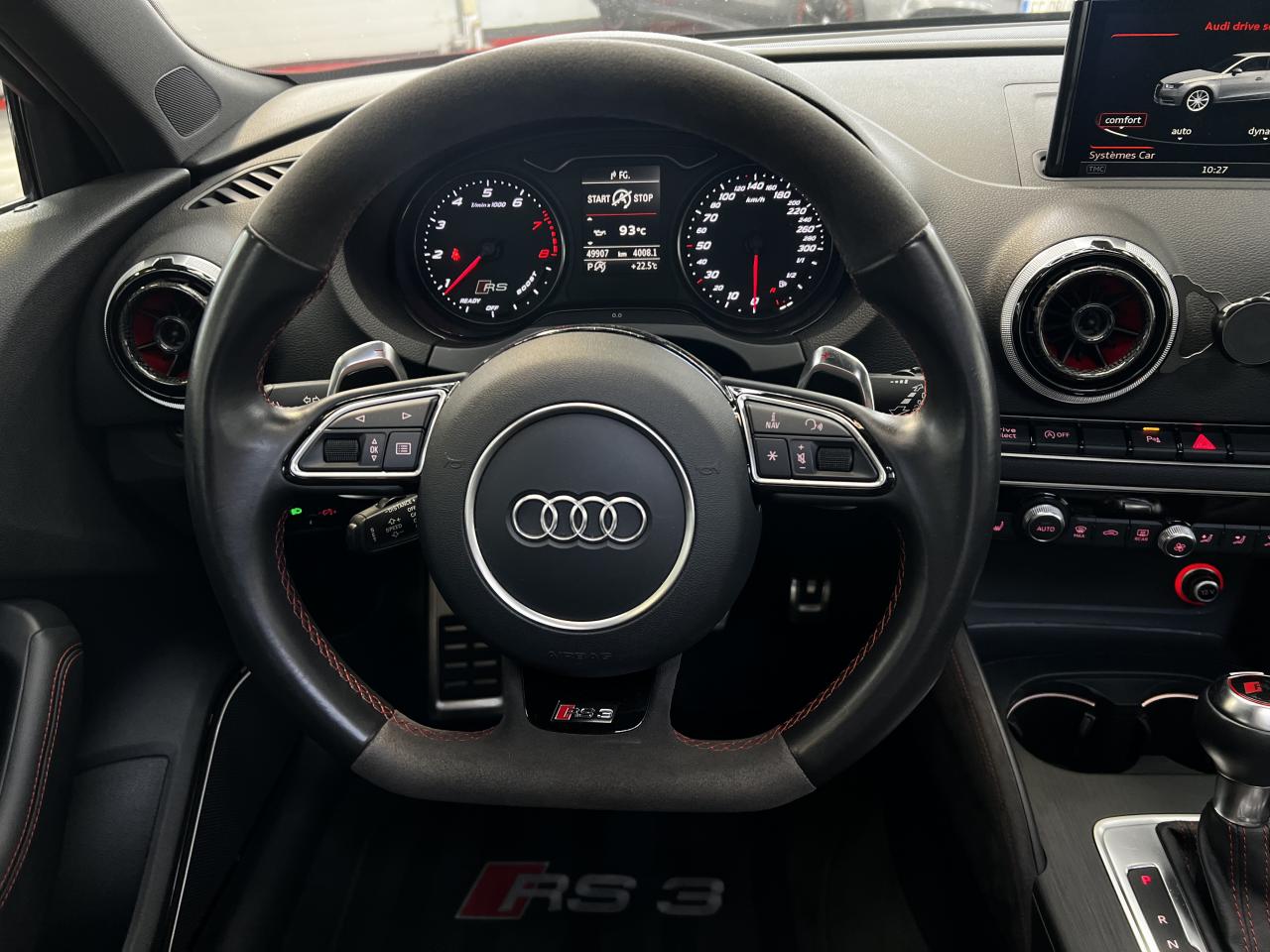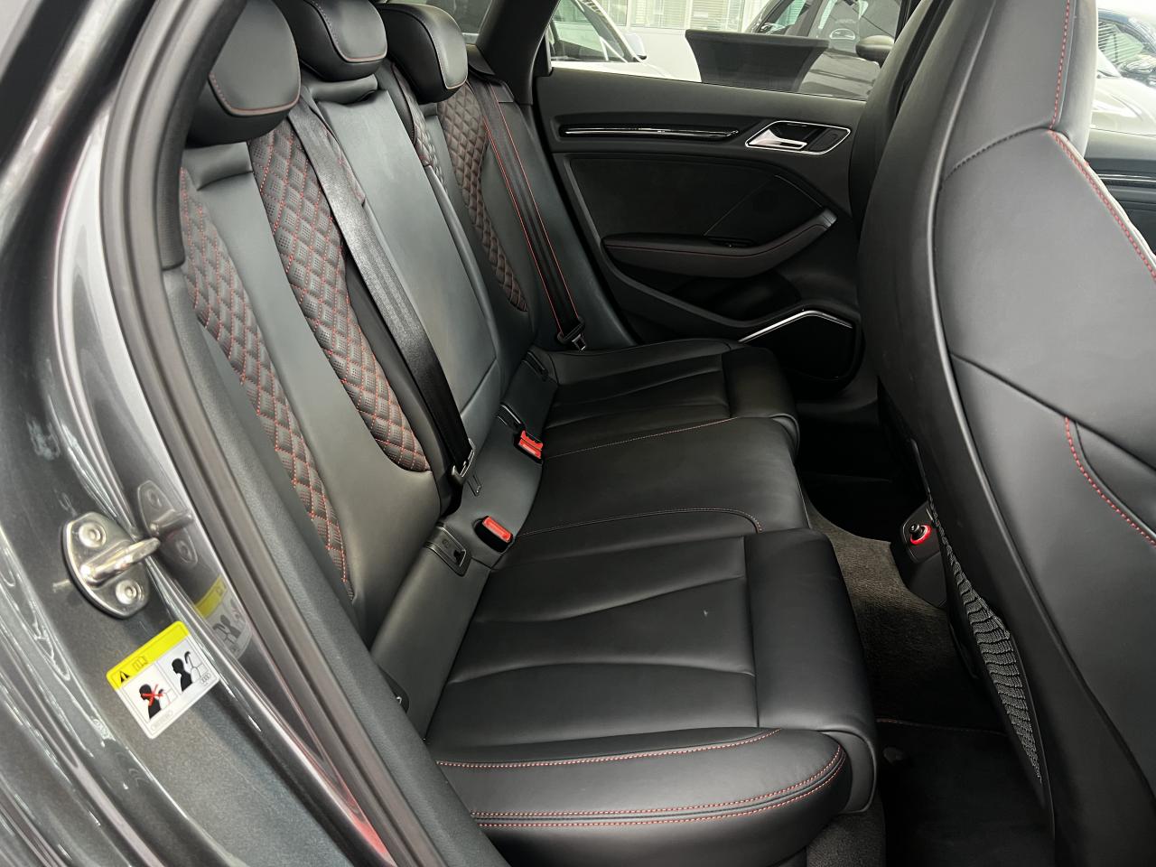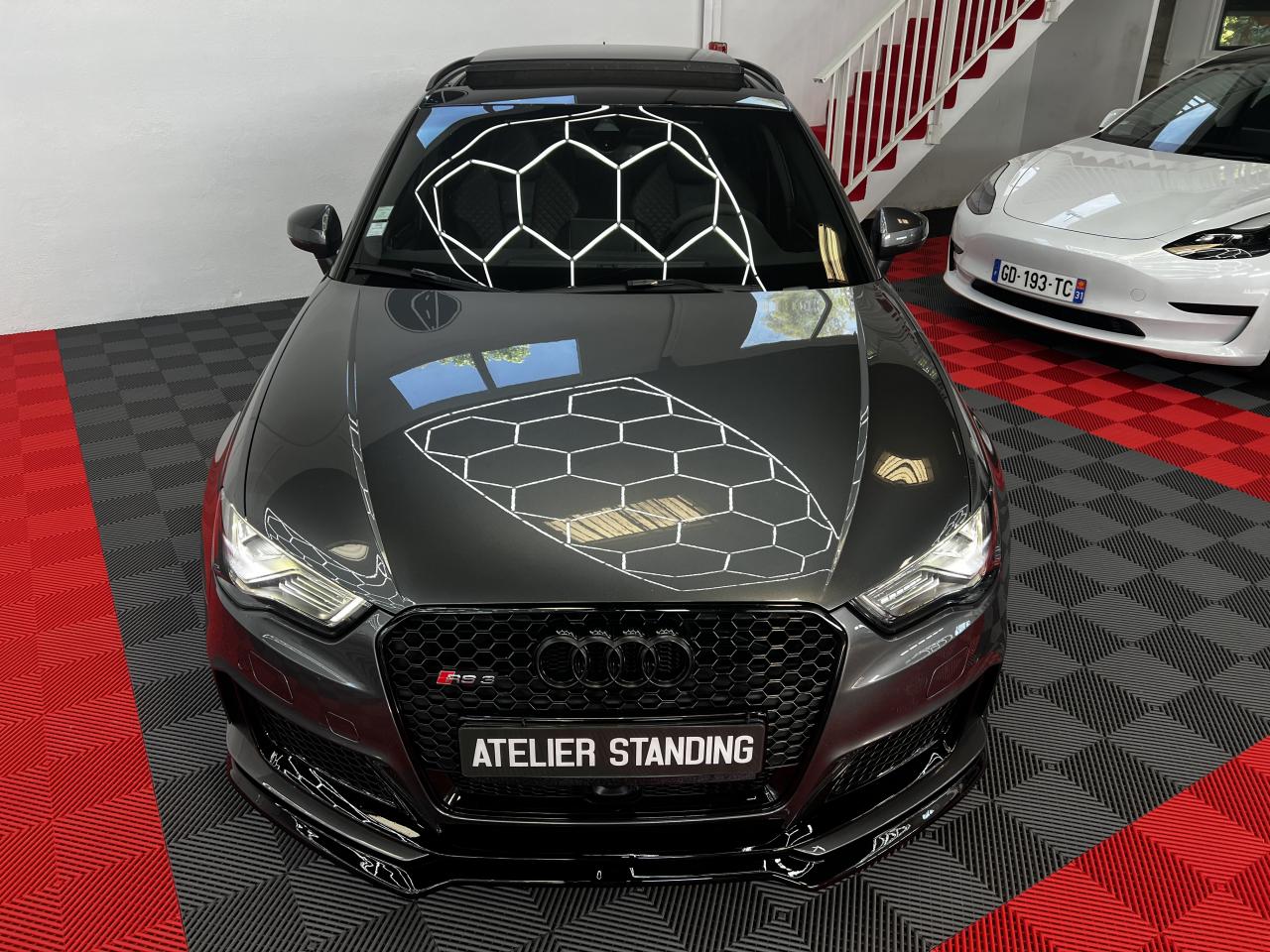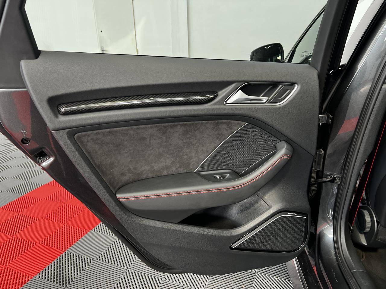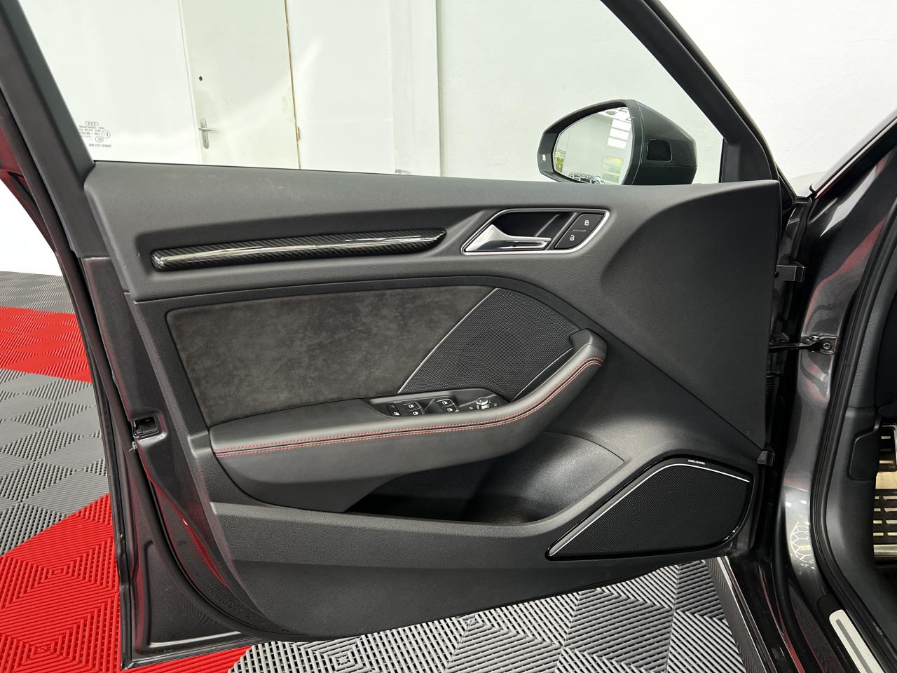 Accoudoir central arrière avec porte-boissons, trappe... Adaptive lights Airbags latéraux à l'arrière Appui lombaire à 4 axes avec réglage électrique,... Audi Active Lane Assist Audi Active Lane Assist + Audi Side Assist Audi connect en combinaison avec le MMI GPS advanced avec MMI... Audi Hold Assist : maintient le véhicule à l'arrêt... Audi magnetic ride : système d'amortisseurs adaptatifs... Audi side assist : assistant de changement de trajectoire Bang & Olufsen Sound System Caméra de recul : avec affichage de la zone située... ... Cuir étendu Audi exclusive sur les accoudoirs de portières,... Eléments de commande en cuir Audi exclusive : couronne... ... Etriers de frein laqués rouge avec inscription RS à... Fixations pour sièges enfants ISOFIX pour le siège... Jantes en aluminium coulé Audi Sport style 5 branches... MMI GPS Advanced avec MMI touch Pack assistance Pack Confort Pack cuir Audi exclusive en cuir Nappa Pack Design RS Pack esthétique aluminium mat Peinture métallisée ou nacrée Phares à LED Phares à portée variable Rampes de pavillon noir mat Réception radio numérique (DAB) Rétroviseurs extérieurs escamotables électriquement,... Sièges avant chauffants Sièges Sport RS à l'avant en cuir Nappa avec... Sorties d'échappement Sport RS pour une sonorité... Tapis de sol Audi exclusive avec logo RS 3 Tapis réversible pour le coffre, velours d'un côté,... Toit panoramique en verre : commande électrique pour relever... Vitesse maximale (Vmax) relevée à 280 km/h Vitres surteintées (privacy glass) : lunette arrière...
