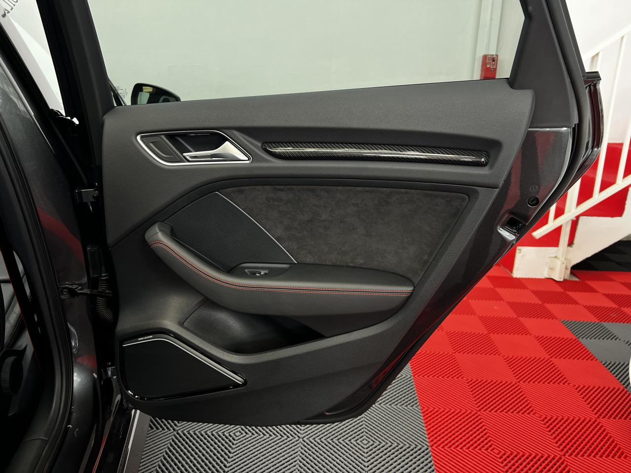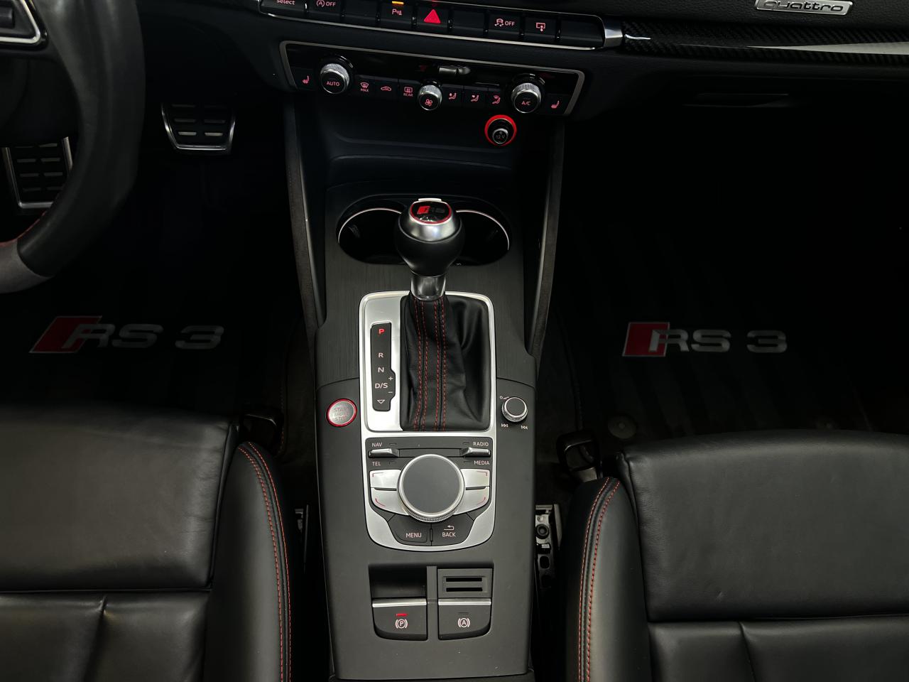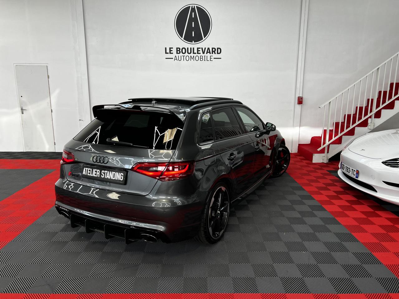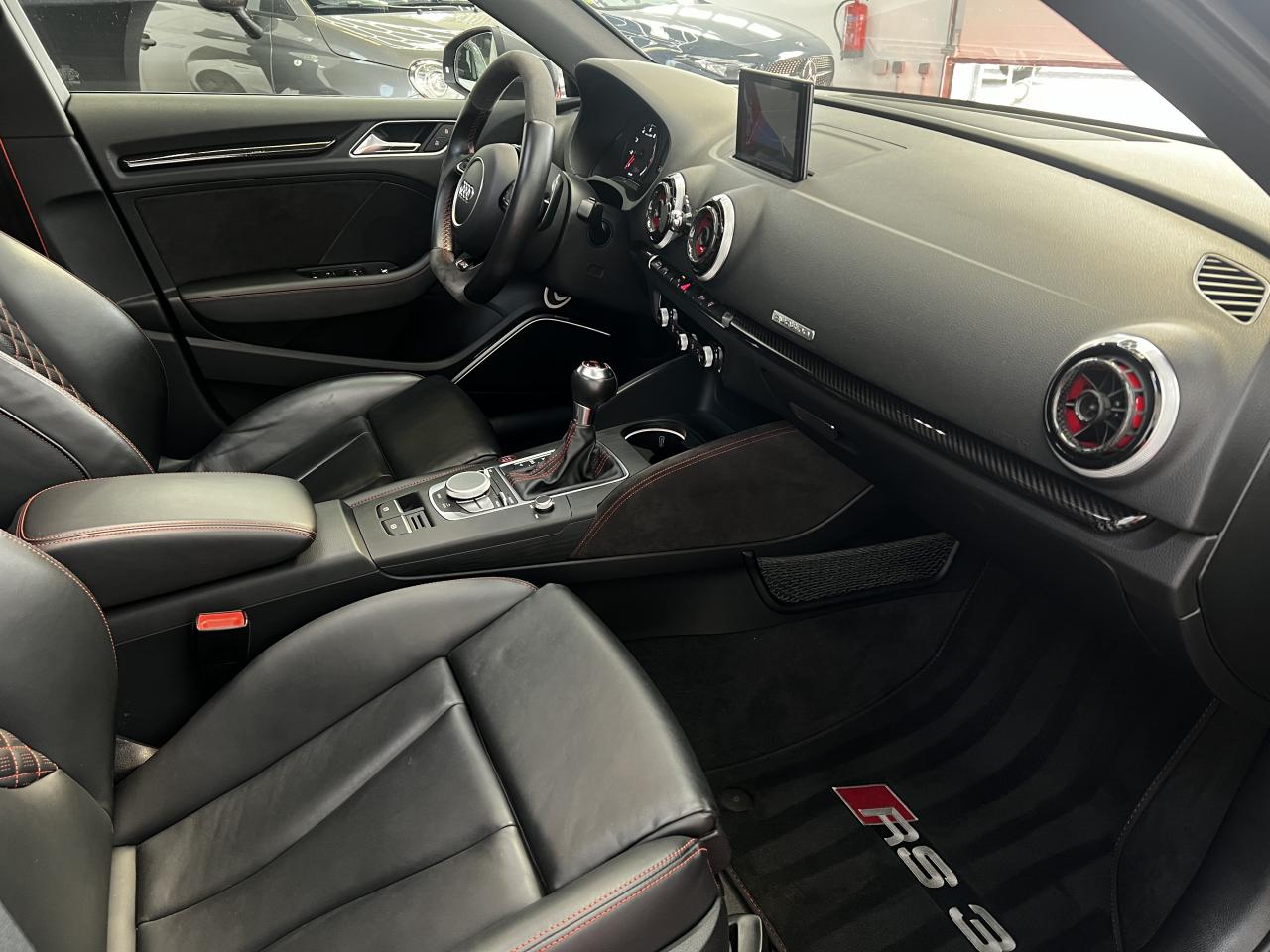 Accoudoir central arrière avec porte-boissons, trappe... Adaptive lights Airbags latéraux à l'arrière Appui lombaire à 4 axes avec réglage électrique,... Audi Active Lane Assist Audi Active Lane Assist + Audi Side Assist Audi connect en combinaison avec le MMI GPS advanced avec MMI... Audi Hold Assist : maintient le véhicule à l'arrêt... Audi magnetic ride : système d'amortisseurs adaptatifs... Audi side assist : assistant de changement de trajectoire Bang & Olufsen Sound System Caméra de recul : avec affichage de la zone située... ... Cuir étendu Audi exclusive sur les accoudoirs de portières,... Eléments de commande en cuir Audi exclusive : couronne... ... Etriers de frein laqués rouge avec inscription RS à... Fixations pour sièges enfants ISOFIX pour le siège... Jantes en aluminium coulé Audi Sport style 5 branches... MMI GPS Advanced avec MMI touch Pack assistance Pack Confort Pack cuir Audi exclusive en cuir Nappa Pack Design RS Pack esthétique aluminium mat Peinture métallisée ou nacrée Phares à LED Phares à portée variable Rampes de pavillon noir mat Réception radio numérique (DAB) Rétroviseurs extérieurs escamotables électriquement,... Sièges avant chauffants Sièges Sport RS à l'avant en cuir Nappa avec... Sorties d'échappement Sport RS pour une sonorité... Tapis de sol Audi exclusive avec logo RS 3 Tapis réversible pour le coffre, velours d'un côté,... Toit panoramique en verre : commande électrique pour relever... Vitesse maximale (Vmax) relevée à 280 km/h Vitres surteintées (privacy glass) : lunette arrière...