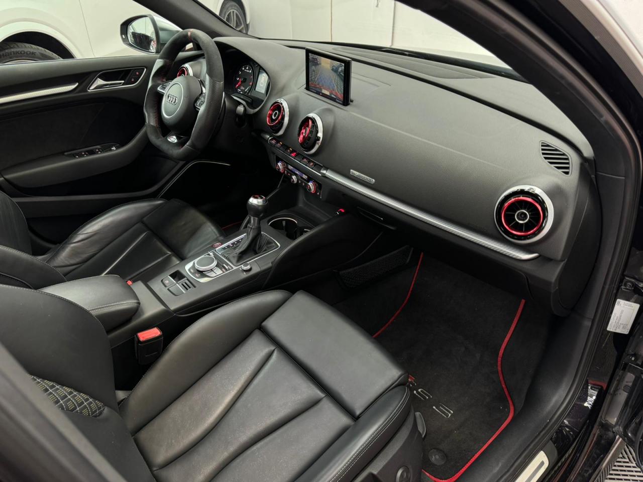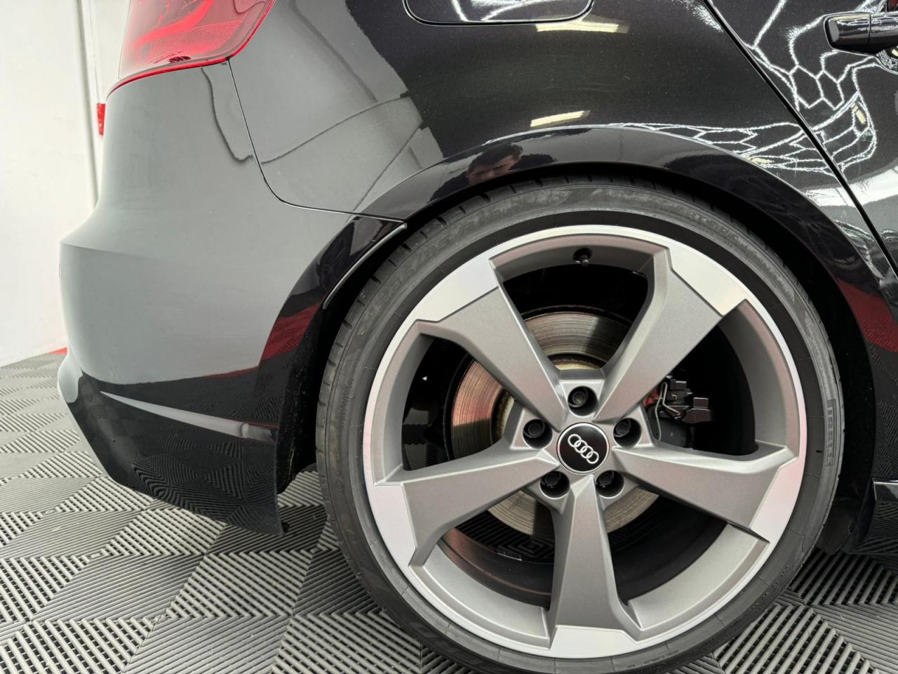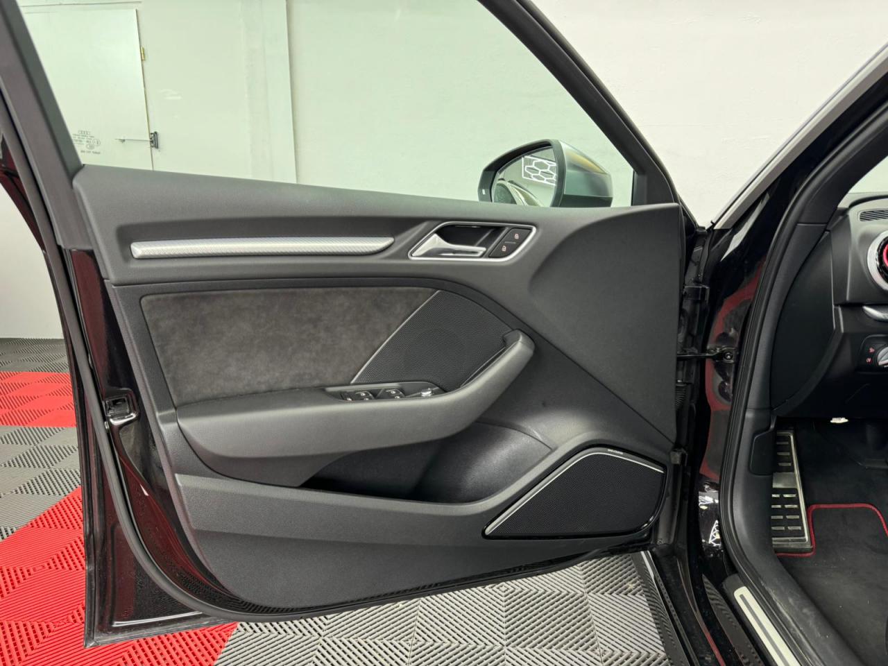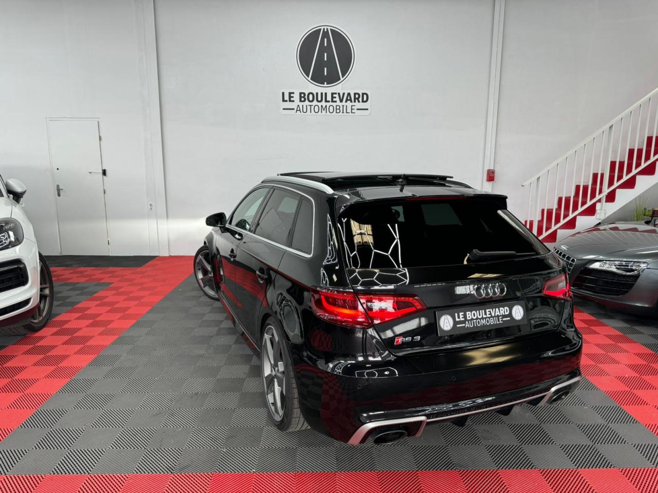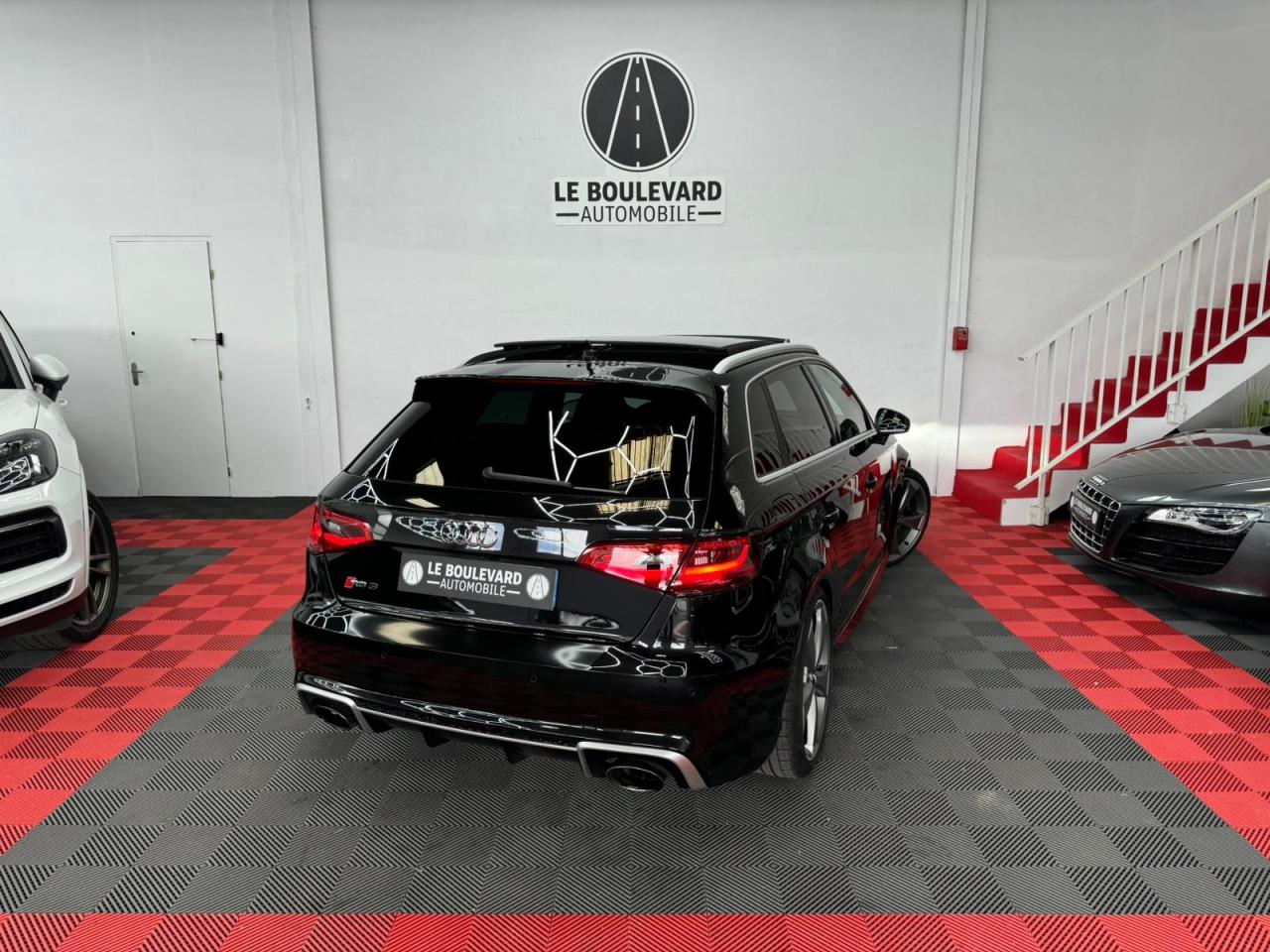 4 oeilletons de fixation dans le coffreAccoudoir central avant, avec vide-poches relevable, inclinaison réglable et coulissant en longueurAdvanced key : système de verrouillage et de déverrouillage du véhicule sans utilisation de la clé. Démarrage et arrêt du moteur main libre par touche Start/StopAiles avant avec passages de roues élargisAirbag de genoux coté conducteurAirbags grand volume pour conducteur et passager avantAirbags latéraux à l'avant intégrés au dossier des siègesAlarme antivol incluant protection volumétrique de l'habitacle et protection antiremorquage par capteur d'inclinaison désactivableAllume-cigare et cendrier amovible, couvercle chromé avec anneaux Audi, allume-cigare sur la console centrale au lieu de la prise 12 volts de sérieApplications décoratives sur les contre-portes et tableau de bord style "3D noir"ASR (antipatinage)Assistance hydraulique au freinage d'urgenceAssistant de freinage en cas de collision, en cas d'accidentAudi Drive Select : différents réglages du véhicule à travers trois modesAudi parking system plus : signal acoustique et visuel d'aide au stationnement avant et arrière par pictogrammes sur l'écranAudi Premium Tracking SystemAudi Sound System avec 10 haut-parleursBaguettes décoratives sur les vitres latérales style aluminium mat ; revêtement noir brillant sur les montants de pavillon centraux extérieurs et les triangles de portières arrièreBecquet arrière RS3 laqué dans la couleur de la carrosserie, au niveau du pavillon avec inserts aérodynamiques latéraux noir brillantBoîte à gants grand volume côté passager avant, éclairéeCache-bagages amovibleCalandre Audi singleframe avec grille de calandre à structure alvéolée noir brillant et encadrement d'une seule pièce style aluminium mat ; ouvertures d'entrées d'air en noir brillantCarrosserie galvaniséeCeintures de sécurité 3 points automatiques pour toutes les places, prétensionneurs pyrotechniques, réglage des ceintures en hauteur à l'avant ; limiteurs de tension sur toutes les places extérieuresChâssis Sport RSCiel de pavillon en tissu noirClé à fréquence radio, avec emblème RSClimatisation automatique Confort avec réglage asservi à la position du soleil, réglage de température gauche/droite séparéContrôle de ceinture attachée pour toutes les places ; un signal acoustique et visuel à l'avant prévient lorsque la ceinture n'est pas fixée, un signal visuel à l'arrière attire l'attention sur la fixation des ceinturesContrôle de pression des pneus ( TPMS )Contrôle électronique de stabilisation (ESC) désactivableDétecteur de pluie et de luminosité incluant pare-brise avec bande grise sur la partie supérieureDirection progressive contribuant à une augmentation de la dynamique de conduite grâce à une démultiplication directe et progressiveDisques de frein ventilés à l'arrièreDisques de frein Wave en matériau composite, ventilés et perforés à l'avantDossier de banquette arrière rabattable en deux parties 40/60 ou complètementEcrous antivolEDS (blocage électronique de différentiel)Essuie-glace arrière à déclenchement automatique au passage de la marche arrièreEtriers laqués noir extra brillant, avec inscription RS à l'avantExtensions de bas de caisse couleur carrosserieFeux arrière avec feux de recul blancs et feux de brouillard arrière, incluant troisième feu stop surélevé et éclairage de plaque à LEDFeux de freinage adaptatifs (déclenchement des feux de détresse automatique)Feux de route assistés : gestion automatique du passage de feux de croisement à pleins phares et inversementFixation pour sièges enfants ISOFIX et Top Tether pour les places arrière extérieuresFrein de stationnement electromécaniqueIdentification du modèle/technologie sur le capot de coffreInscription "quattro" sur le tableau de bord côté passagerInscription quattro sur la calandre, le capot de coffre et le tableau de bord côté passagerInscriptions RS3 sur la calandre, le capot de coffre, les baguettes des seuils de portes, le volant Sport, le pommeau de levier de vitesses et le compte-toursJantes en aluminium coulé Audi Sport style 5 branches en hélice, avec pneus 235/35 R 19 91Y XLLave-essuie-glace 2 vitesses, 4 intervalles de balayage réglablesLève-vitres à l'avant et à l'arrière, électriques, avec protection antipincement, ouverture/fermeture par le verrouillage centralisé, fonction ouverture/fermeture par impulsionLunette arrière dégivrante, avec minuterie; chauffage supplémentaire de l'extrémité inférieure de l'essuie-glace arrièreMiroir de courtoisie côté conducteur et passagerMMI GPS plus avec données de navigationOutillage de bord dans le coffre incluant un cricPack aluminium intérieurPack EclairagePack rangement + Pack coffrePare-brise acoustiquePare-chocs RS : style dynamique et sportif, larges prises d'air à l'avant en noir brillant ainsi que lame horizontale laquée dans la couleur de carrosserie, diffuseur noir brillant à l'arrièrePare-soleil rabattables et pivotants, côtés conducteur et passager avant, avec miroir de courtoisie occultablePatères à vêtements sur les montants de pavillon centraux, à gauche et à droite, simplesPédalier et repose-pied en acier inoxydablePoignées de maintien. 4 poignées avec mécanisme amortisseur, rabattables, encastrées dans le pavillonPréparation pour téléphone portable (Bluetooth), commande sur volant multifonction, mains libres et audiostreamingProtection antidémarrage électronique intégrée à la gestion du moteur ; activation automatique par la clé du véhiculeProtection latérale anticollision avec barres extrêmement rigides dans les portières et une structure latérale de carrosserie renforcée, particulièrement dans les montants de pavillon centraux et les seuils de portièresQuattro : transmission intégrale permanenteRangements dans les contre-portes à l'avant avec casier de rangement pour boissons, rangements dans l