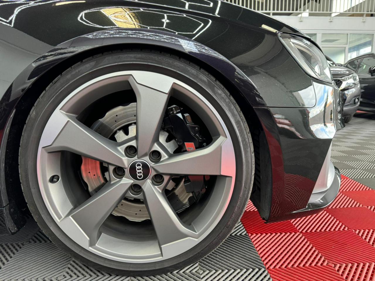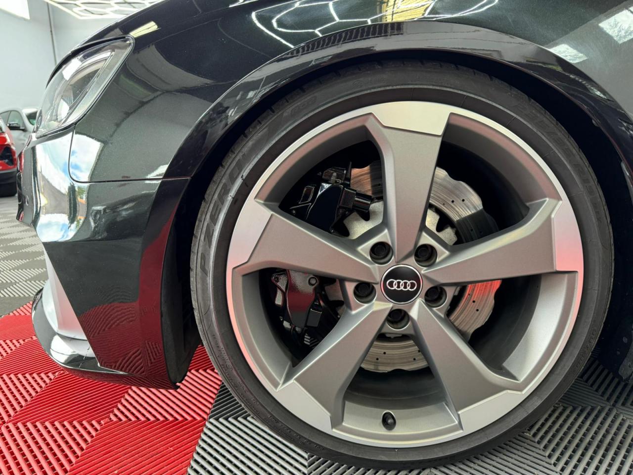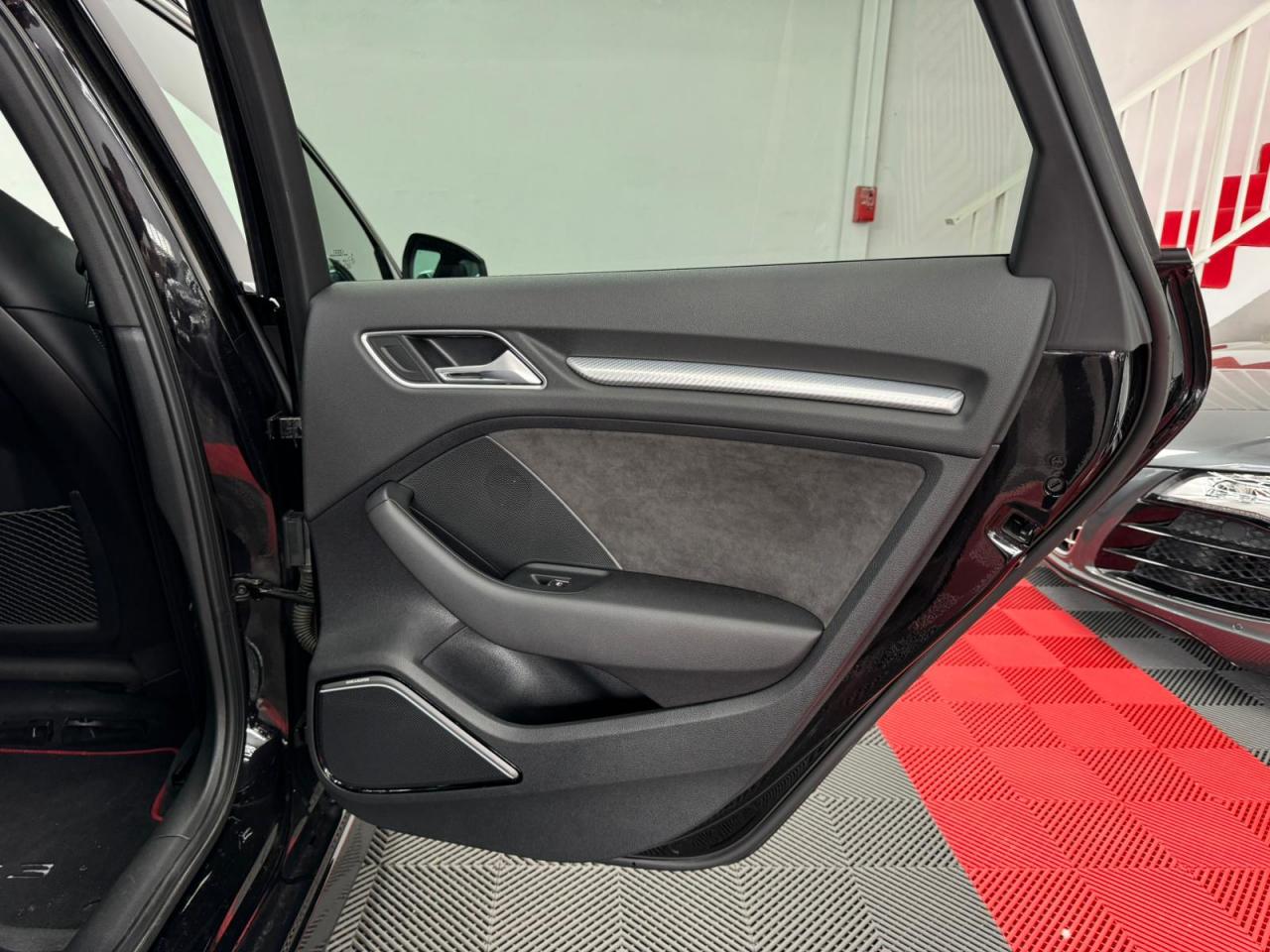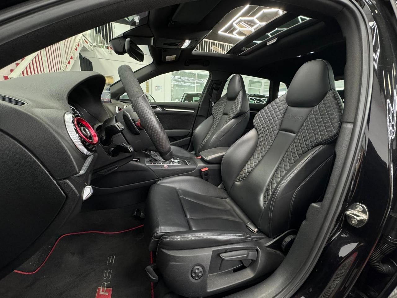 4 oeilletons de fixation dans le coffreAccoudoir central avant, avec vide-poches relevable, inclinaison réglable et coulissant en longueurAdvanced key : système de verrouillage et de déverrouillage du véhicule sans utilisation de la clé. Démarrage et arrêt du moteur main libre par touche Start/StopAiles avant avec passages de roues élargisAirbag de genoux coté conducteurAirbags grand volume pour conducteur et passager avantAirbags latéraux à l'avant intégrés au dossier des siègesAlarme antivol incluant protection volumétrique de l'habitacle et protection antiremorquage par capteur d'inclinaison désactivableAllume-cigare et cendrier amovible, couvercle chromé avec anneaux Audi, allume-cigare sur la console centrale au lieu de la prise 12 volts de sérieApplications décoratives sur les contre-portes et tableau de bord style "3D noir"ASR (antipatinage)Assistance hydraulique au freinage d'urgenceAssistant de freinage en cas de collision, en cas d'accidentAudi Drive Select : différents réglages du véhicule à travers trois modesAudi parking system plus : signal acoustique et visuel d'aide au stationnement avant et arrière par pictogrammes sur l'écranAudi Premium Tracking SystemAudi Sound System avec 10 haut-parleursBaguettes décoratives sur les vitres latérales style aluminium mat ; revêtement noir brillant sur les montants de pavillon centraux extérieurs et les triangles de portières arrièreBecquet arrière RS3 laqué dans la couleur de la carrosserie, au niveau du pavillon avec inserts aérodynamiques latéraux noir brillantBoîte à gants grand volume côté passager avant, éclairéeCache-bagages amovibleCalandre Audi singleframe avec grille de calandre à structure alvéolée noir brillant et encadrement d'une seule pièce style aluminium mat ; ouvertures d'entrées d'air en noir brillantCarrosserie galvaniséeCeintures de sécurité 3 points automatiques pour toutes les places, prétensionneurs pyrotechniques, réglage des ceintures en hauteur à l'avant ; limiteurs de tension sur toutes les places extérieuresChâssis Sport RSCiel de pavillon en tissu noirClé à fréquence radio, avec emblème RSClimatisation automatique Confort avec réglage asservi à la position du soleil, réglage de température gauche/droite séparéContrôle de ceinture attachée pour toutes les places ; un signal acoustique et visuel à l'avant prévient lorsque la ceinture n'est pas fixée, un signal visuel à l'arrière attire l'attention sur la fixation des ceinturesContrôle de pression des pneus ( TPMS )Contrôle électronique de stabilisation (ESC) désactivableDétecteur de pluie et de luminosité incluant pare-brise avec bande grise sur la partie supérieureDirection progressive contribuant à une augmentation de la dynamique de conduite grâce à une démultiplication directe et progressiveDisques de frein ventilés à l'arrièreDisques de frein Wave en matériau composite, ventilés et perforés à l'avantDossier de banquette arrière rabattable en deux parties 40/60 ou complètementEcrous antivolEDS (blocage électronique de différentiel)Essuie-glace arrière à déclenchement automatique au passage de la marche arrièreEtriers laqués noir extra brillant, avec inscription RS à l'avantExtensions de bas de caisse couleur carrosserieFeux arrière avec feux de recul blancs et feux de brouillard arrière, incluant troisième feu stop surélevé et éclairage de plaque à LEDFeux de freinage adaptatifs (déclenchement des feux de détresse automatique)Feux de route assistés : gestion automatique du passage de feux de croisement à pleins phares et inversementFixation pour sièges enfants ISOFIX et Top Tether pour les places arrière extérieuresFrein de stationnement electromécaniqueIdentification du modèle/technologie sur le capot de coffreInscription "quattro" sur le tableau de bord côté passagerInscription quattro sur la calandre, le capot de coffre et le tableau de bord côté passagerInscriptions RS3 sur la calandre, le capot de coffre, les baguettes des seuils de portes, le volant Sport, le pommeau de levier de vitesses et le compte-toursJantes en aluminium coulé Audi Sport style 5 branches en hélice, avec pneus 235/35 R 19 91Y XLLave-essuie-glace 2 vitesses, 4 intervalles de balayage réglablesLève-vitres à l'avant et à l'arrière, électriques, avec protection antipincement, ouverture/fermeture par le verrouillage centralisé, fonction ouverture/fermeture par impulsionLunette arrière dégivrante, avec minuterie; chauffage supplémentaire de l'extrémité inférieure de l'essuie-glace arrièreMiroir de courtoisie côté conducteur et passagerMMI GPS plus avec données de navigationOutillage de bord dans le coffre incluant un cricPack aluminium intérieurPack EclairagePack rangement + Pack coffrePare-brise acoustiquePare-chocs RS : style dynamique et sportif, larges prises d'air à l'avant en noir brillant ainsi que lame horizontale laquée dans la couleur de carrosserie, diffuseur noir brillant à l'arrièrePare-soleil rabattables et pivotants, côtés conducteur et passager avant, avec miroir de courtoisie occultablePatères à vêtements sur les montants de pavillon centraux, à gauche et à droite, simplesPédalier et repose-pied en acier inoxydablePoignées de maintien. 4 poignées avec mécanisme amortisseur, rabattables, encastrées dans le pavillonPréparation pour téléphone portable (Bluetooth), commande sur volant multifonction, mains libres et audiostreamingProtection antidémarrage électronique intégrée à la gestion du moteur ; activation automatique par la clé du véhiculeProtection latérale anticollision avec barres extrêmement rigides dans les portières et une structure latérale de carrosserie renforcée, particulièrement dans les montants de pavillon centraux et les seuils de portièresQuattro : transmission intégrale permanenteRangements dans les contre-portes à l'avant avec casier de rangement pour boissons, rangements dans l