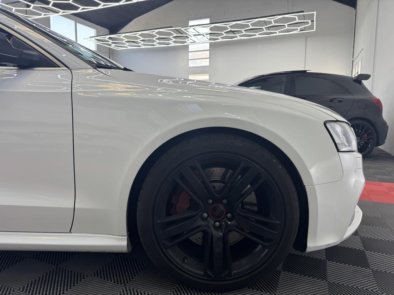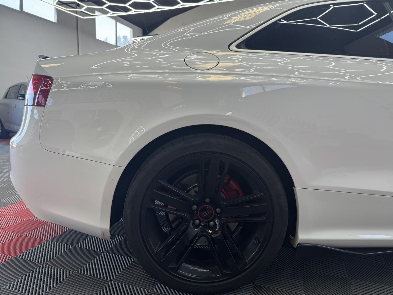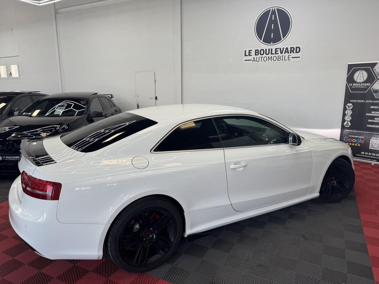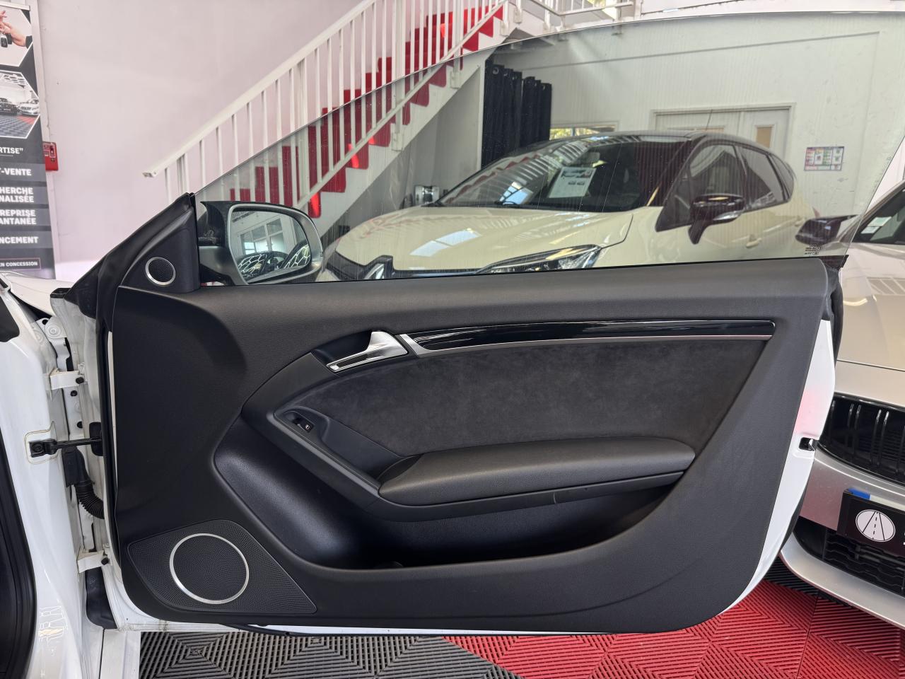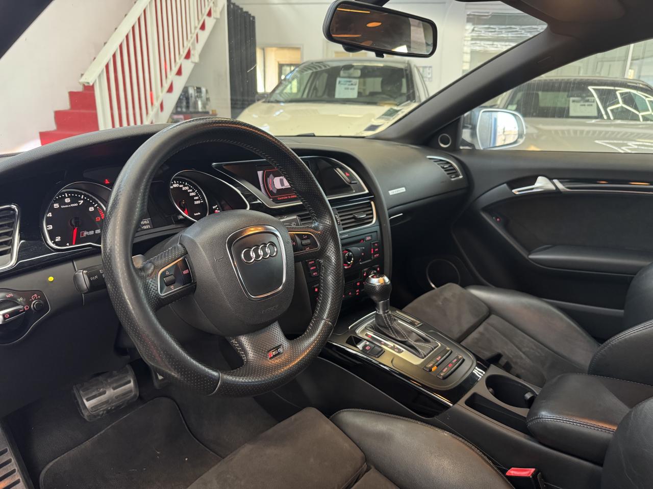 4 oeilletons de fixation dans le coffre4 œilletons de fixation dans le coffre, pour maintenir les bagages et objets ; points d'accrochage pour le filet mixteAccoudoir central avant avec vide-poches et 2 prises 12 VAccoudoir central dans le dossier des sièges arrière, rabattable ; compartiment avec trousse de secoursAffichage de la température extérieure dans le système d'information du conducteurAirbags grand volume pour conducteur et passager avant avec détecteur de la position d'assise ; airbag adaptatif pour le conducteur et passager avantAirbags grand volume pour le conducteur et le passagerAirbags latéraux (airbag thorax et bassin à l'avant)Alarme antivol : surveille l'habitacle, autoradio, portes, capot moteur et de coffreAllume-cigare intégré dans le cendrierAntipatinage ASR : empêche le patinage des roues motrices ; assure une motricité optimaleApplications décoratives en carbone sur contre-portes et console centraleApplications décoratives spécifiques en piano laqué noir autour de l'instrumentation et de l'écran du MMIAppuie-tête, réglables à l'avant et à l'arrièreAudi Drive Select : différents réglages du véhicule à travers trois modesAudi Hold Assist : système désactivable maintenant le véhicule à l'arrêt en descente comme en côte; permet un redémarrage confortable sans mettre le frein à mainAudi Premium Tracking System : système de localisation et d'immobilisation par satellite couplé à l'alarme antivolAvertisseur deux tons sur le moyeu du volantBlocage électronique de diff érentiel EDS, aide au démarrage intervenant jusqu'à une vitesse d'environ 100 km/hBlocage électronique de différentiel (EDS)Boîte automatique S tronic 7 vitesses à double embrayage, passage en mode manuel possible à l'aide du sélecteur ou des palettes situées derrière le volantBouclier avant avec larges prises d'air en structure nid d'abeilles, avec double baguette horizontale et lame de bas de bouclier anthracite brillantesCalandre Singleframe : grille anthracite brillante en structure nid d'abeilles et cadre en aluminium matCapot de coffre à ouverture automatiqueCarrosserie galvaniséeCeintures de sécurité, automatiques à trois points pour les quatre placesCeintures de sécurité, automatiques à trois points pour les quatre places, contrôle de port de ceinture à l'avant, couleur assortie à celle de l'habitacleCendriers dans la console centrale à l'avant et à l'arrièreChangeur 6 CD compatible MP3 ou WMA dans la boîte à gantsChâssis Sport RSChâssis Sport RS avec suspension et amortisseurs plus fermes pour un contact plus direct avec la chaussée et une conduite sportiveCiel de pavillon en tissu noir ou argent étoile au choixClimatisation automatique Confort 3 zones à fonctionnalités étendues et affichage numériqueClimatisation automatique Confort Plus 3 zonesColonne de direction de sécuritéContact d'allumage électronique, clé de contact mémorisant différentes données d'entretienContrôle de la pression des pneumatiquesCric de levageDétecteur de pluie et allumage automatique des projecteursDirection assistée ServotronicDossier des sièges arrière rabattable séparément, avec déverrouillage à distance des dossiers depuis le coffreEclairage intérieur à extinction temporisée et contacteurs sur toutes les portièresEcrous antivolEntourage de vitres en aluminium, revêtement noir brillant sur les montants de pavillon centraux et les triangles des portières arrièreEntourages de vitre en aluminium, revêtement noir brillant sur les montants de pavillon centraux et les triangles des portières arrièreEtriers de freins laqués noir avec logo RS 5Etui à lunettes sur le module de pavillonÉtui à lunettes, dans le module d'éclairage intérieur avant, au-dessus du rétroviseur intérieurFeux de route assistés : gestion automatique du passage de feux de croisement à pleins phares et inversementFrein de stationnement electromécaniqueGPS Plus : système de navigation GPSIndicateur d'usure des disques à l'avantIndicateur de rapport de vitesse dans le système d'information du conducteur : apporte assistance au conducteur dans le choix du rapport de vitesse adaptéInscriptions RS 5 sur les seuils de portes, les étriers de freins, la calandre, la malle de coffre, le volant, le levier de vitesses S tronic, le compte-tours et la cléInstrumentation à éclairage réglableInstrumentation avec éclairage réglable, tachymètre électronique avec compteur kilométrique totalisateur et journalier, compte-tours, horloge, indicateur de température du liquide de refroidissement et jauge de carburantJantes en aluminium coulé style RS, 5 branches "Structure", 9 J x 19, avec pneus 265/35 R19Lave-glace, deux vitesses, 4 réglages d'intermittence, balayage coup par coup et lavage-balayage automatiqueLève-vitres électriques à l'avant avec protection antipincement, fonction ouverture/fermeture confort par impulsions ; vitres arrière fixesLunette arrière dégivrante, avec minuterieMoulures de seuils de portes avec insert en aluminium badgé RS 5Ordinateur de bord couleur et contrôle AutocheckOrdinateur de bord couleur et système de contrôle AutocheckOutillage de bord dans le coffreOuverture de coffre automatiquePack EclairagePeinture métallisée ou nacréePoignées de maintien amorties, rabattables à 2 positions, encastrées dans le ciel de pavillonPoignées de portières extérieures laquées dans la couleur de carrosserie, poignées cintrées agréables à utiliserPommeau de levier de vitesses en cuir perforé avec badge RS 5 ; soufflet en cuir avec surpiqûres gris pierrePorte-boissons sur la console centralePréparation ISOFIX pour sièges latéraux arrière et siège passager avantPréparation pour téléphone 2 W bi-bande (D et E), commande sur volant multifonctionPréparation pour téléphone 2 W bi-bande (D et E), sans support pour adatateur ni antenne de toit, commande sur volant multifonction, main libre, interface BluetoothP