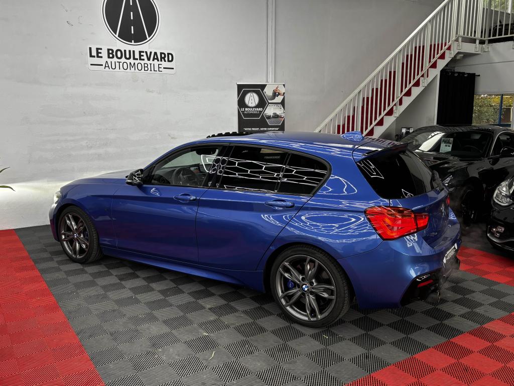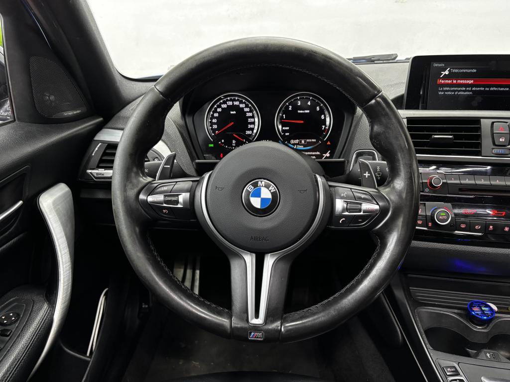 ABS (Antiblocage de roues)Accoudoir central avant coulissantAffichage BMW EfficientDynamics dans le cadran d'instrumentationAide au démarrage en côte, pré-charge du circuit de freinage au lever de pied, séchage des disques de freins et compensation du fadingAirbags conducteur et passagerAirbags de tête avant et arrière avec voile de protection contre les débris de verreAirbags latéraux avantAnneaux d'arrimage dans le coffreAntenne de toit « aileron de requin »Anti-démarrage électroniqueAppel d'Urgence IntelligentAppuis tête ajustablesAssistance au freinage d'urgenceAutoradio BMW Professional CD compatible MP3, 6 haut-parleurs, prise AUX-IN, port audio USB, double Tuner, RDS et streaming audio Bluetooth (avec "Music Search")Badge M en chrome sombre apposé sur les flancs de la voituresBadge xDrive apposé sur le hayon à gaucheBaguettes de seuil en aluminium avec emblème MBanquette arrière 3 places avec dossiers rabattables en deux parties (60/40)BMW TwinPower TurboBoîte de vitesses automatique Sport à 8 rapports et palettes au volantCeintures de sécurité à 3 points (tous les sièges) avec prétensionneur pyrotechnique et limiteur de tension (à l'avant)Ciel de pavillon anthraciteClés radiocommandées à mémorisation automatique des réglages "Personal Profile"Clés radiocommandées avec application bleueClimatisation automatique 3 zones avec filtre microporeux, fonction recyclage d'air automatique et capteur d'ensoleillementConnectivité avancée sans fil avec recharge par inductionConsole centrale noir laquéeConstruction allégée intelligenteContrôle de freinage en courbe CBCContrôle Dynamique de la Stabilité DSC+Contrôle Dynamique de la Traction DTCCoques de rétroviseurs extérieurs en “Ferricgrau”Démarrage sans clé via le bouton de démarrage Start/Stop avec contour chroméDésactivation de l'airbag du passager avantDétecteur de pluie et allumage automatique des projecteursDeux porte-boissons dans la console centrale avantDirection DirectDrive à démultiplication variableEclairage d'ambiance avec deux couleurs au choixEclairage de bienvenue et d'accompagnement "Follow-me-home"Eclairage plafonnier soft-on/soft-off et éclairage du coffreEcran d'information central couleur 6,5" (16,5 cm) avec commande par "Controller" iDrive et 6 touches de raccourcis programmablesEcrous antivolFeux arrière avec guides de lumière à LEDFeux de stop dynamiquesFixations Isofix aux places latérales arrièreFonction d'arrêt et de redémarrage automatique du moteurFreins à disques ventilés à l'avantFreins Sport MIndicateur de maintenance CBS tenant compte des conditions de conduiteInscription “M140i” sur le coffreInserts décoratifs en Aluminium "Hexagon" souligné de bleu matInterface Bluetooth et port USBJantes en alliage léger 18'' style 436 M à rayons doubles avec pneumatiques mixtes et teinte “Ferricgrau”Kit aérodynamique MKit éclairageKit fumeurKit rangementLevier de vitesses M raccourci en cuir “Walknappa”Limiteur et régulateur de vitesse avec maintien de la vitesse en descenteMesure individuelle de pression des pneumatiques avec 3 niveaux d'alerteMiroirs de courtoisie intégrés aux pare-soleilNavigation multimédia BusinessNotice d'utilisation intégréeOrdinateur de bord, Check-Control et indicateur de température extérieurePare-chocs auto-régénérants jusqu'à 4 km/h avec éléments déformables jusqu'à 15 km/hPneumatiques avec technologie “High-Grip” qui améliore la motricité transversale dans les courbes et réduit les distances de freinage (pas avec pneumatiques RSC permettant le roulage à plat)Prise 12 V sur console centrale avantProjecteurs antibrouillard à LEDProjecteurs Full LEDRadars de stationnement arrière PDC avec représentation graphique des obstacles sur l'écran centralRappels de clignotants à LED intégrés aux rétroviseurs extérieursRepose-genou pour la jambe droite du conducteurRepose-pied conducteur siglé "M"Respect de la Norme anti-pollution EU6Rétroviseurs et buses de lave-glace chauffantsRétroviseurs extérieurs à réglages électriquesRétroviseurs extérieurs électrochromes et rabattables électriquement y compris Rétroviseur intérieur électrochromeSécurité enfants aux portes arrièreSélecteur de mode de conduite - 3 modes : "ECO PRO", "Confort" et "Sport"Sellerie Tissu/Alcantara "Hexagon" anthracite avec surpiqures contrastantes bleuesServices Après-Vente connectés BMW TeleServicesSeuils de portes à l'avant siglés “M140i”Shadow Line brillant BMW IndividualSièges Advanced pour conducteur et passager avantSuspension SelectDriveSystème de récupération de l'énergie au freinageSystème Hi-FiTapis de sol en veloursTechnologie 4 roues motrices intelligente xDriveTeinte de carrosserie "Alpinweiss" unieTouches de chrome autour des buses d'aération de la console centrale, de la radio et de la climatisationTouches multifonctions sur le volantTrain arrière multibrasTrain avant à double articulationTriangle de présignalisation avec kit de premiers secoursTroisième feu stop à LEDVerrouillage centralisé avec télécommandeVide-poches ergonomiques dans les portes avantVitrage teinté pour réduire l'échauffement dû à l'ensoleillementVitres avant et arrière électriques à impulsion avec système ant-ipincementVolant Sport M gainé cuir