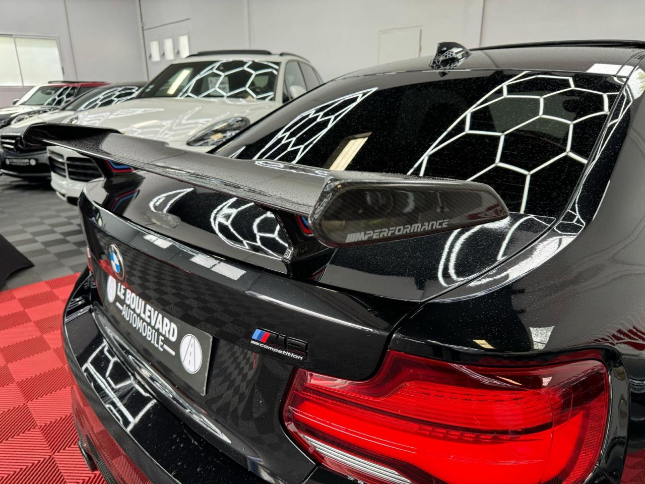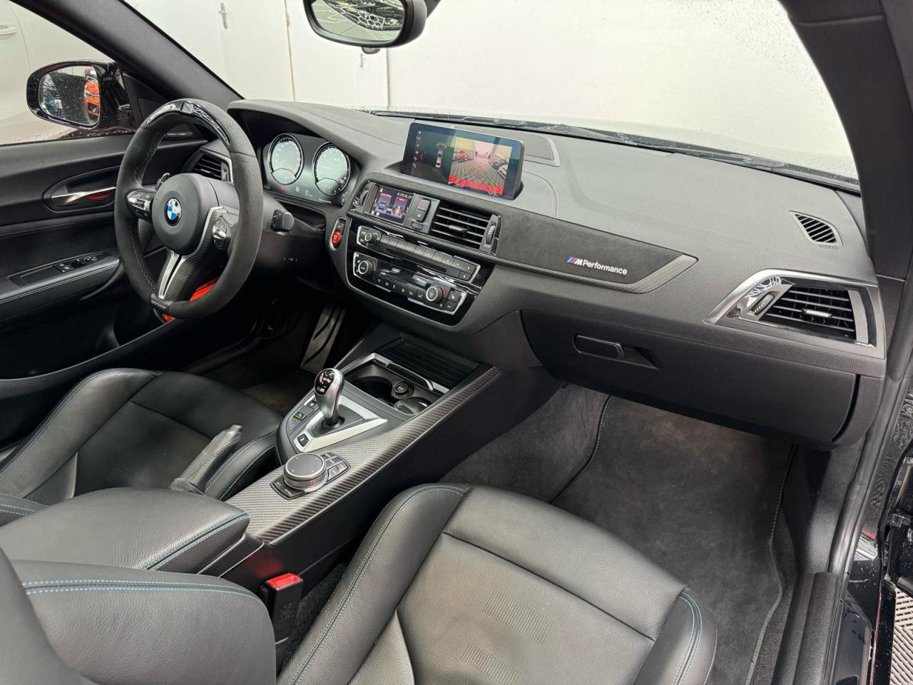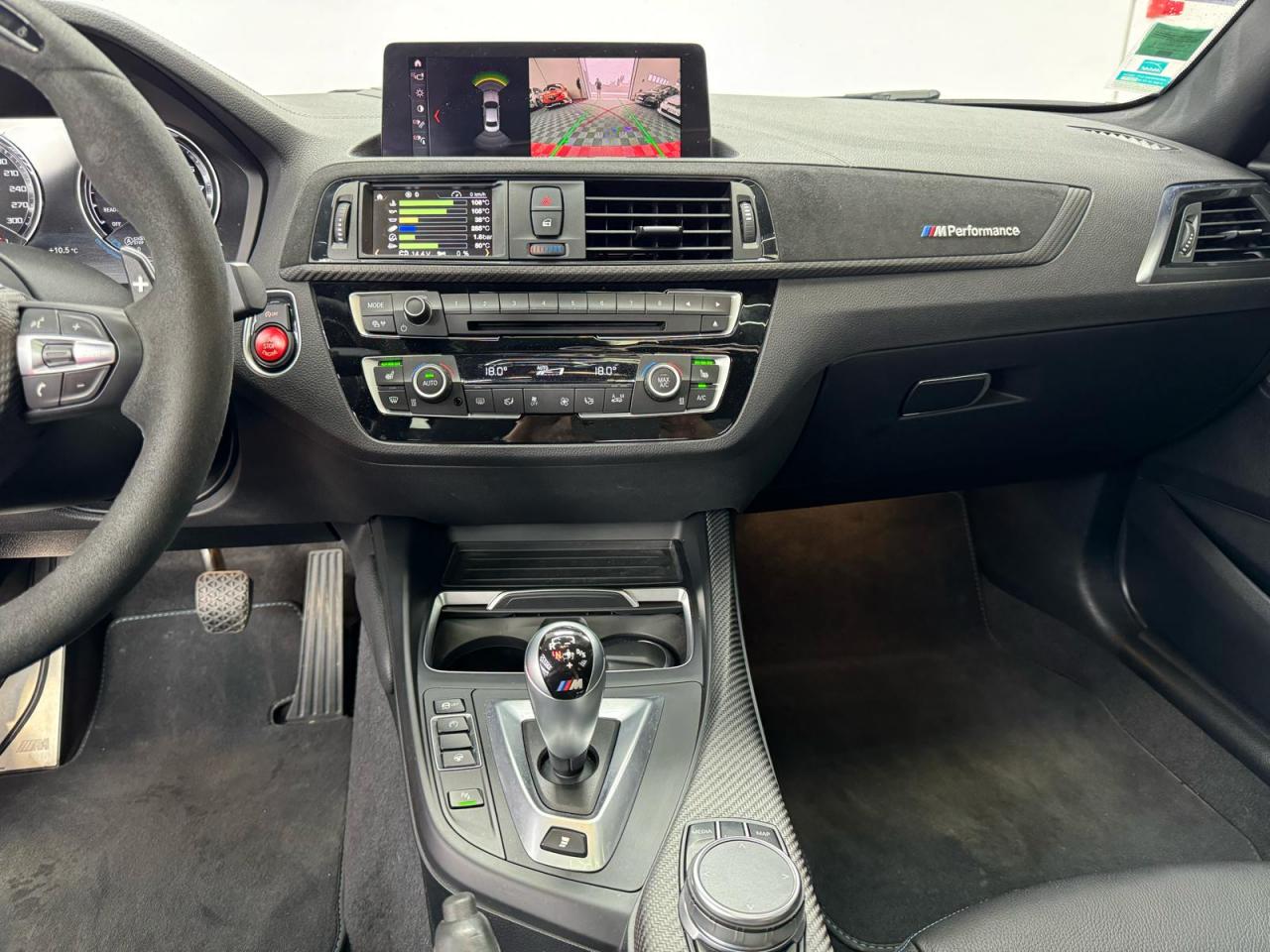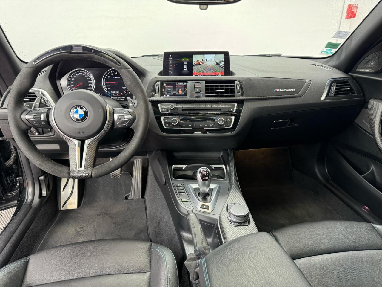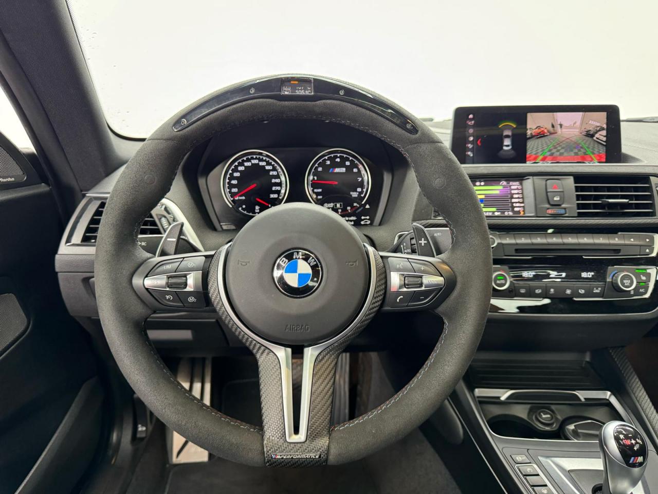 2 doubles sorties d'échappement rondes en chrome noir, à gauche et à droite3ème feu stop arrière7 touches de favoris programmables et «Controller» iDrive avec touches de raccourciABS, y compris assistant de freinageAccoudoir central avant coulissantAirbag passager déconnectableAirbags de tête avant et arrière avec voile de protection contre les débris de verreAirbags frontaux conducteur et passagerAirbags latéraux avantAlarme antivolAnneaux d'arrimage dans le coffre sur le seuil de chargementAntenne de toit « aileron de requin »Anti-démarrage électronique EWS IVAppel d'Urgence Intelligent (durée de vie de la voiture)Appuis-tête arrière rabattablesAutoradio BMW Professional, 6 haut-parleurs, double Tuner RDS, info-route (TP)Baguettes de pare-chocs AV et AR couleur carrosserieBaguettes de toit couleur carrosserieBanquette arrière 2 placesBanquette arrière rabattable 40/20/40Barre de renfort en Polymère Renforcé de Fibres de CarboneBMW Tracking SystemBoîte de vitesses M DKG 7 rapports à double embrayage avec DrivelogicBouton de démarrage Start/Stop rouge avec contour chroméBuses de lave-glace chauffantesCalandre avec cadre en noir brillant et doubles barreaux verticaux noirs et logo "M2"Ceinture de sécurité 3 points à toutes les placesCeintures de sécurité noires avec liseré aux couleurs MCiel de pavillon "Anthrazit "Clés radiocommandées à mémorisation automatique des réglages "Personal Profile"Climatisation automatique bizoneConciergerie (3 ans)Console centrale laquée noireConstruction allégée intelligenteContrôle de freinage en courbe CBCContrôle Dynamique de la Stabilité DSC+Contrôle Dynamique de Traction DTCDésignation du modèleDétecteur de pluie et allumage automatique des projecteursDétecteur préventif de somnolence Attention AssistDétection de l'occupation du siège passager avantDéverrouillage électrique du coffre via le volet de coffre ou la clé radiocommandéeDifférentiel Actif M à commande électronique avec blocage du couple variant de 0 à 100%Direction à assistance électriqueDirection Servotronic spécifique MEclairage d'accompagnement "Follow me Home"Eclairage d'ambianceEclairage dans le coffreEcran d'informations haute résolution pour le combiné d'instrumentationEcrous de roues antivolFeux antibrouillard arrièreFeux arrière LEDFeux arrière surteintésFeux de route anti-éblouissementFeux de stop bi-intensitéFeux de stop dynamiques clignotantsFixations ISOFIX aux places arrièreFonction d'arrêt et de redémarrage automatique du moteurFonctions "Ma BMW à distance"Gestionnaire M Drive : commande la réactivité de l'accélérateur, de la direction M Servotronic, de la boîte M DKGInscription « M2 Competition » sur le coffreInserts décoratifs brillants "Schwarz" soulignés de "Pearl Chrome"Interface Bluetooth et port USBJantes en alliage léger 19" (48 cm) style 788 M, forgées, style en Y, bicolores « Schwarz » brillant avec monte pneumatique mixteKit de mobilité BMWKit éclairageKit fumeurKit rangementKit rangementLecteur CDLève-vitres avant électriques avec commande par impulsion et protection anti-coincementLevier sélecteur de boîte de vitesses orné du logo MLimiteur et régulateur de vitesse avec maintien de la vitesse en descenteM Dynamic ModeMesure individuelle de pression des pneumatiquesMotorisation BMW M TwinPower TurboNotice d'utilisation de la voiture intégrée et carnet d'entretien électronique avec BMW Service HistoryOrdinateur de bord, Check-Control et indicateur de température extérieureOuïes latérales au traité en relief avec entourage en noir brillant et inscription "M2"Pack Advanced Full LEDPare-chocs arrière au design spécifique avec diffuseur (couleur carrosserie)Pare-chocs avant au design spécifique avec 2 grandes prises d'airPoignées de portes couleur carrosseriePorte-gobelets sur la console centralePrise 12V dans la console centraleRadars de stationnement avant et arrière PDCRepose-pied conducteur siglé "M"Rétroviseur intérieur jour/nuit automatiqueRétroviseurs extérieurs couleur carrosserie à réglage électrique et dégivrants, miroir asphérique côté conducteur et passager, rappels de clignotants intégrésRétroviseurs extérieurs électrochromes rabattables électriquementRétroviseurs extérieurs spécifiques M dans la couleur de la carrosserie, aérodynamiquement optimisésSellerie cuir Dakota pour Sièges AdvancedServices Après-Vente connectés BMW TeleServicesServices ConnectedDrive (3ans)Seuils de portes avec inscription "M2 Competition"Shadow Line Brillant BMW Individual étenduSièges Advanced pour conducteur et passager avant avec réglage électrique de la largeur du dossierSièges avant chauffantsSièges conducteur et passager réglables en hauteurSystème d'échappement équipé de deux volets à commande électriqueSystème d'éclairage de bienvenueSystème de freinage spécifique avec disques de freins perforés et ventilésSystème de freinage spécifique MSystème de navigation Professional avec écran 8,8"Système de récupération de l'énergie au freinageTapis de sol en veloursTeinte de carrosserie "Alpinweiss" unieTrain roulant de conception M avec liaison essieu/carrosserie raffermie et bras transversaux,ressort et amortisseurs spécifiques MTriangle de présignalisation avec kit de premiers secoursVerrouillage automatique des portes dès 15km/hVerrouillage centralisé des portes, du coffre et de la trappe à essenceVide-poches ergonomiques dans les portes avantVolant colonne de direction réglable en hauteur et profondeurVolant M gainé cuir avec touches multifonctions, deux touches M Drive