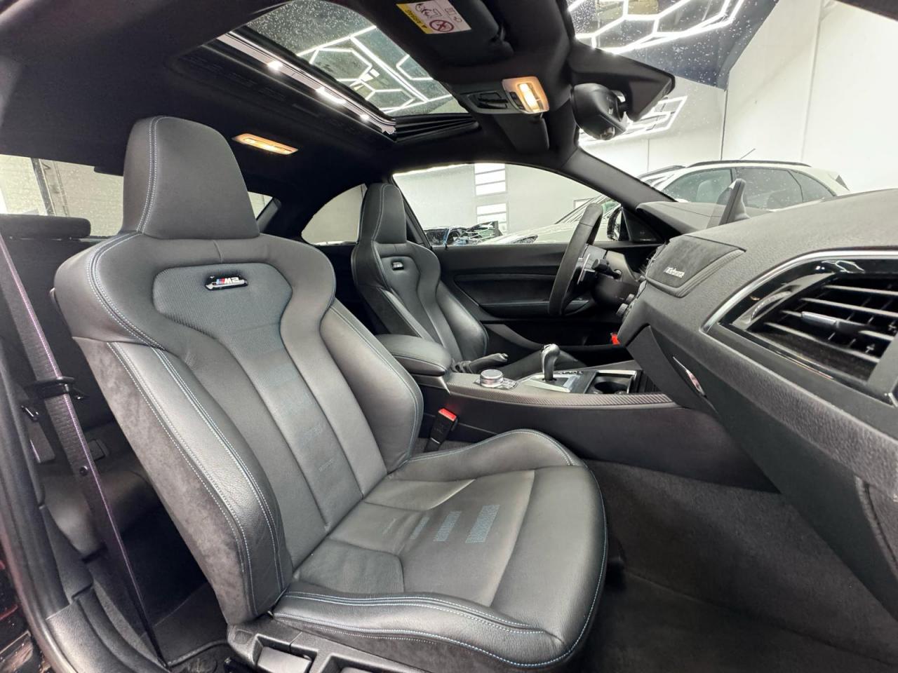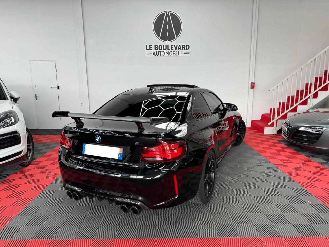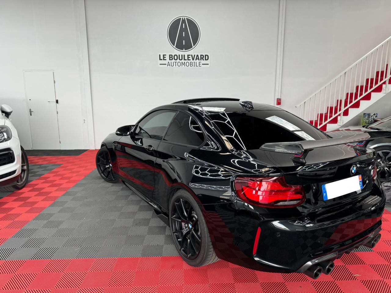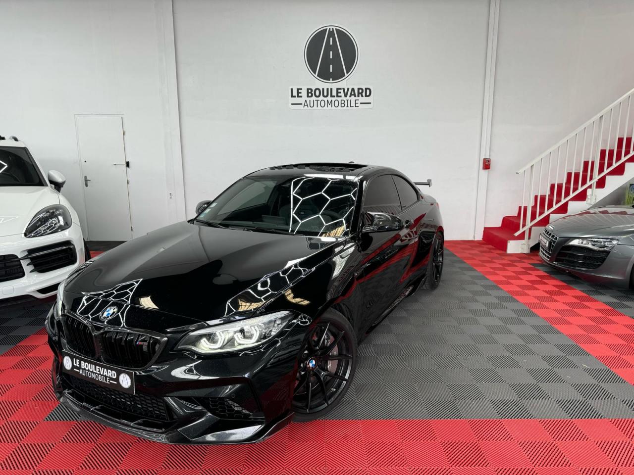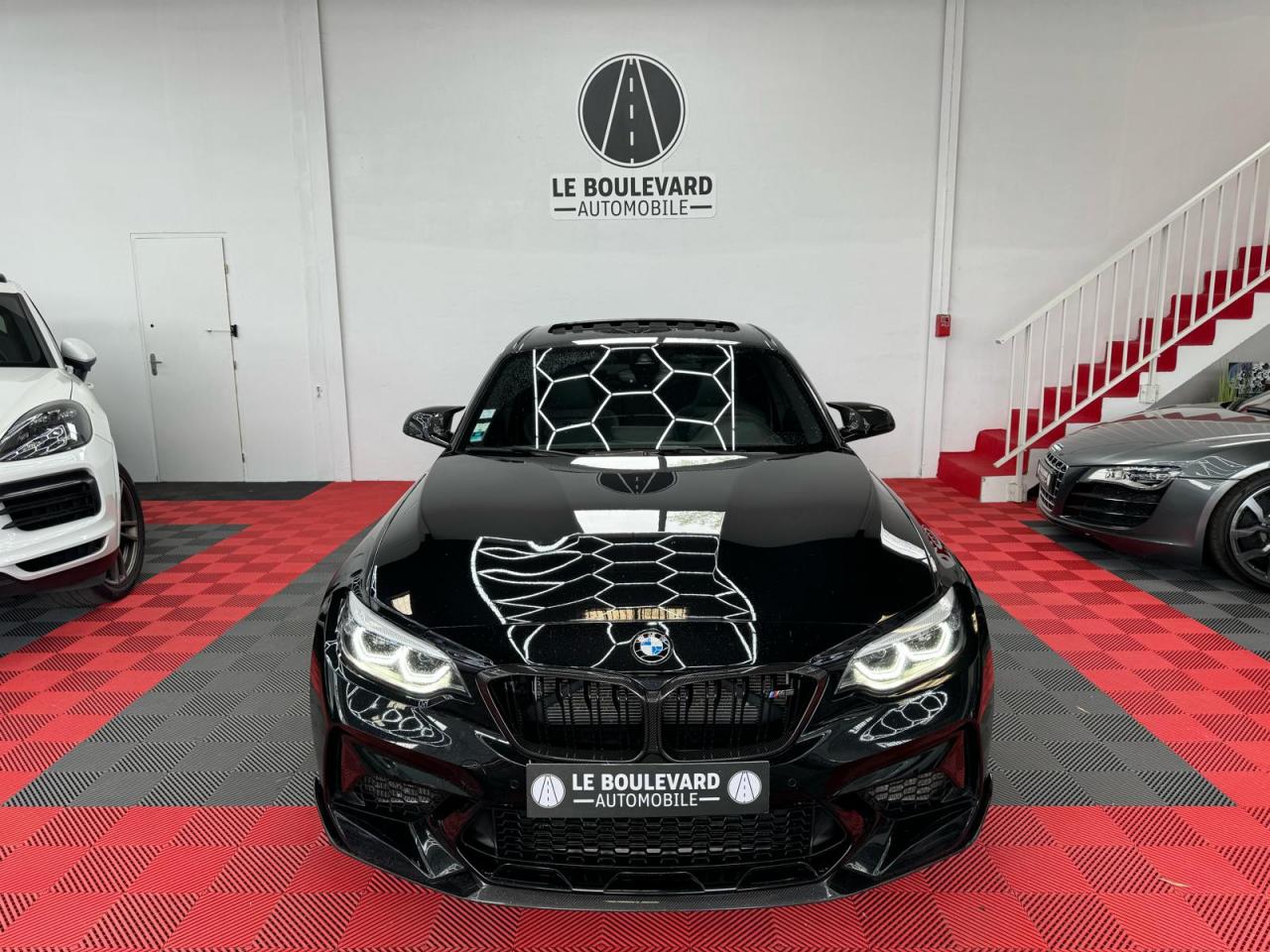 2 doubles sorties d'échappement rondes en chrome noir, à gauche et à droite3ème feu stop arrière7 touches de favoris programmables et «Controller» iDrive avec touches de raccourciABS, y compris assistant de freinageAccoudoir central avant coulissantAirbag passager déconnectableAirbags de tête avant et arrière avec voile de protection contre les débris de verreAirbags frontaux conducteur et passagerAirbags latéraux avantAlarme antivolAnneaux d'arrimage dans le coffre sur le seuil de chargementAntenne de toit « aileron de requin »Anti-démarrage électronique EWS IVAppel d'Urgence Intelligent (durée de vie de la voiture)Appuis-tête arrière rabattablesAutoradio BMW Professional, 6 haut-parleurs, double Tuner RDS, info-route (TP)Baguettes de pare-chocs AV et AR couleur carrosserieBaguettes de toit couleur carrosserieBanquette arrière 2 placesBanquette arrière rabattable 40/20/40Barre de renfort en Polymère Renforcé de Fibres de CarboneBMW Tracking SystemBoîte de vitesses M DKG 7 rapports à double embrayage avec DrivelogicBouton de démarrage Start/Stop rouge avec contour chroméBuses de lave-glace chauffantesCalandre avec cadre en noir brillant et doubles barreaux verticaux noirs et logo "M2"Ceinture de sécurité 3 points à toutes les placesCeintures de sécurité noires avec liseré aux couleurs MCiel de pavillon "Anthrazit "Clés radiocommandées à mémorisation automatique des réglages "Personal Profile"Climatisation automatique bizoneConciergerie (3 ans)Console centrale laquée noireConstruction allégée intelligenteContrôle de freinage en courbe CBCContrôle Dynamique de la Stabilité DSC+Contrôle Dynamique de Traction DTCDésignation du modèleDétecteur de pluie et allumage automatique des projecteursDétecteur préventif de somnolence Attention AssistDétection de l'occupation du siège passager avantDéverrouillage électrique du coffre via le volet de coffre ou la clé radiocommandéeDifférentiel Actif M à commande électronique avec blocage du couple variant de 0 à 100%Direction à assistance électriqueDirection Servotronic spécifique MEclairage d'accompagnement "Follow me Home"Eclairage d'ambianceEclairage dans le coffreEcran d'informations haute résolution pour le combiné d'instrumentationEcrous de roues antivolFeux antibrouillard arrièreFeux arrière LEDFeux arrière surteintésFeux de route anti-éblouissementFeux de stop bi-intensitéFeux de stop dynamiques clignotantsFixations ISOFIX aux places arrièreFonction d'arrêt et de redémarrage automatique du moteurFonctions "Ma BMW à distance"Gestionnaire M Drive : commande la réactivité de l'accélérateur, de la direction M Servotronic, de la boîte M DKGInscription « M2 Competition » sur le coffreInserts décoratifs brillants "Schwarz" soulignés de "Pearl Chrome"Interface Bluetooth et port USBJantes en alliage léger 19" (48 cm) style 788 M, forgées, style en Y, bicolores « Schwarz » brillant avec monte pneumatique mixteKit de mobilité BMWKit éclairageKit fumeurKit rangementKit rangementLecteur CDLève-vitres avant électriques avec commande par impulsion et protection anti-coincementLevier sélecteur de boîte de vitesses orné du logo MLimiteur et régulateur de vitesse avec maintien de la vitesse en descenteM Dynamic ModeMesure individuelle de pression des pneumatiquesMotorisation BMW M TwinPower TurboNotice d'utilisation de la voiture intégrée et carnet d'entretien électronique avec BMW Service HistoryOrdinateur de bord, Check-Control et indicateur de température extérieureOuïes latérales au traité en relief avec entourage en noir brillant et inscription "M2"Pack Advanced Full LEDPare-chocs arrière au design spécifique avec diffuseur (couleur carrosserie)Pare-chocs avant au design spécifique avec 2 grandes prises d'airPoignées de portes couleur carrosseriePorte-gobelets sur la console centralePrise 12V dans la console centraleRadars de stationnement avant et arrière PDCRepose-pied conducteur siglé "M"Rétroviseur intérieur jour/nuit automatiqueRétroviseurs extérieurs couleur carrosserie à réglage électrique et dégivrants, miroir asphérique côté conducteur et passager, rappels de clignotants intégrésRétroviseurs extérieurs électrochromes rabattables électriquementRétroviseurs extérieurs spécifiques M dans la couleur de la carrosserie, aérodynamiquement optimisésSellerie cuir Dakota pour Sièges AdvancedServices Après-Vente connectés BMW TeleServicesServices ConnectedDrive (3ans)Seuils de portes avec inscription "M2 Competition"Shadow Line Brillant BMW Individual étenduSièges Advanced pour conducteur et passager avant avec réglage électrique de la largeur du dossierSièges avant chauffantsSièges conducteur et passager réglables en hauteurSystème d'échappement équipé de deux volets à commande électriqueSystème d'éclairage de bienvenueSystème de freinage spécifique avec disques de freins perforés et ventilésSystème de freinage spécifique MSystème de navigation Professional avec écran 8,8"Système de récupération de l'énergie au freinageTapis de sol en veloursTeinte de carrosserie "Alpinweiss" unieTrain roulant de conception M avec liaison essieu/carrosserie raffermie et bras transversaux,ressort et amortisseurs spécifiques MTriangle de présignalisation avec kit de premiers secoursVerrouillage automatique des portes dès 15km/hVerrouillage centralisé des portes, du coffre et de la trappe à essenceVide-poches ergonomiques dans les portes avantVolant colonne de direction réglable en hauteur et profondeurVolant M gainé cuir avec touches multifonctions, deux touches M Drive