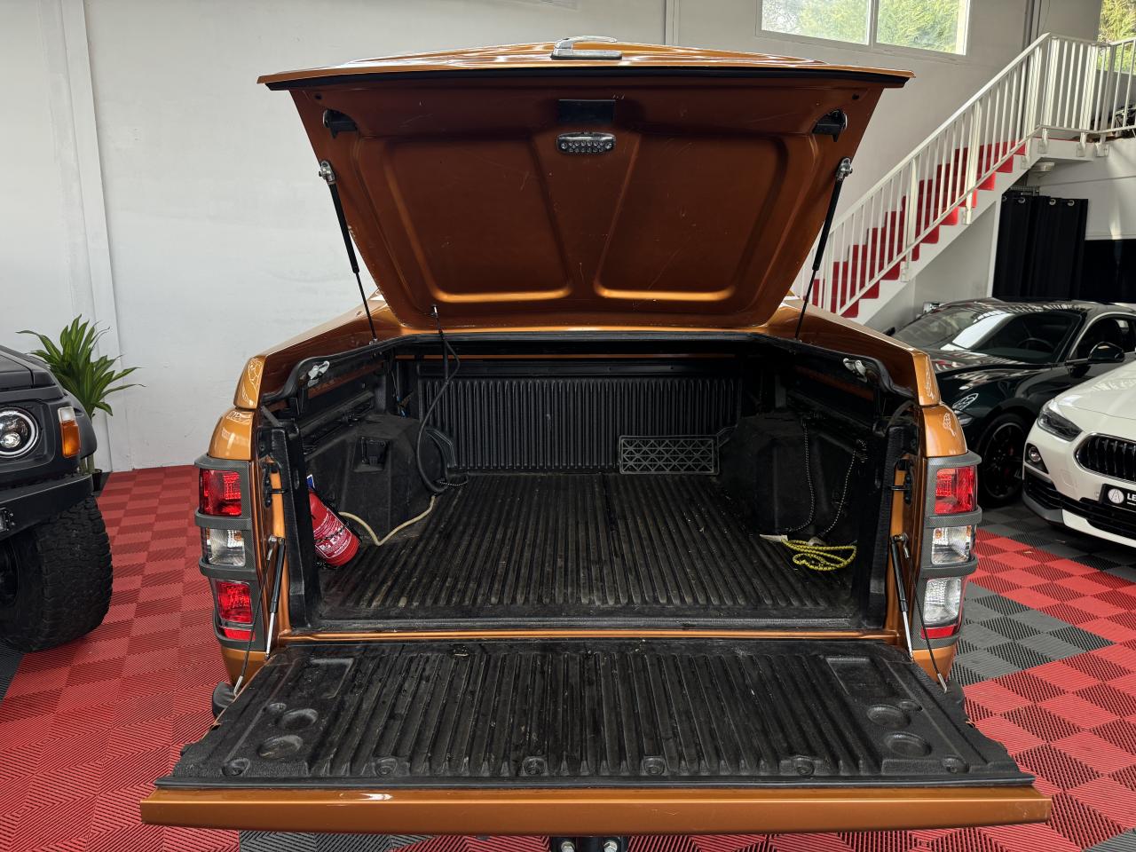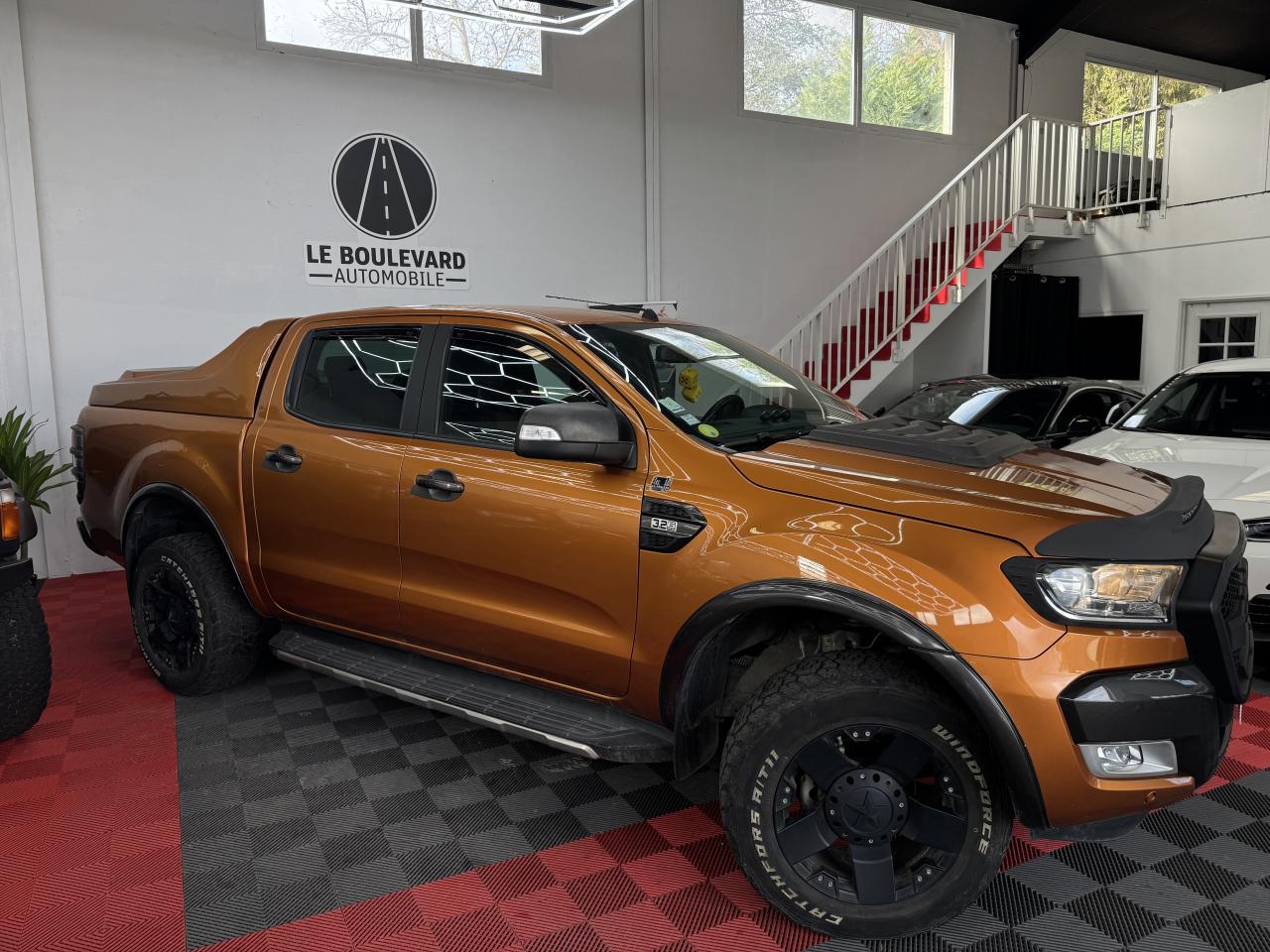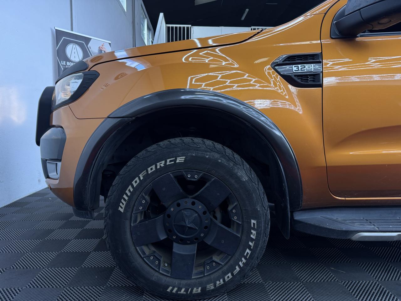 3ème feu stop arrièreABS électroniqueAide au stationnement arrièreAirbag frontaux conducteur et passagerAirbag genoux conducteurAirbags - Conducteur et passager avantAlarme volumétriqueAllumage automatique des projecteursAnti-démarrage électronique (PATS)Antipatinage déconnectableAssistance au démarrage en côte (HSA)Badge Wildtrak sur la ridelle arrière et les côtésBanquette arrière trois places avec appuie-tête aux places extérieurs et dossier de la place du milieu abaissable pour faire office d'accoudoirBoîte à gants éclairéeCalandre TitaneCaméra de reculClimatisation automatique bi-zoneColonne de direction rétractable en cas de choc frontalCommande au volant des phares,des clignotants et des essuie-glacesConsole centrale avec espace réfrigéréeConsole centrale longue en vinyle premium avec 2 porte-gobeletsConsole de pavillon longue avec plafonnier, lecteurs de carte et range-lunetteContrôle adaptatif de la charge (LAC)Contrôle de la pression des pneumatiquesContrôle du roulis de la remorque (TSC)Contrôle dynamique de la trajectoire (ESP)Crochets d'arrimage intérieur à la norme DINDéclenchement et clignotement automatique des feux stop en cas de freinage d'urgenceDirection assistéeDouble verrouillage centralisé à commande à distanceEclairage d'ambiance à LED personnalisableEclairage de courtoisie aux places avant avec fonction d'extinction différé actif lors du déverrouillage des portesFixation ISOFIX pour siège enfantFreins à disques ventilés à l'avantFreins à tambours à l'arrièreGarnissage moquette du plancherIndicateurs de vitesse, de niveau de carburant, de température d'eau, compte-tours et compteur kilométrique digitalJantes alliage 18"x 8 et pneumatique 265/60R18 tout-terrainLève-vitres arrière électriquesLève-vitres avant électriques avec ouverture à impulsion côté conducteurMarchepieds plastique avec inserts brossésMy KeyNuméro de série du véhicule visible de l'extérieurOrdinateur de bordOuïes latérales avec logoPanneaux de portes avec accoudoir, vide-poches et haut-parleurPanneaux de portes avec commande de lève-vitres et poignées chroméesPanneaux de portes avec insert façon cuir et surpiquage orangePare-brise chauffant avec lave-glace chaufféPare-chocs arrière peint avec marchepiedPare-chocs avant avec inserts mousse pour protection piétonPare-chocs avant couleur carrosserie avec inserts peintsPare-chocs avant profiléPare-chocs avant WildtrakPare-soleil avec porte-ticket coté conducteurPare-soleil passager avec miroir de courtoisiePhares halogènes avec entourage noirPhares halogènes, répétiteurs de clignotants, feux de reculPlaques de pas de porte chromées éclairées avec logo WildtrakPlateau en acier double peau avec ridelle arrière rabattable 2 positionsPoches de rangement au dos des sièges avantPoignée de maintien arrièrePoignées de maintien avantPoignées de portes et de ridelles arrières chromées/noirsPommeau de levier de vitesse gainé cuir avec insert argentéPorte-gobelets double à l'arrièrePrise 12V aux places arrièreProjecteurs antibrouillardProtection de plateauRéglage des phares en hauteurRégulateur de vitesseRétroviseur intérieur électrochromeRétroviseurs extérieurs couleur carrosserieRétroviseurs extérieurs réglables et rabattables électriquement, chauffants avec éclairage du sol et répétiteurs de clignotantsRail d'arrimage dan le platau type "C-Channel"Rangement dans les portes avantRetenue de la ridelle arrièreRoue de secours alliage avec cricSécurité enfants aux portes arrièreSellerie tissu avec inserts cuir WildtrakSerrures haute sécuritéSiège conducteur à réglages électriques (AV/AR, inclinaison du dossier, de l'assise et de la hauteur) et réglage lombaireSiège passager réglable avant/arrière et à dossier inclinableSièges conducteur et passager chauffantsSurélévations de ridelles et barres longitunales en aluminium brosséSystème audio CD GPS Sync 3, écran couleur 8" tactile,AppLink, Apple CarPlay, Android AutoSystème de contrôle de la descente (HDC)Système de protection anti-retournement (ROM)Témoin de ceinture de sécuritéTémoins de pression d'huile, de direction, d'eau dans le gazole, de feux de route, de charge batterie, de circuit de freinage, d'airbags, de débrayage des moyeux, de feu antibrouillard arrière -indicateur sonore de feux allumésTapis premiumTrappes à carburant sans bouchon Ford Easy FuelVerrouillage de la ridelle arrièreVerrouillage des portes en roulantVitres arrières surteintéesVitres teintéesVolant gainé cuir avec surpiquage orange ,inserts graphite et commandes du système audio et du régulateur de vitesse,réglage en hauteurVolant réglable en hauteurVolant réglable en hauteur et en profondeur