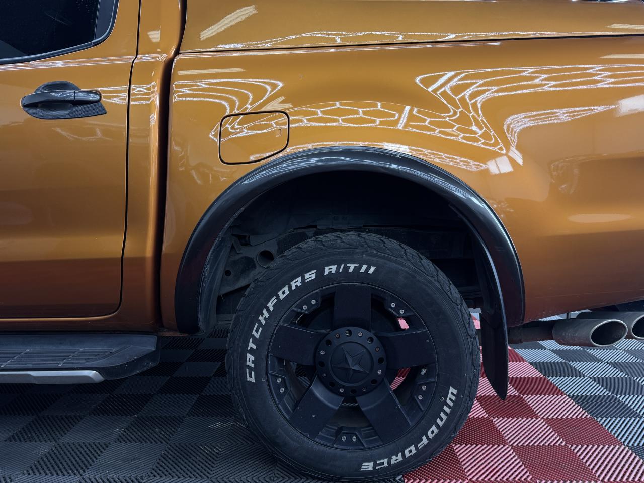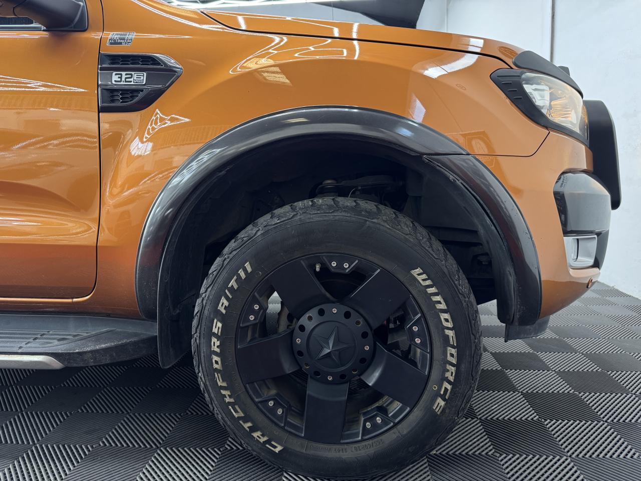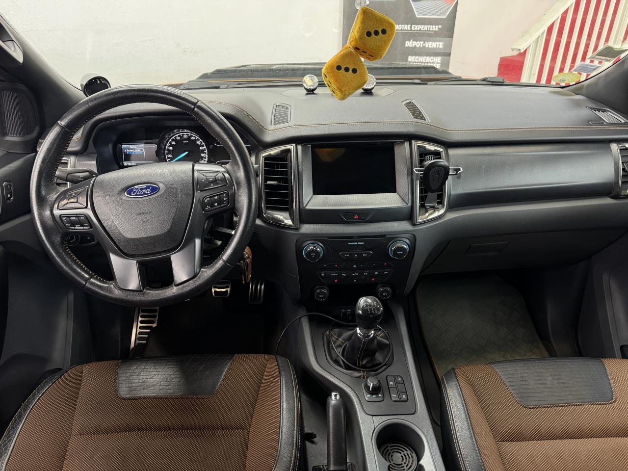 3ème feu stop arrièreABS électroniqueAide au stationnement arrièreAirbag frontaux conducteur et passagerAirbag genoux conducteurAirbags - Conducteur et passager avantAlarme volumétriqueAllumage automatique des projecteursAnti-démarrage électronique (PATS)Antipatinage déconnectableAssistance au démarrage en côte (HSA)Badge Wildtrak sur la ridelle arrière et les côtésBanquette arrière trois places avec appuie-tête aux places extérieurs et dossier de la place du milieu abaissable pour faire office d'accoudoirBoîte à gants éclairéeCalandre TitaneCaméra de reculClimatisation automatique bi-zoneColonne de direction rétractable en cas de choc frontalCommande au volant des phares,des clignotants et des essuie-glacesConsole centrale avec espace réfrigéréeConsole centrale longue en vinyle premium avec 2 porte-gobeletsConsole de pavillon longue avec plafonnier, lecteurs de carte et range-lunetteContrôle adaptatif de la charge (LAC)Contrôle de la pression des pneumatiquesContrôle du roulis de la remorque (TSC)Contrôle dynamique de la trajectoire (ESP)Crochets d'arrimage intérieur à la norme DINDéclenchement et clignotement automatique des feux stop en cas de freinage d'urgenceDirection assistéeDouble verrouillage centralisé à commande à distanceEclairage d'ambiance à LED personnalisableEclairage de courtoisie aux places avant avec fonction d'extinction différé actif lors du déverrouillage des portesFixation ISOFIX pour siège enfantFreins à disques ventilés à l'avantFreins à tambours à l'arrièreGarnissage moquette du plancherIndicateurs de vitesse, de niveau de carburant, de température d'eau, compte-tours et compteur kilométrique digitalJantes alliage 18"x 8 et pneumatique 265/60R18 tout-terrainLève-vitres arrière électriquesLève-vitres avant électriques avec ouverture à impulsion côté conducteurMarchepieds plastique avec inserts brossésMy KeyNuméro de série du véhicule visible de l'extérieurOrdinateur de bordOuïes latérales avec logoPanneaux de portes avec accoudoir, vide-poches et haut-parleurPanneaux de portes avec commande de lève-vitres et poignées chroméesPanneaux de portes avec insert façon cuir et surpiquage orangePare-brise chauffant avec lave-glace chaufféPare-chocs arrière peint avec marchepiedPare-chocs avant avec inserts mousse pour protection piétonPare-chocs avant couleur carrosserie avec inserts peintsPare-chocs avant profiléPare-chocs avant WildtrakPare-soleil avec porte-ticket coté conducteurPare-soleil passager avec miroir de courtoisiePhares halogènes avec entourage noirPhares halogènes, répétiteurs de clignotants, feux de reculPlaques de pas de porte chromées éclairées avec logo WildtrakPlateau en acier double peau avec ridelle arrière rabattable 2 positionsPoches de rangement au dos des sièges avantPoignée de maintien arrièrePoignées de maintien avantPoignées de portes et de ridelles arrières chromées/noirsPommeau de levier de vitesse gainé cuir avec insert argentéPorte-gobelets double à l'arrièrePrise 12V aux places arrièreProjecteurs antibrouillardProtection de plateauRéglage des phares en hauteurRégulateur de vitesseRétroviseur intérieur électrochromeRétroviseurs extérieurs couleur carrosserieRétroviseurs extérieurs réglables et rabattables électriquement, chauffants avec éclairage du sol et répétiteurs de clignotantsRail d'arrimage dan le platau type "C-Channel"Rangement dans les portes avantRetenue de la ridelle arrièreRoue de secours alliage avec cricSécurité enfants aux portes arrièreSellerie tissu avec inserts cuir WildtrakSerrures haute sécuritéSiège conducteur à réglages électriques (AV/AR, inclinaison du dossier, de l'assise et de la hauteur) et réglage lombaireSiège passager réglable avant/arrière et à dossier inclinableSièges conducteur et passager chauffantsSurélévations de ridelles et barres longitunales en aluminium brosséSystème audio CD GPS Sync 3, écran couleur 8" tactile,AppLink, Apple CarPlay, Android AutoSystème de contrôle de la descente (HDC)Système de protection anti-retournement (ROM)Témoin de ceinture de sécuritéTémoins de pression d'huile, de direction, d'eau dans le gazole, de feux de route, de charge batterie, de circuit de freinage, d'airbags, de débrayage des moyeux, de feu antibrouillard arrière -indicateur sonore de feux allumésTapis premiumTrappes à carburant sans bouchon Ford Easy FuelVerrouillage de la ridelle arrièreVerrouillage des portes en roulantVitres arrières surteintéesVitres teintéesVolant gainé cuir avec surpiquage orange ,inserts graphite et commandes du système audio et du régulateur de vitesse,réglage en hauteurVolant réglable en hauteurVolant réglable en hauteur et en profondeur