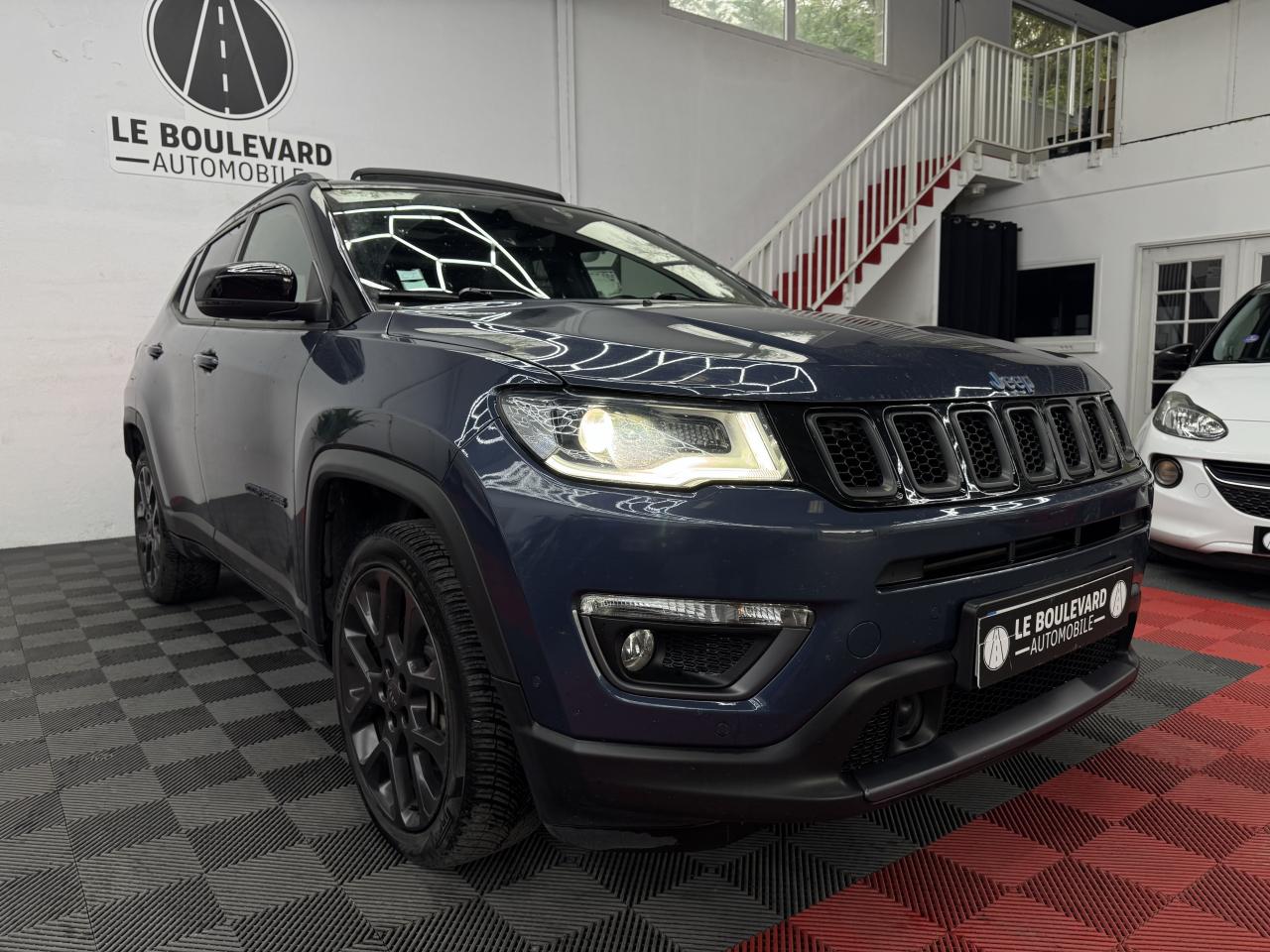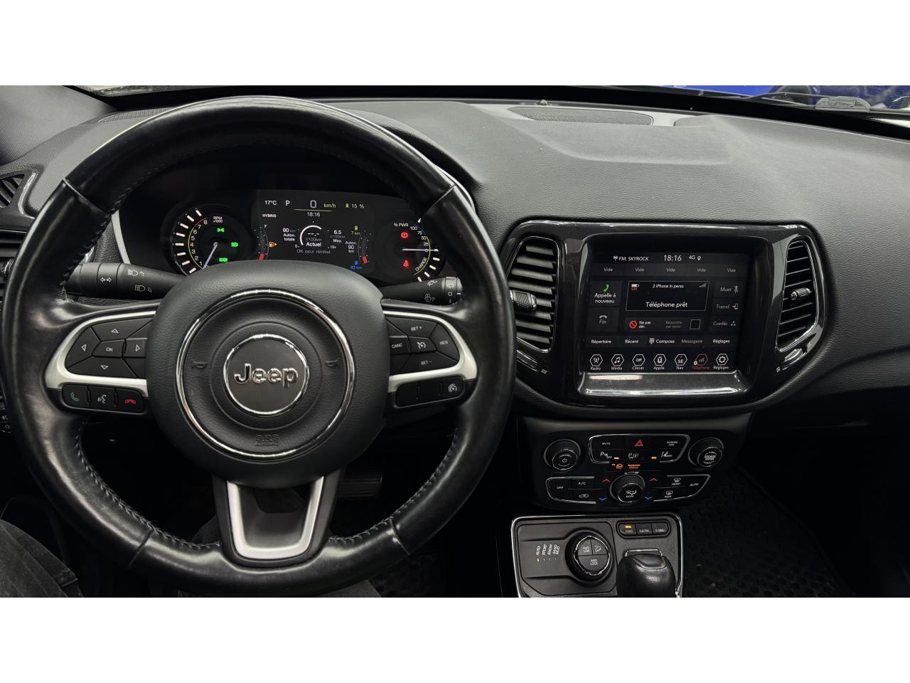 SIEGES CHAUFFANTAlarme volumétriqueAllume cigare et cendrierApple CarPlay / Google Android AutoBarres de toitCalandre noir avec cerclages d'ouïes Granite CrystalCaméra de recul Parkview avec affichage dynamiqueEnter-N-Go : système d'ouverture et de démarrage sans cléFeux arrière à signature LEDHayon électriqueJantes en alliage 19'' Granite CrystalKit “Fix&Go”Limiteur de vitesseModes EV : Hybride, Electrique, eSaveModule de connectique : Prise jack, Port USB 2.0 et lecteur de carte SDOuverture électrique de la trappe à carburantPrise 230V à l'arrièreRétroviseurs extérieurs électriques, dégivrants et rabattables électriquementSystème antipatinage 4 roues par action sur les freinsSystème de Navigation GPS Uconnect 3D avec écran tactile 8.4''Toit ouvrant CommandView panoramiqueTransmission intégrale eAWD avec Selec-Terrain et mode SportVolant gainé cuir