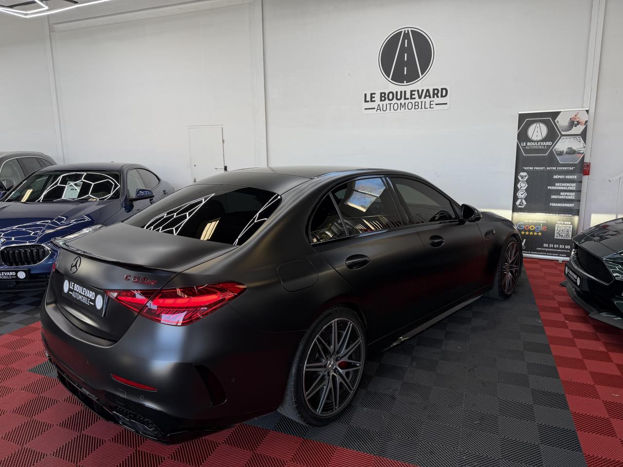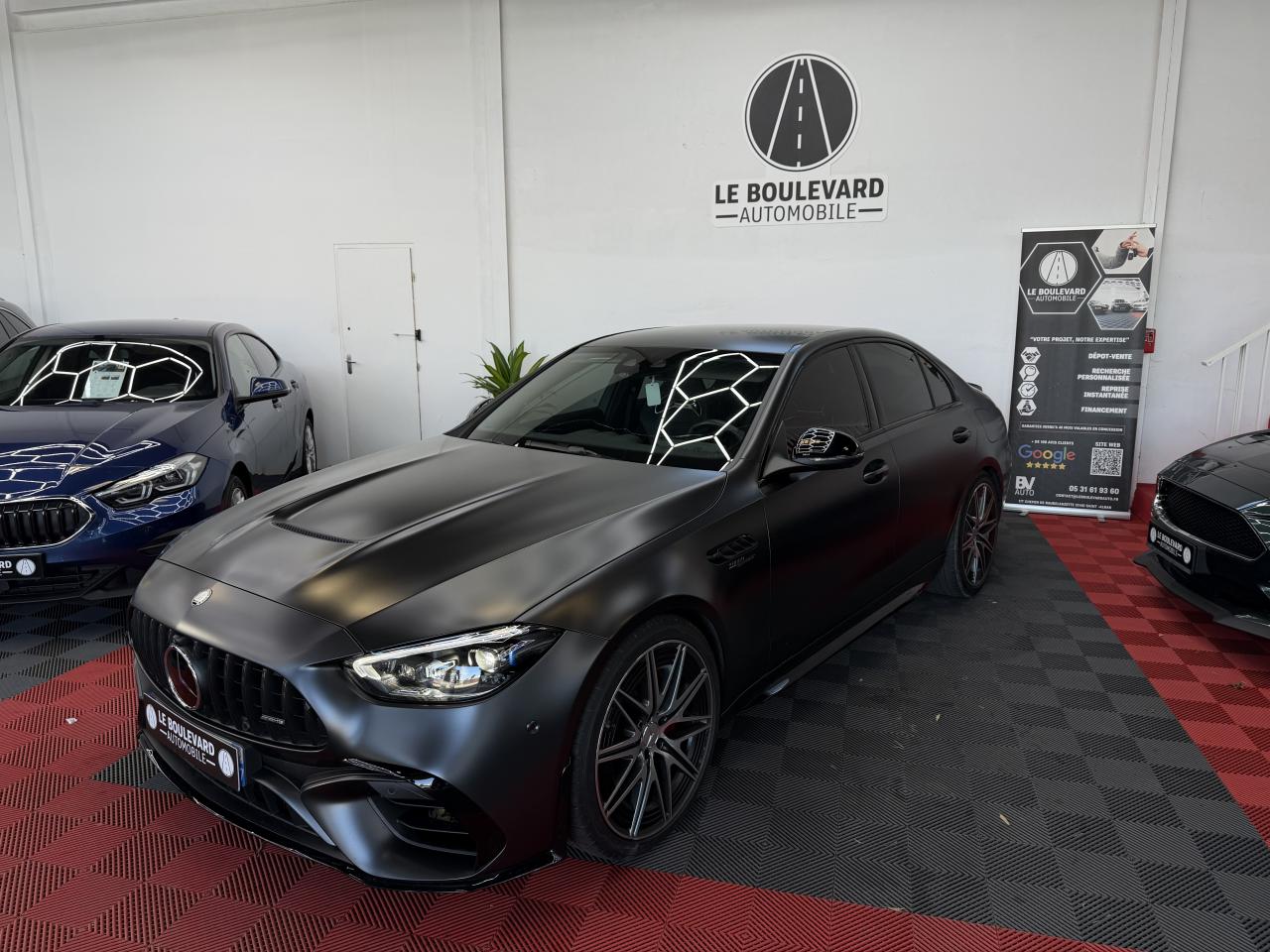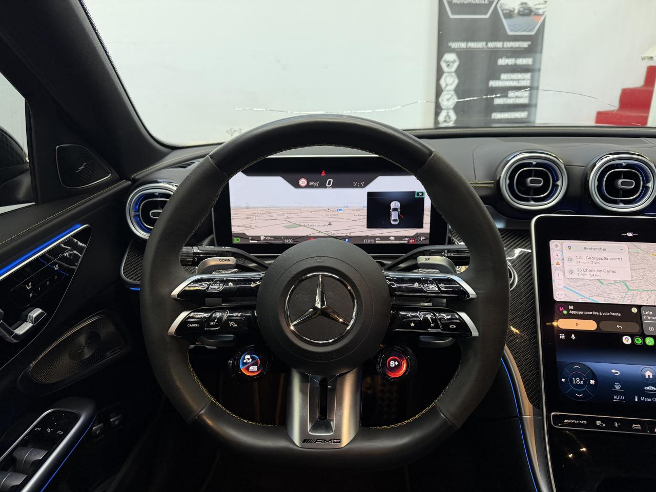 ABS (antiblocage de roues) et ASR (antipatinage)Accoudoir avant avec compartiment de rangementAccoudoir central arrière rabattable et deux porte-gobeletsADAPTIVE BRAKE avec fonction HOLD et aide au démarrage en côte, préremplissage et séchage des freins par freinage en cas de pluieAffichage du non bouclage des ceintures de sécurité aux places arrièreAffichage tête hauteAiles avant élargies avec inscription « TURBO E PERFORMANCE »AMG Real Performance SoundAssistant de limitation de vitesse par lecture des panneaux grâce à une caméraAttention Assist : système de détection de somnolenceAvertisseur d'angle mort avec avertisseur de sortie du véhicule à l'arrêtAvertisseur de franchissement de ligne actifBaguettes de seuil éclairées avec inscription AMGBoîte de vitesses automatique à 9 rapports SPEEDSHIFT MCT AMGBuses d’aération avec éléments chromés argentésCâble de charge pour boîtier mural et bornes de recharge publiques, 5m, droit, 22kWCâble de charge pour prise secteur, 5m, droitCalandre spécifique AMG avec baguettes verticales en chrome brillantCaméra derrière le pare-briseCapot moteur spécifique avec bossages et une grande sortie d'air centrale avec cacheChargeur embarqué courant alternatif (AC) 3,7 kWClignotants à commande confort par impulsionsClimatisation automatique THERMOTRONICConnexion Bluetooth pour téléphone portableContenus d'affichage spécifiques à Mercedes-AMG à l'écran conducteur et l'écran centralContrôle de pression des pneus ( TPMS )Déflecteur AMG sur le couvercle de coffre dans le ton carrosserieDésignation de type AMG avec inscription « AMG » à gauche et « GLC 63 » à droiteDésignation de type spécifique à Mercedes-AMG sur hayon arrièreDétecteur de luminositéDIGITAL LIGHT avec fonction ProjectionDirection paramétrique AMG à trois niveaux avec démultiplication variableDoubles sorties d'échappement trapézoïdales traitées en chrome brillant à gauche et à droiteEclairage d'ambiance (avec choix de 64 couleurs)Ecran conducteur LCD de 31,2 cm (12,3")Ecran média tactile haute résolution (1 624 x 1 728 pixels) de 30,2 cm (11,9'') avec lecteur d'empreinte digitaleESP (régulation de comportement dynamique) avec assistant de conduite dynamique en virageEssuie-glace à déclenchement automatiqueEtriers de frein avec monogramme AMG à l'avantFeux de stop adaptatifsFixation de siège enfant de type i-Size intégrée dans les coussins d’assise à l'arrière (places extérieures) et dispositif de courroies Top Tether pour les sièges enfantsFonction d'arrêt/redémarrage "Stop/Start ECO" avec commutateur de désactivation manuelleFonctionnalités élargies MBUXFrein de stationnement électriqueFrein multi-collisionFreinage d'urgence assisté actifGilet de sécurité pour le conducteurHabillages des bas de caisse AMGIntégration smartphoneJantes alliage AMG 50,8 cm (20") à 10 doubles branches peintes en noir et polies, à l'aérodynamique optimiséeJupe arrière AMG avec planche de diffuseur en noir brillant avec quatre ailettes de diffuseur et plaque en finition chrome matJupe avant AMG avec bordure centrale inférieure du pare-chocs avant finition noir brillant, grandes prises d'air pouvant se fermer, commandées en fonction des besoins, lamelles et ailettes en finition noir brillant sur les côtés et splitter avant chromé matLève-vitres électrique (x4) à commande séquentielle et dispositif anti-pincementLimiteur de vitesseMBUX Réalité augmentée pour la navigationMBUX système multimédiaModule d'entraînement électrique sur le train arrière : moteur électrique, boîte de vitesses à 2 rapports et différentiel électronique à glissement limitéModule de communication LTE pour l'utilisation des services Mercedes me connectNavigation MBUX PremiumPack Confort du coffrePack Confort KEYLESS-GOPack d'éclairage intérieurPack Driver AMGPack MémoiresPack RangementPack RétroviseursPack Stationnement avec caméras panoramiquesPack USBPalettes de changement de rapports au volantPARKTRONIC : système d'aide au stationnement (PTS)Pédalier sport AMG en acier inoxydable brossé, avec picots en caoutchouc noirsPeinture noirePlanche de bord et lignes de ceinture des portes en ARTICO noir avec surpiqûres contrastées gris magmaPneus étéPortes avec inserts décoratifs noirs brillants, bordure chromée argentée et commutateurs chromés argentésPré-équipement pour service de partage de clé (service gratuit pendant 3 ans après activation Mercedes me)Programme de conduite RACE DYNAMIC SELECT AMGRadio Numérique DABRecharge smartphone sans filReconnaissance des panneaux de signalisationRéservoir de 66LRoues arrières directrices avec angle de braquage jusqu'à un angle de 2,5°Sécurité enfant avec verrouillage manuel des portes arrière et électrique des vitres arrièreServices à distanceSièges avant chauffantsSilentblocs moteur dynamiques AMGSystème d'Appel d'Urgence Mercedes-BenzSystème de freinage composite hautes performances AMGSystème de sonorisation 3D Surround BurmesterSystème de stabilisation en cas de vent latéralTapis de sol AMG de couleur noireTempomat (Régulateur de vitesse)Toit ouvrant panoramique électrique en verreTouches AMG Drive Unit sur le volantTrain de roulement AMG RIDE CONTROL avec amortissement adaptatifTransmission intégrale AMG Performance 4MATIC+ avec répartition entièrement variable du coupleTurbocompresseur électriqueUnité de commande au toit en finition noir brillantVitres latérales arrière et lunette arrière en verre teinté foncé et athermiqueVolant Performance AMG en cuir Nappa/microfibre MICROCUT