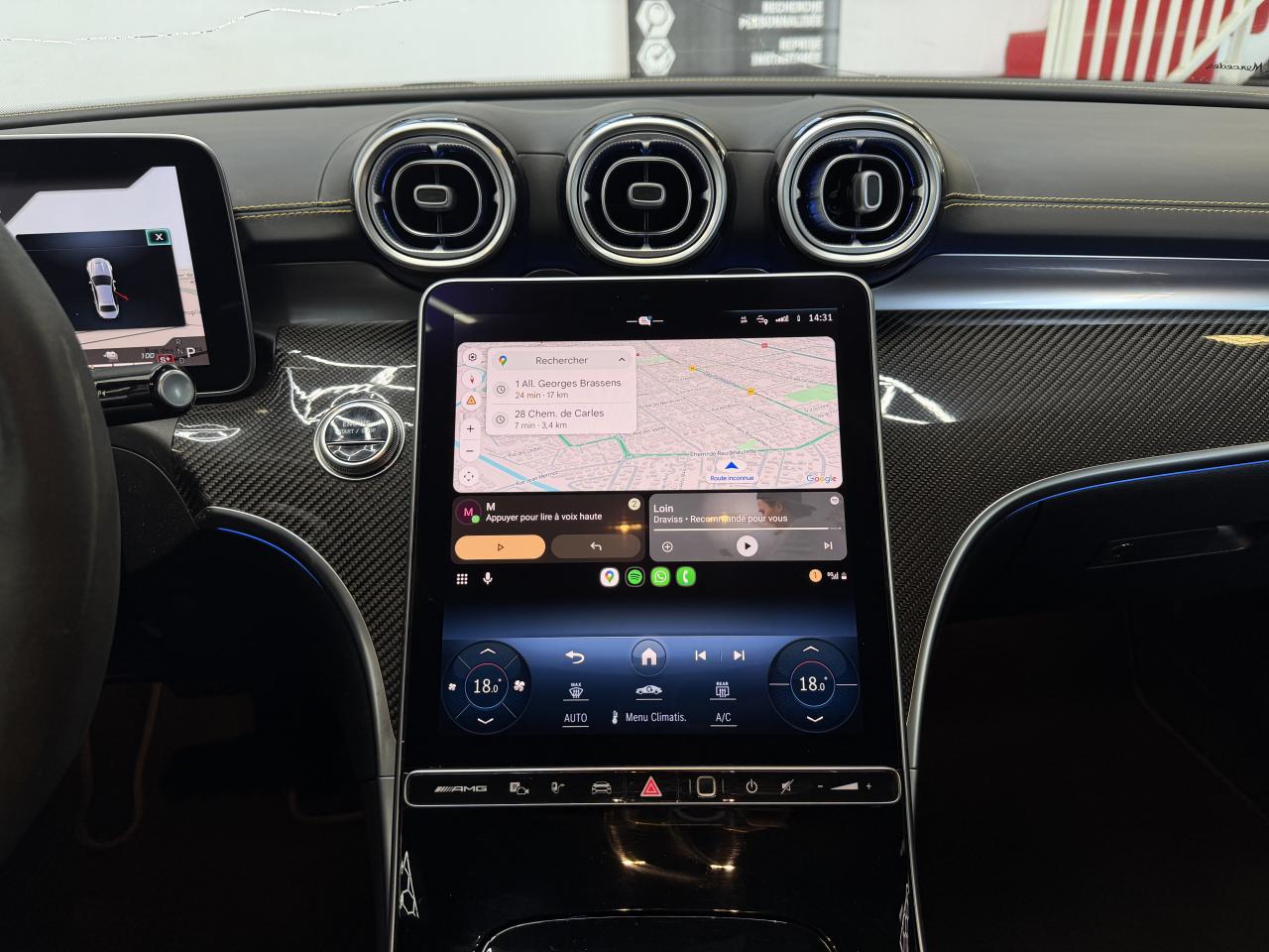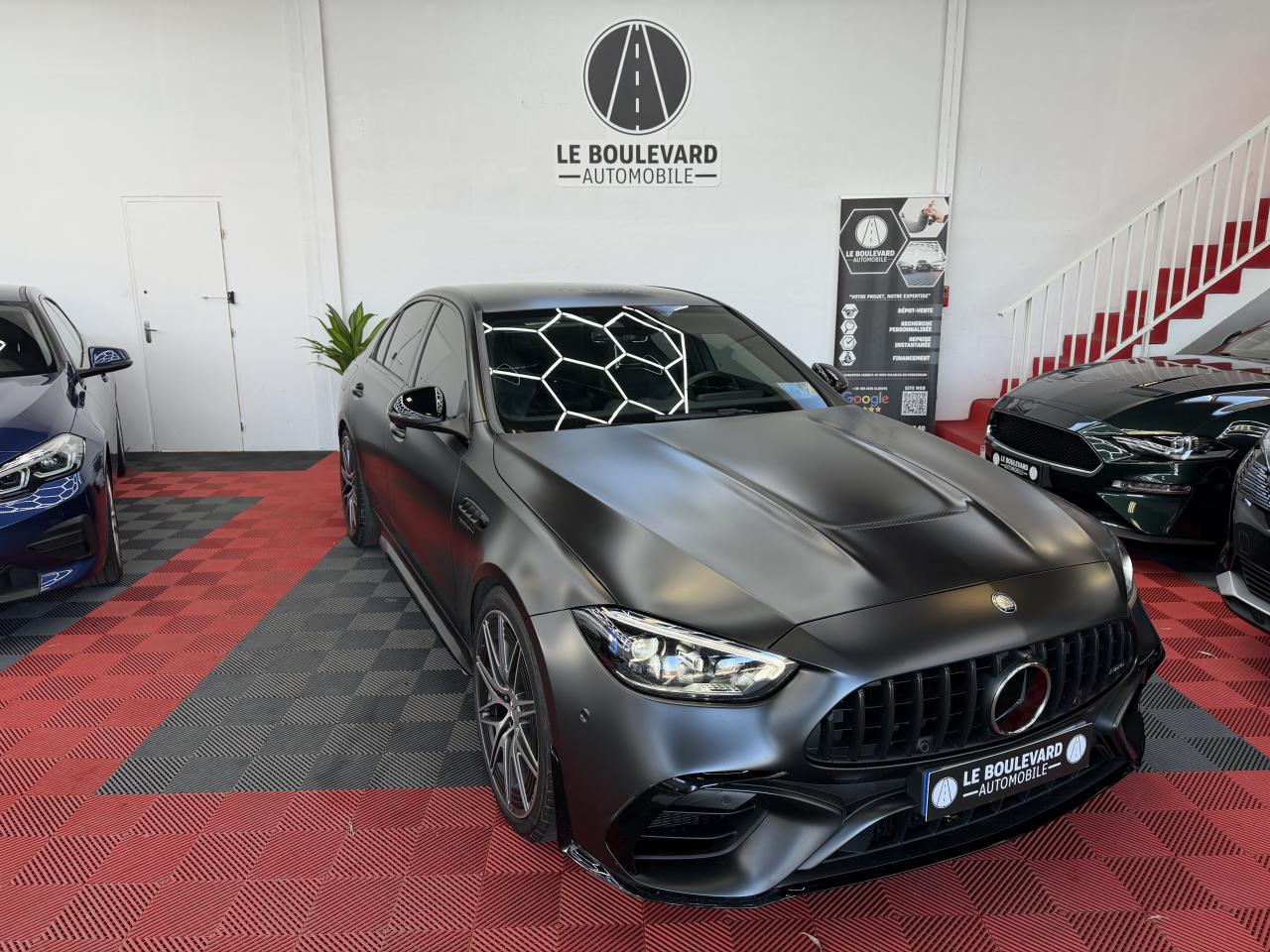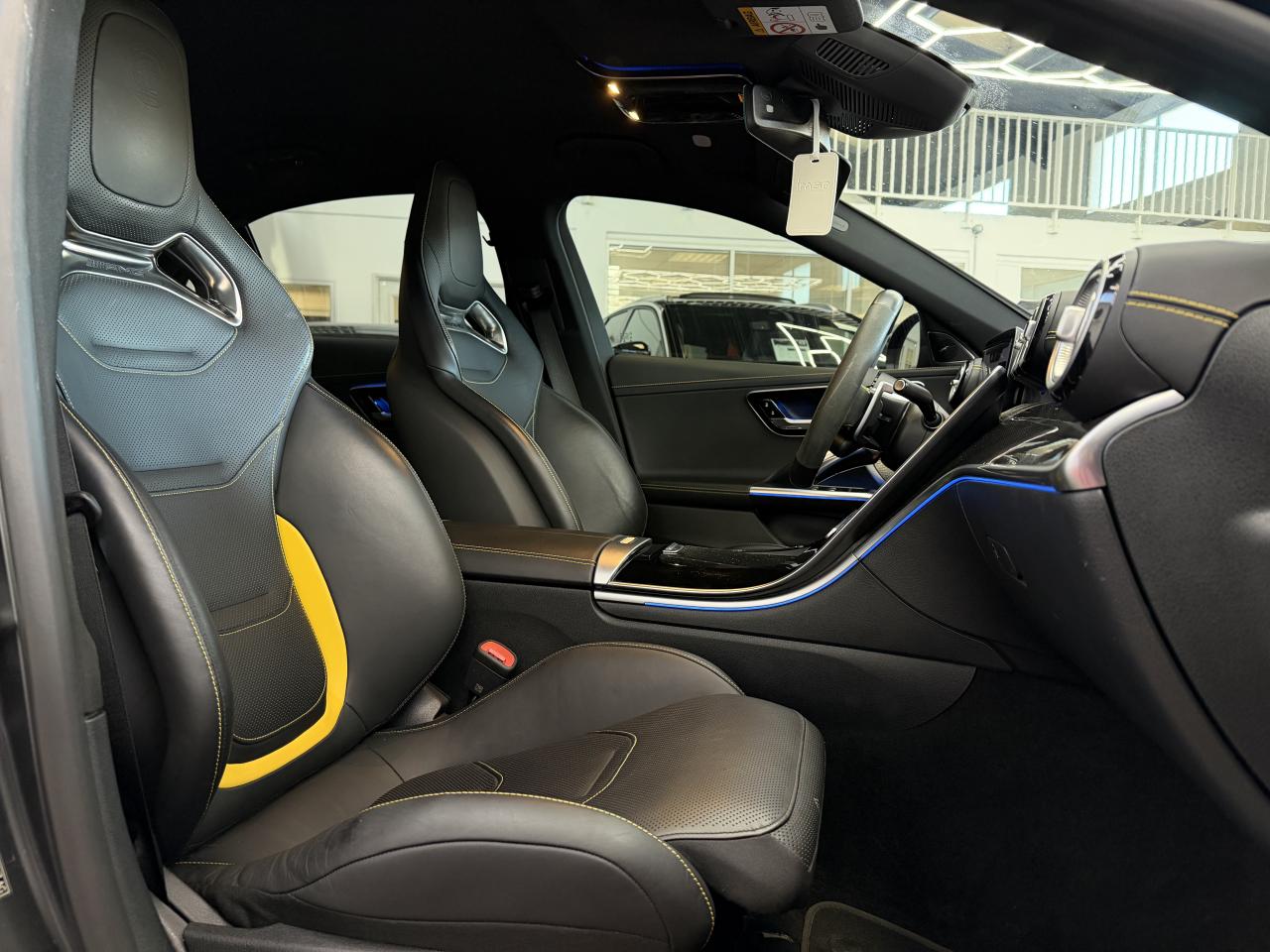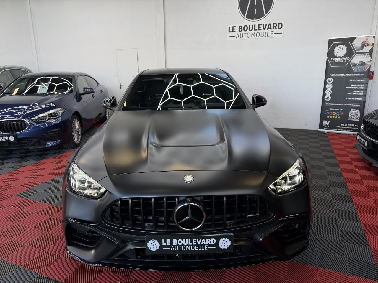 ABS (antiblocage de roues) et ASR (antipatinage)Accoudoir avant avec compartiment de rangementAccoudoir central arrière rabattable et deux porte-gobeletsADAPTIVE BRAKE avec fonction HOLD et aide au démarrage en côte, préremplissage et séchage des freins par freinage en cas de pluieAffichage du non bouclage des ceintures de sécurité aux places arrièreAffichage tête hauteAiles avant élargies avec inscription « TURBO E PERFORMANCE »AMG Real Performance SoundAssistant de limitation de vitesse par lecture des panneaux grâce à une caméraAttention Assist : système de détection de somnolenceAvertisseur d'angle mort avec avertisseur de sortie du véhicule à l'arrêtAvertisseur de franchissement de ligne actifBaguettes de seuil éclairées avec inscription AMGBoîte de vitesses automatique à 9 rapports SPEEDSHIFT MCT AMGBuses d’aération avec éléments chromés argentésCâble de charge pour boîtier mural et bornes de recharge publiques, 5m, droit, 22kWCâble de charge pour prise secteur, 5m, droitCalandre spécifique AMG avec baguettes verticales en chrome brillantCaméra derrière le pare-briseCapot moteur spécifique avec bossages et une grande sortie d'air centrale avec cacheChargeur embarqué courant alternatif (AC) 3,7 kWClignotants à commande confort par impulsionsClimatisation automatique THERMOTRONICConnexion Bluetooth pour téléphone portableContenus d'affichage spécifiques à Mercedes-AMG à l'écran conducteur et l'écran centralContrôle de pression des pneus ( TPMS )Déflecteur AMG sur le couvercle de coffre dans le ton carrosserieDésignation de type AMG avec inscription « AMG » à gauche et « GLC 63 » à droiteDésignation de type spécifique à Mercedes-AMG sur hayon arrièreDétecteur de luminositéDIGITAL LIGHT avec fonction ProjectionDirection paramétrique AMG à trois niveaux avec démultiplication variableDoubles sorties d'échappement trapézoïdales traitées en chrome brillant à gauche et à droiteEclairage d'ambiance (avec choix de 64 couleurs)Ecran conducteur LCD de 31,2 cm (12,3")Ecran média tactile haute résolution (1 624 x 1 728 pixels) de 30,2 cm (11,9'') avec lecteur d'empreinte digitaleESP (régulation de comportement dynamique) avec assistant de conduite dynamique en virageEssuie-glace à déclenchement automatiqueEtriers de frein avec monogramme AMG à l'avantFeux de stop adaptatifsFixation de siège enfant de type i-Size intégrée dans les coussins d’assise à l'arrière (places extérieures) et dispositif de courroies Top Tether pour les sièges enfantsFonction d'arrêt/redémarrage "Stop/Start ECO" avec commutateur de désactivation manuelleFonctionnalités élargies MBUXFrein de stationnement électriqueFrein multi-collisionFreinage d'urgence assisté actifGilet de sécurité pour le conducteurHabillages des bas de caisse AMGIntégration smartphoneJantes alliage AMG 50,8 cm (20") à 10 doubles branches peintes en noir et polies, à l'aérodynamique optimiséeJupe arrière AMG avec planche de diffuseur en noir brillant avec quatre ailettes de diffuseur et plaque en finition chrome matJupe avant AMG avec bordure centrale inférieure du pare-chocs avant finition noir brillant, grandes prises d'air pouvant se fermer, commandées en fonction des besoins, lamelles et ailettes en finition noir brillant sur les côtés et splitter avant chromé matLève-vitres électrique (x4) à commande séquentielle et dispositif anti-pincementLimiteur de vitesseMBUX Réalité augmentée pour la navigationMBUX système multimédiaModule d'entraînement électrique sur le train arrière : moteur électrique, boîte de vitesses à 2 rapports et différentiel électronique à glissement limitéModule de communication LTE pour l'utilisation des services Mercedes me connectNavigation MBUX PremiumPack Confort du coffrePack Confort KEYLESS-GOPack d'éclairage intérieurPack Driver AMGPack MémoiresPack RangementPack RétroviseursPack Stationnement avec caméras panoramiquesPack USBPalettes de changement de rapports au volantPARKTRONIC : système d'aide au stationnement (PTS)Pédalier sport AMG en acier inoxydable brossé, avec picots en caoutchouc noirsPeinture noirePlanche de bord et lignes de ceinture des portes en ARTICO noir avec surpiqûres contrastées gris magmaPneus étéPortes avec inserts décoratifs noirs brillants, bordure chromée argentée et commutateurs chromés argentésPré-équipement pour service de partage de clé (service gratuit pendant 3 ans après activation Mercedes me)Programme de conduite RACE DYNAMIC SELECT AMGRadio Numérique DABRecharge smartphone sans filReconnaissance des panneaux de signalisationRéservoir de 66LRoues arrières directrices avec angle de braquage jusqu'à un angle de 2,5°Sécurité enfant avec verrouillage manuel des portes arrière et électrique des vitres arrièreServices à distanceSièges avant chauffantsSilentblocs moteur dynamiques AMGSystème d'Appel d'Urgence Mercedes-BenzSystème de freinage composite hautes performances AMGSystème de sonorisation 3D Surround BurmesterSystème de stabilisation en cas de vent latéralTapis de sol AMG de couleur noireTempomat (Régulateur de vitesse)Toit ouvrant panoramique électrique en verreTouches AMG Drive Unit sur le volantTrain de roulement AMG RIDE CONTROL avec amortissement adaptatifTransmission intégrale AMG Performance 4MATIC+ avec répartition entièrement variable du coupleTurbocompresseur électriqueUnité de commande au toit en finition noir brillantVitres latérales arrière et lunette arrière en verre teinté foncé et athermiqueVolant Performance AMG en cuir Nappa/microfibre MICROCUT