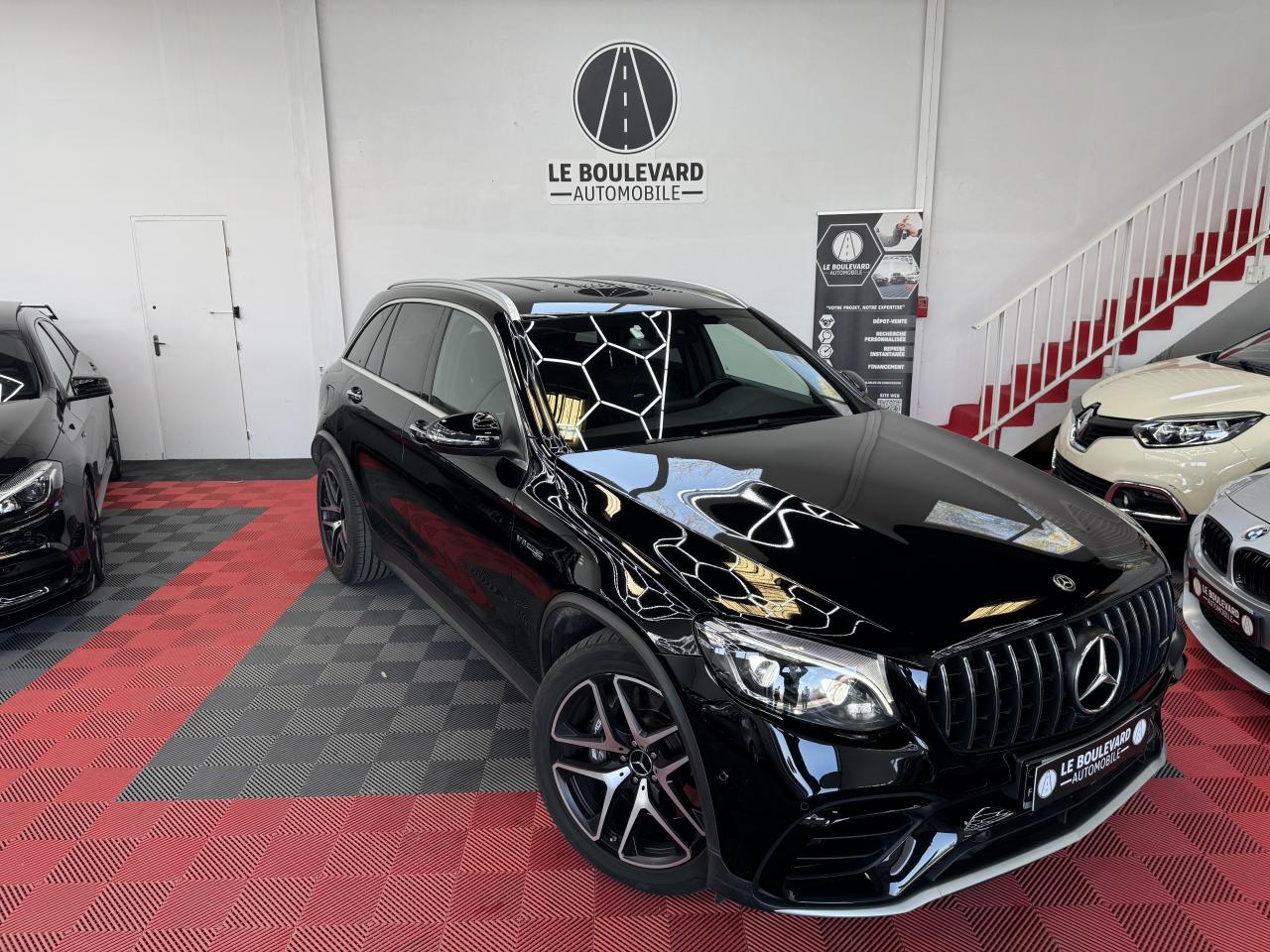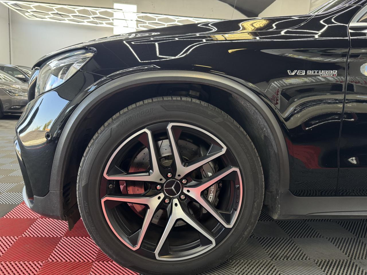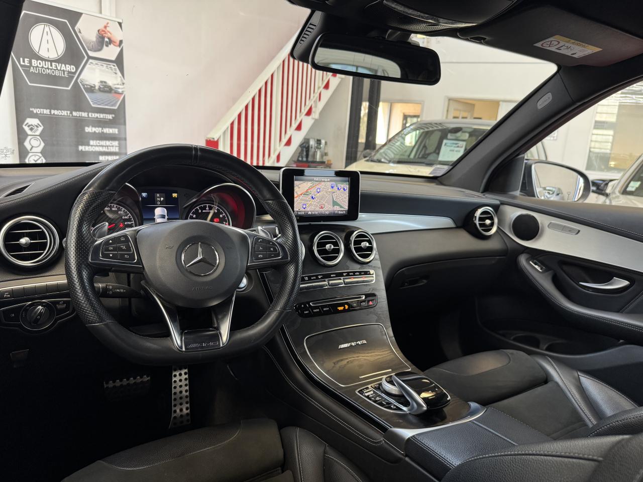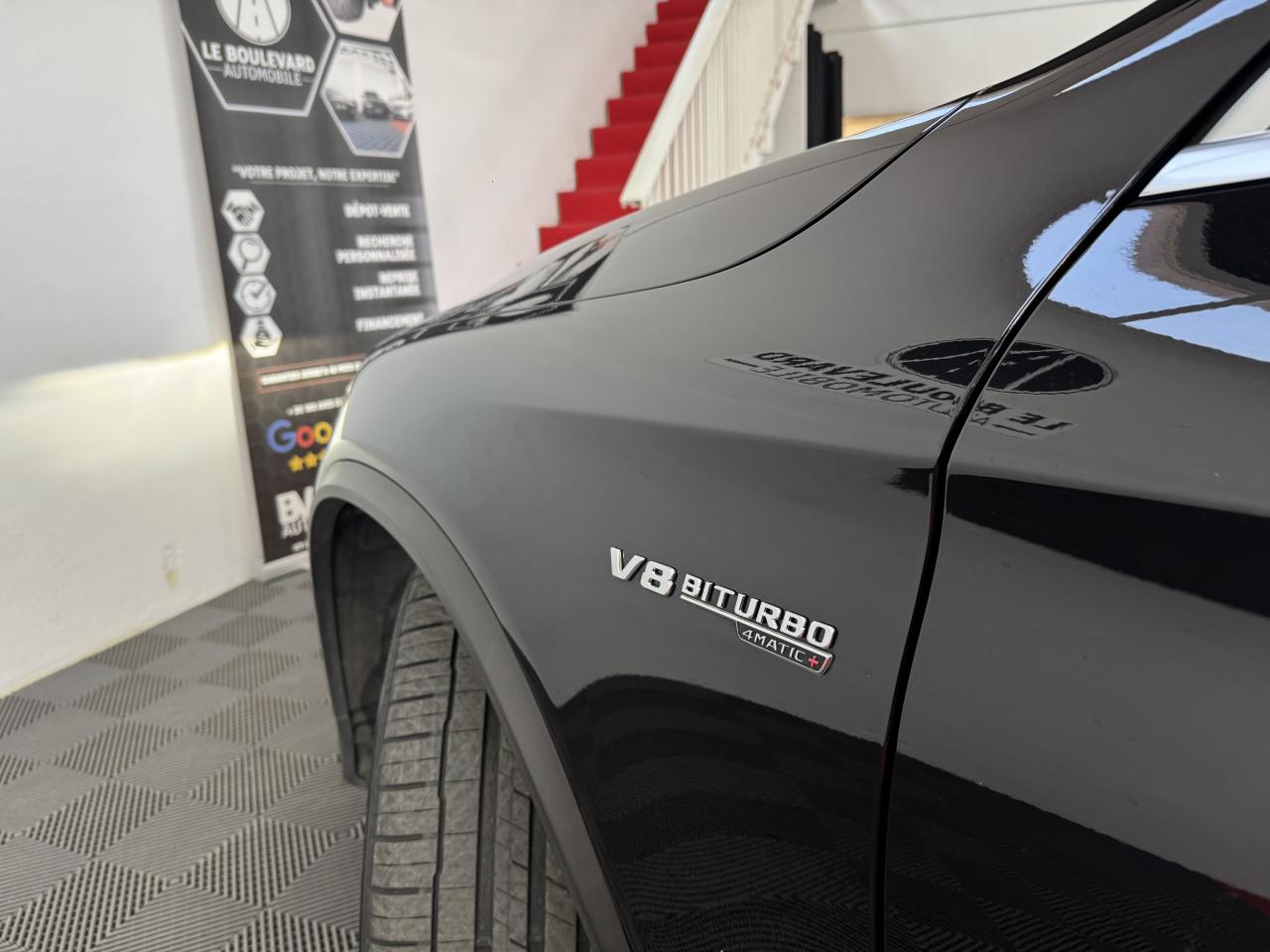 ABS (antiblocage de roues) et ASR (antipatinage) on et off-roadAccoudoir central avant avec vide-poches et prise 12VADAPTIVE BRAKE avec fonction HOLD et aide au démarrage en côteAIR BODY CONTROLAirbag genoux conducteurAirbags frontaux à 2 seuils de déclenchementAirbags latéraux avantAllumage automatique des projecteursAPA (Aide au Parking Active) : système d'aide au stationnement avec radars de proximité avant/arrièreAttention Assist : système de détection de somnolenceBaguettes de seuil AMG en acier inoxydable brosséBoîte à gants éclairéeBoîte de vitesses sport à 9 rapports SPEEDSHIFT MCT AMG avec fonction RACE STARTBuses d'aération chroméesCapot moteur actif pour la protection des piétonsCapteur de pluieCeinture de caisse en aluminium poliCeintures de sécurité 3 points avec rétracteur et limiteur d'effort x4Cerclages des bouches d'aération en chrome argentéCiel de pavillon noirClé design avec insert chroméClignotant avec commande confort par impulsionsClimatisation automatique THERMATIC à 2 zonesColonne de direction réglable mécaniquement en hauteur et en profondeurCOMAND OnlineCombiné d’instruments AMG avec écran multifonctionCompartiment pour lunettes de soleilConnexion Bluetooth pour téléphone portableContrôle de la pression des pneumatiquesDéflecteur AMG sur le toit dans le ton carrosserieDésignation de type AMG avec inscription « AMG » à gauche et « GLC 63 » à droiteDétecteur d'angle mort actifDétecteur d'occupation du siège passager avantDétection automatique de siège enfant intégré dans le siège passager avantDéverrouillage du coffre à distanceDifférentiel autobloquant AMG sur l'essieu arrière (mécanique)Direction assistée et asservie à la vitesseDirection paramétrique sport AMG à deux niveauxDYNAMIC SELECT AMG avec 5 modes de conduiteEclairage d'ambianceEncadrements des vitres en aluminium poliESP (régulation de comportement dynamique) avec ASR (antipatinage)Feu de brouillard AR à LEDFeux arrière à LEDFeux stop adaptatifs à diodes LEDFilet à bagages dans le coffreFonction d'arrêt/redémarrage "Stop/Start ECO" avec commutateur de désactivation manuelleFrein de parking électriqueFreinage actif d'urgenceGrille de calandre Panamericana AMGHayon EASY-PACK à ouverture/fermeture automatiqueIndicateur de température extérieureIndicateur dynamique de maintenance (ASSYST)Insert chromé dans la console centraleInserts chromés autour du combiné d'instrumentsInserts décoratifs en aluminium clair à stries longitudinalesIntelligent Light System (ILS) à LEDInterface média USB dans l'accoudoir central avant (2 ports USB)ISOFIX : fixations des sièges-enfants arrière (places extérieures)Jantes alliage AMG 48 cm (19’’) à 10 branches, finition gris titane/naturelKEYLESS-GO : système de démarrage sans cléKit anti-crevaison TIREFITKit carrosserie AMGLève-vitres électrique (x4) à commande séquentielle et dispositif anti-pincementModule de communication LTE pour l'utilisation des services Mercedes me connectMonogramme « V8 BITURBO 4MATIC+ » sur les ailes avantNavigateur Internet sur l'écran centralOrdinateur de bordPack d'éclairage intérieurPare-soleil avec miroirs de courtoisie éclairésPartie supérieur de la planche de bord en similicuir ARTICO noirPédalier sport en acier inoxydable brossé avec picots en caoutchoucPilote automatique de stationnement avec caméras 360°Pneus étéPoignée de plancher de chargement en chromeProjecteurs hautes performances à technologie LEDProtections anti-encastrement design chromées avant et arrièreRadio Audio 20 avec écran couleur 17,78 cm (7") haute résolution,double tuner et lecteur CD compatible MP3/WMA/WAV/AACRampes de toit en aluminium poliRemote Online : Géolocalisation, localisation et repérage du véhicule, vérification à distance de l'état des systèmes du véhicule et programmation du chauffage auxiliaireRétroviseurs extérieurs électriques chauffants et asphériques avec rappels de clignotant intégrésRétroviseurs intérieur et extérieur gauche jour/nuit automatiques et rétroviseurs extérieurs rabattables électriquementSécurité enfant avec verrouillage manuel des portes arrière et électrique des vitres arrièreSièges avant chauffantsSièges avant chauffants et électriques avec fonction MémoiresSièges sport design spécifique AMG, avec garnitures en cuir Nappa noirSystème d'échappement sport AMG avec deux doubles sorties chroméesSystème de freinage haute performance AMGTapis de sol en velours AMGTEMPOMAT (régulateur de vitesse) et SPEEDTRONIC (limiteur de vitesse)Toit ouvrant panoramique électrique en verreTOUCHPAD : pavé tactile permettant la navigation dans les menus audio, téléphone et média sur l'écran couleur 17,78 cm (7")Train de roulement sport AMG basé sur le AIR BODY CONTROLTransmission intégrale AMG Performance 4MATIC+ avec répartition entièrement variable du coupleVerrouillage centralisé à télécommande avec fonction de verrouillage automatiqueVitres latérales arrière et lunette arrière teintées foncéesVolant Performance AMG 3 branches en cuir Nappa noir