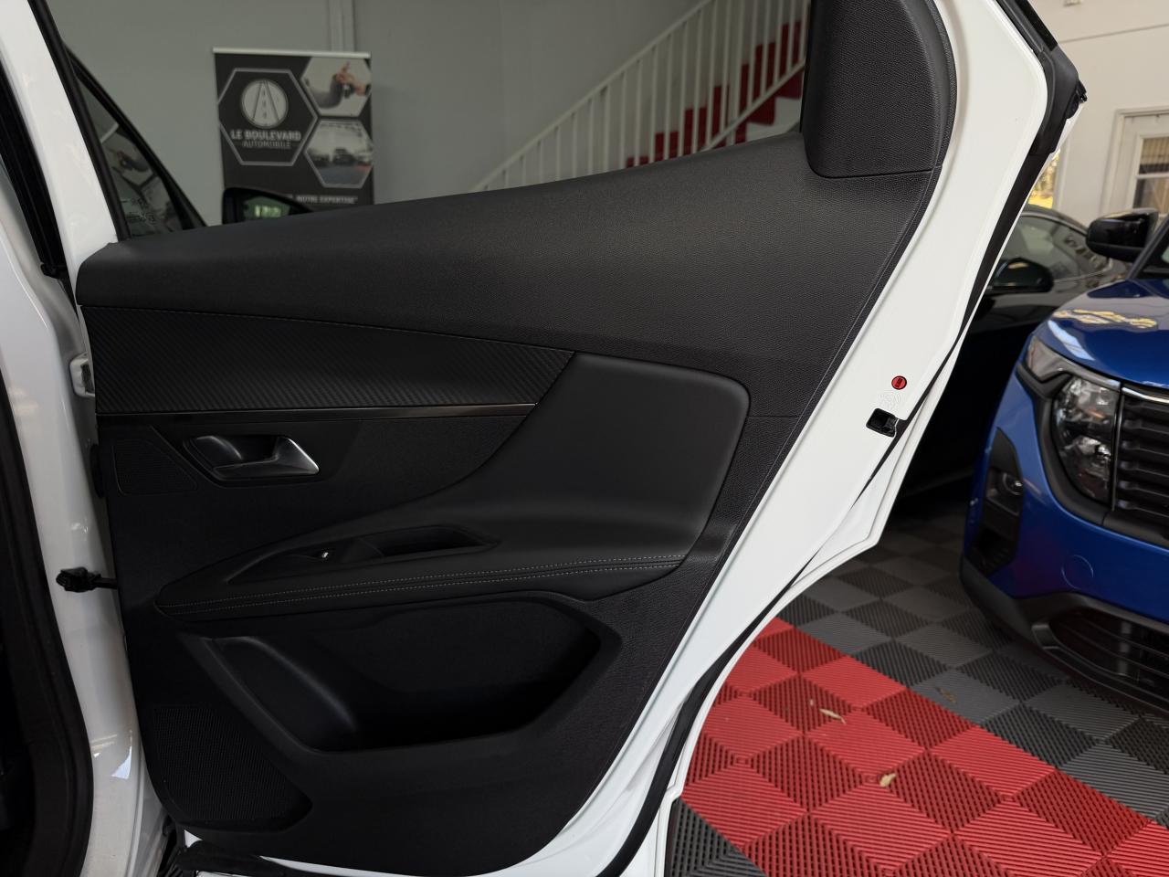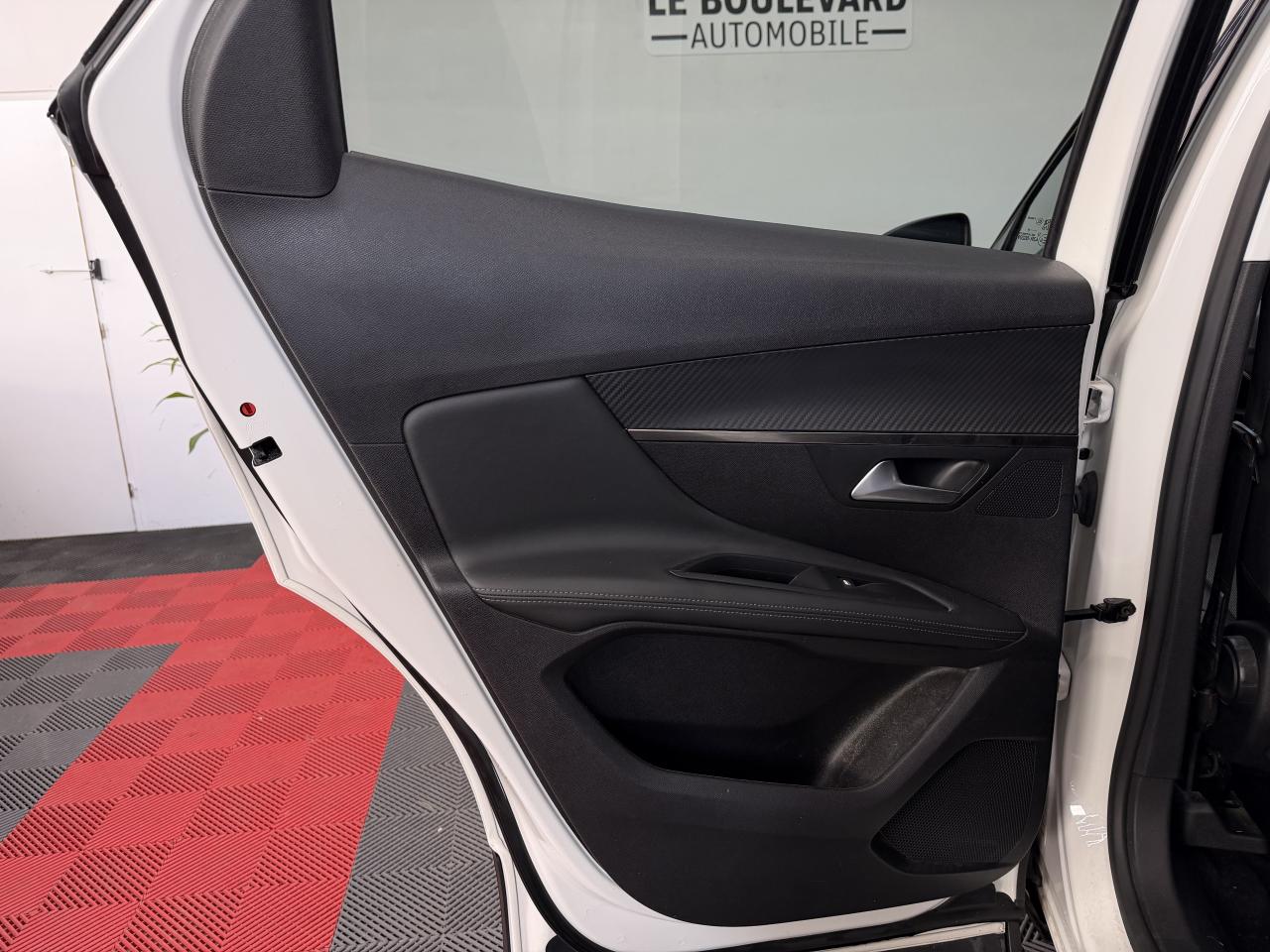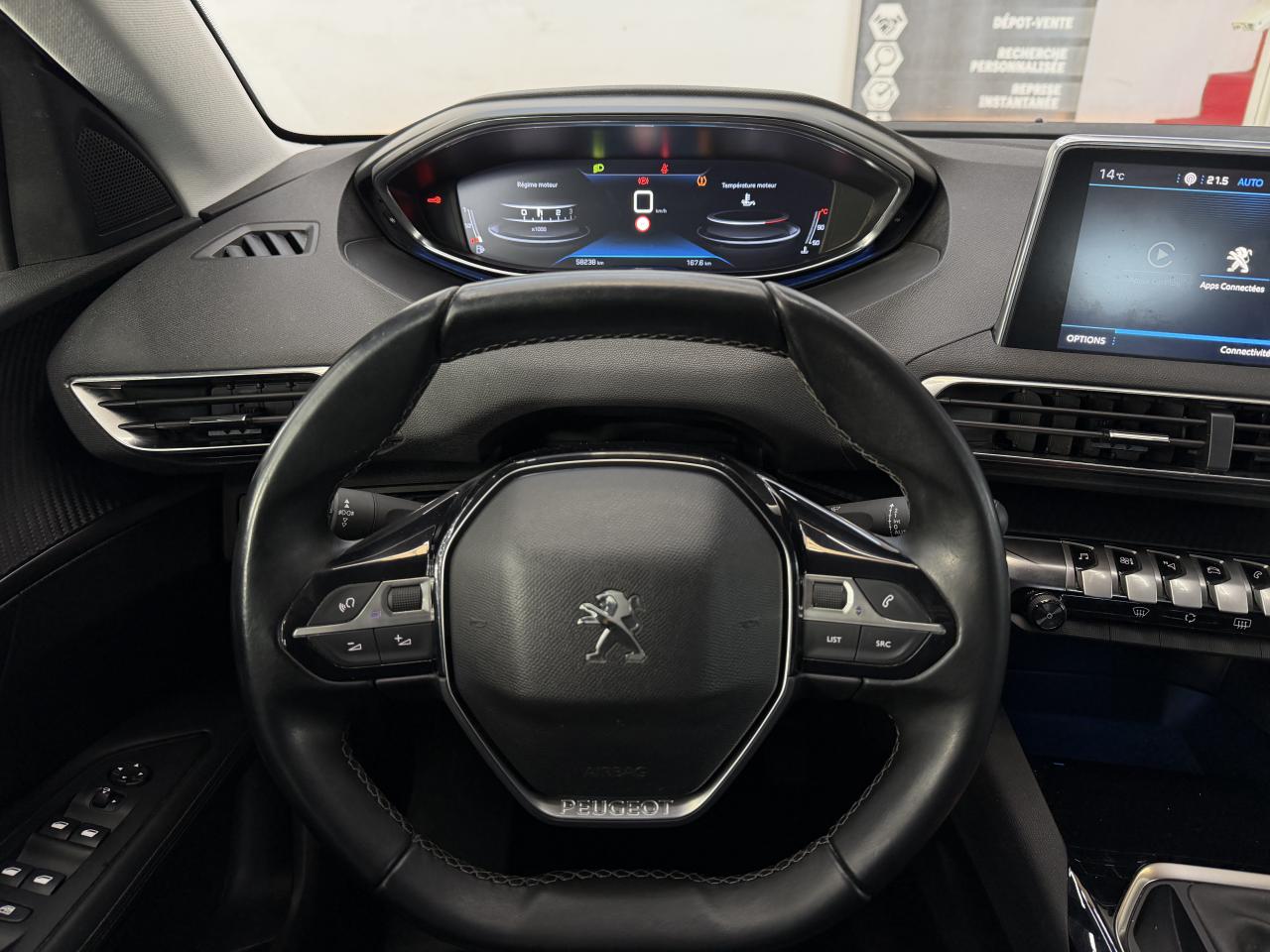 2 spots de lecture à l'arrièreABS avec répartiteur électronique de freinage (REF) et aide au freinage d'urgence (AFU)Accès et démarrage mains-libresAccoudoir central avant à ouverture papillon, avec compartiment de rangement éclairé et réfrigérableAide graphique et sonore au stationnement arrièreAir conditionné automatique bi-zone avec aérateurs aux places arrièreCommande de verrouillage à distance (deux plips)Contrôle dynamique de stabilité CDS avec antipatinage électronique ASRDécors de planche de bord et panneaux de portes en maille 'Brumeo'Décors intérieurs (baguettes de planche de bord et panneaux de portes, enjoliveur de console) chromésDétection de sous-gonflage indirecteDirection assistée électrique, avec colonne de direction réglable en hauteur et profondeur (mécanique)Eclairage intérieur à LED : plafonniersEssuie-glace arrière avec déclenchement automatique en marche arrièreEssuie-vitre avant avec système de lavage 'Magic Wash'Fixations pour trois sièges enfants suivant norme ISOFIX aux places passager avant et latérales arrièreFonction Mirror ScreenFrein de stationnement électrique avec aide au démarrage en penteIndicateur de rapportInserts d'ailes avant chromésJantes alliage 18" 'Detroit' bi-ton diamantéesLève-vitres électriques avant et arrière, séquentiels et antipincementLunette arrière chauffante avec antennes sérigraphiéesMiroirs de courtoisie éclairésPack City 1Pack Eclairage d'ambiancePack Safety PlusPack VisibilitéPassages de roues rapportés noirsPeugeot Connect : Navigation 3D connectée avec reconnaissance vocale + PEUGEOT Connect SOS & AssistancePeugeot i-Cockpit combiné tête haute numérique reconfigurable, écran tactile capacitif 8" et volant compact multi-fonctionsPlancher de coffre deux positionsPrise 12V (x3) : à l'avant, à l'arrière et dans le coffrePrise USBProjecteurs antibrouillard halogènes avec enjoliveurs chromésProjecteurs halogènes à l’avant avec feux diurnes à LED intégrés dans le bloc optiqueRadio 6 HP, bi-tuner compatible MP3 et connectivité Bluetooth (audio streaming, kit mains libres), avec commandes au volant, écran tactile capacitif 8"Radio numérique terrestreReconnaissance des panneaux de vitesse et préconisationRégulateur et limiteur de vitesseRétroviseurs extérieur électriques et dégivrantsRétroviseurs extérieurs couleur carrosserieRétroviseurs extérieurs rabattables électriquement avec éclairage d'approche à LEDSabot de pare-choc avant gris métalliséSécurité enfant électrique des vitres arrièreSellerie TEP & Tissu 'Piedimonte' ou 'Evron'Siège conducteur à réglage lombaireSiège conducteur réglage en hauteurSiège passager à réglage manuel en hauteurSiège passager avant avec mise en tabletteToggle Switches' chromés (touches 'piano' d'activation des fonctions de l'écran tactile)Verrouillage automatique de tous les ouvrants en roulantVitres latérales et lunette arrière surteintéesVolant cuir pleine fleur