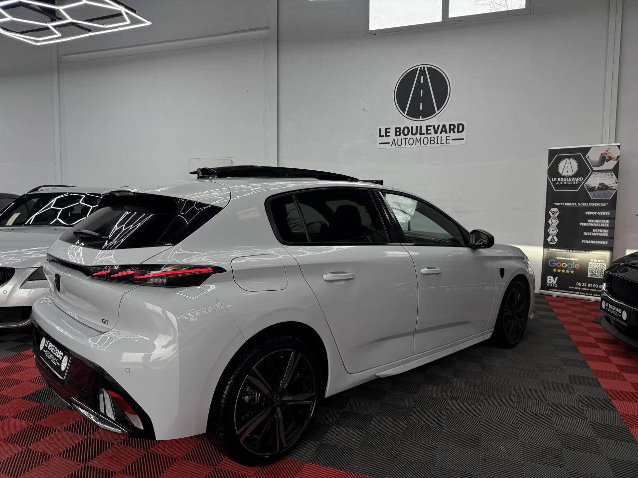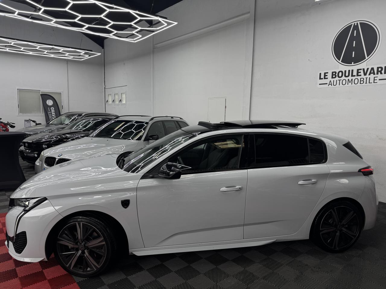 2 Prises USB C à l'arrière2 Prises USB C à l'avant2 télécommandes 3 boutons4 poignées de maintienAccès et démarrage mains-libresAccoudoir central avant avec rangementAide au stationnement arrièreAide au stationnement avantAir conditionné à régulation automatique 2 zonesAir Quality System AQS (mise en marche automatique du recyclage de l'air de la climatisation)Airbags frontaux conducteur et passager adaptatifs (passager neutralisable), latéraux avant et rideaux avant et arrièreAlerte active de franchissement involontaire de ligne et bas côtéAlerte attention conducteurAllumage automatique des projecteursBandeau entre feux arrière noir brillantBanquette arrière rabattable 1/3-2/3Boitiers de rétroviseurs extérieurs noir brillantCalandre avant spécifique Noir verni avec inserts chromés et écopes Noir BrillantCaméra de reculCeintures de sécurité arrière trois points à enrouleur (x3), avec prétensionneurs et limiteurs d'effort aux places latéralesCeintures de sécurité AV réglables en hauteur : 3 points à enrouleurs avec prétensionneur et limiteur effort intégréCiel de pavillon noirCommutation automatique des feux de routeDécor Aluminium sur panneaux de porteDétection de sous-gonflage des pneumatiquesDiffuseurs d'air aux places arrièreDirection assistée électriqueDriver Sport Pack : personnalisation du combiné spécifique, sonorité du moteur amplifiée et plus sportive ( désactivable)Elargisseurs de pare chocs avant et de bas de caisse latérauxESP (contrôle dynamique de stabilité ) + aide au démarrage en penteEssuie-glace à déclenchement automatiqueFeux arrière spécifiques avec allumage dynamique griffe à griffeFeux diurnes à LED avec signature lumineuseFixations Isofix (aux places latérales arrière)Fonction Mirror Screen (Apple Carplay / Android Auto ) sans filFrein de parking électriqueJantes alliage 18'' Kamakura diamantéesJupe arrière en noir brillant avec jonc chroméKit de dépannage pneumatiqueLécheurs de vitres noir brillantLève-vitres électriques arrière à fonctions séquentielle et anti-pincementLève-vitres électriques avant à commande séquentielle et anti-pincementLimiteur de vitesseModes de conduite Eco / SportMonogrammes latéraux emblème LionNavigation connectée avec écran central tactile 10'' et écran avec i Toggles virtuels personnalisablesPack Drive AssistPack Safety PlusPare brise teinté acoustiquePédaliers Sport et repose-pied en AluminiumPeinture métallisée Vert OlivinePeugeot Connect SOS & AssistancePeugeot i Cockpit 3D avec combiné d'instrumentation numérique personnalisablePlanche de bord avec jonc transversal peint, décor Alu et surpiqûres VertPrise 12V à l'avantProjecteurs Matrix LEDReconnaissance étendue des panneaux de circulationReconnaissance vocale en langage naturelRéglage lombaire conducteurRétroviseur intérieur électrochrome sans contourRétroviseurs extérieurs électriques avec clignotants à LED intégrés, dégivrants et rabattables électriquementSellerie tri matières tissu / TEP / New BelomkaSeuils de portes avant en aluminiumSièges conducteur et passager réglables en hauteurSmart Multidrive : personnalisation du combiné et éclairage d'ambiance LED intérieur associés aux modes de conduiteSurtapis aux places avant et arrièreTrappe à skisVitres latérales et lunette arrière surteintéesVolant à réglage manuel en hauteur et en profondeurVolant cuir