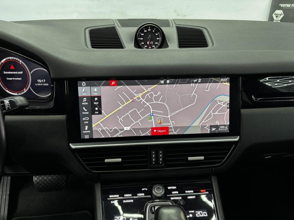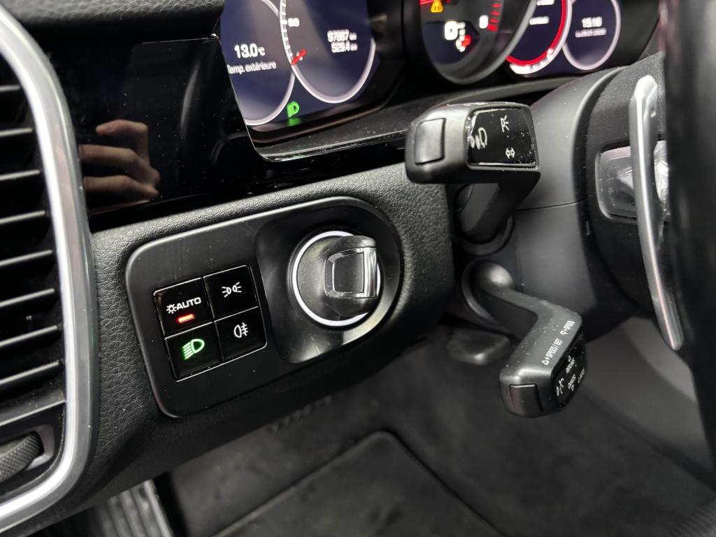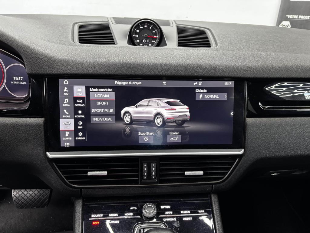 2 ports USB de chargement dans la console centrale arrière2 ports USB de chargement et de connexion dans le coffre de rangement de la console centrale avant2 prises d'alimentation 12 V (console centrale et boite à gants)2 sorties d’échappement simples Acier brossé, sur les côtés droit et gaucheAccoudoir central AR avec 2 porte-gobelets, réglage longitudinalAir Curtains dans les passages de rouesAirbag genoux côté conducteur et passagerAirbags grand volume pour le conducteur et le passagerAirbags latéraux avant (siège avant)Airbags rideauxAlarme et double verrouillageAllumage automatique des feux en cas d'ouverture/fermeture du véhiculeApple CarPlayAssistance à la descente (Porsche Hill Control, PHC)Assistance parking avant et arrière avec caméra de reculAvertisseur de freinage d'urgenceBac de rangement dans la console centraleBaguettes de seuil de porte en Acier spécial avec monogramme du modèle à l’avant et à l'arrière : «Cayenne»Batterie allégéeBecquet arrière avec troisième feu de stop à LEDBecquet de toit arrière de couleur carrosserieBloc moteur en aluminiumBlocs optiques avant avec feux de position et clignotants à conducteurs de lumière à technologie LEDBoîte à gants réfrigéréeBoîte de vitesse Tiptronic S 8 rapportsBouclier avant avec prises d’air de refroidissement intégréesCapot avant actifCapteur de pluieCapteur de retournementCarrosserie de conception allégée hybride entièrement galvanisée alliant Acier et AluminiumCarrosserie élargie à l'arrièreCarrosserie hybride en aluminium (capot moteur, hayon, portières et ailes)Ceintures de sécurité automatiques à 3 points avec prétensionneurs pyrotechniques à l'avant et à l'arrière, et limiteur d'effort à l'avantChâssis avec suspension à ressort hélicoïdauxCiel de toit en tissuClimatisation automatique avec réglage individuel de la température pour le conducteur et le passager, commande automatique du recyclage de l’air avec capteur de qualité de l’air et réglage individuel du débit d’air côtés conducteur eCombiné d’instruments avec 2 écrans haute résolutionCompte-tours analogique central avec fond de compteur NoirConcept d’éclairage de l’habitacle à LED : temporisation d’arrêt, éclairage bas d’habitacle avant et arrière, éclairage du cendrier, de la boîte à gants, du démarreurConnect Plus avec module de navigation en ligne, module téléphone LTE avec lecteur de carte SIM et accès Internet sans fil ainsi que Porsche Car Connect incluant de nombreux services Porsche ConnectContrôle de pression des pneus ( TPMS )Contrôle stabilité remorque et mode PSM SPORTContrôle vocalCouvre-bagages souple enroulableCrochet porte-vêtement sur les montants latéraux (gauche/droite)Culasse en aluminiumDéflecteurs (Airblades) avec entrées d’air latéralesDégivrage de lunette arrière avec arrêt automatiqueDémarrage sans cléDétecteur d'humiditéDiamètre des disques de frein 350 mm à l'avant, 330 mm à l'arrièreDisques de freins avant et arrière ventilésEclairage d'alentourEnjoliveurs de roues avec écusson Porsche en couleurEntourage des vitres en finition noire brillanteEssieu arrière multibras en aluminiumEssieu avant multibras AluminiumEssuie-glace avant à 2 vitesses avec balayage intermittentEtriers de frein couleur noireEtriers de frein monobloc en aluminium à 4 pistons à l'avant et 2 pistons à l'arrièreFeux arrière à LED avec graphisme tridimensionnel, avec feux stop intégrés 4 points et bandeau lumineuxFeux de jours à DEL 4 pointsFiltre à particulesFonction Auto-HoldFonction Stop-Start automatique et mode CroisièreFrein de parking électriqueFrein multi-collisionHayon automatiqueInjection directe d’essence (Direct Fuel Injection, DFI) avec position centrale des injecteursInserts des lamelles des entrées d’air en Noir (finition brillante)Intérieur partiel Cuir dans les teintes de série, sièges Cuir partiel estampéJantes Cayenne Design 20 poucesKit de réparation avec compresseur électriqueLarge soubassement caréné aérodynamiqueLimiteur de vitesseMiroirs de courtoisie éclairés conducteur et passagerMode Individual pour la sélection de réglages sportifs personnalisés du véhiculeMode SPORT PLUS avec réglage axé sur les performances pour le moteur, la boîte de vitesse et le châssisMonogramme du modèle sur le hayon arrière, en couleur ArgentPack intérieur Noir, finition brillantePack Sport ChronoParamètres de personnalisation du conducteurPare-chocs constitué de traverses haute résistance et de 2 éléments de déformation, comportant chacun 2 logements taraudésPhares à LEDPoignées de portes couleur carrosseriePorsche Active Aerodynamics (PAA) avec becquet de toit à déploiement adaptatifPorsche Active Suspension Management (PASM)Porsche Communication Management (PCM) avec module de navigationPorsche Traction Management (PTM) : transmission intégrale dynamique avec différentiel central multidisque électronique, différentiel de freinage automatique (ABD), système de régulation antipatinage (ASR)Porte-bouteilles dans les contre-portes avant et arrièrePorte-cartesPorte-gobelets doubles à diamètre variable à l'avant et à l'arrièrePré-équipement attelagePré-équipement pour le montage d'un système de transport sur toitPrise 12V intégrée au panneau latéral du coffreProtection anti-encastrement latérale dans les portièresRangement sous les sièges avantRefroidissement de l'air de suralimentationRefroidissement par eau avec module de gestion thermiqueRégulateur de châssis intégré Porsche 4D Chassis ControlRégulateur de vitesseRenvois de ceinture des sièges conducteur et passager avant réglables manuellement en hauteurRétroviseur intérieur jour/nuit manuelRétroviseurs extérieurs électriques dégivrants et rabattables électriquement, asphérique côté conducteurServotronic PlusSièges arrière rabattables 40/20/40Sièges avant sport avec appuis-têtes intégrésSièg