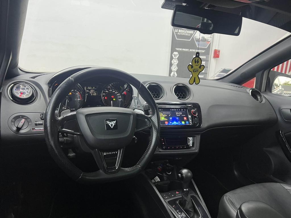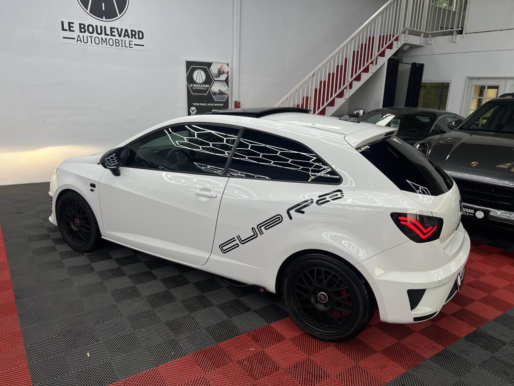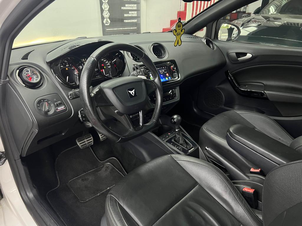 2 appuis-tête AR réglables en hauteur2 Fixations ISOFIX + Top-Tether à l'arrière pour ancrage de sièges enfant3 ceintures de sécurité arrière à 3 points4 freins à disquesABS électronique (système antiblocage des roues)Air conditionné automatique Climatronic (inclut boîte à gants réfrigérée)Airbags SEAT conducteur, passager avantAirbags SEAT latéraux avant grand volume pour tête et thoraxAppuis-tête avant pleins réglables en hauteurAutoradio CD MP3 + Combiné USB/ prise Aux-in + Satellite de commande sur colonne de direction + Système Bluetooth pour téléphone portableAutoradio CD MP3 + Combiné USB/Prise aux-in+Satellite de commande sur colonne de directionBanquette arrière rabattable en 2 parties asymétriquesBatterie dans le coffreBecquet de toit arrière intégrant le 3ème feu stopCeintures de sécurité avant avec prétensionneurs électriques + alarme d'oubli de verrouillageChâssis sport spécifiqueCompte tour électroniqueCompteur kilométrique journalierConsole centrale avec 2 porte-gobelets AV + 1 ArrièreDéconnection de l'airbag passagerDégivrage de la lunette arrièreDirection assistée électro-hydrauliqueEclairage du coffreESP sans XDS ni EBA ni aide au démarrage en côte ni capteur de chute de pression des pneusFiltre à pollenGrand Toit transparent entrebaillable électriquement, avec vélumIndicateur de température extérieureJantes alliage léger "SIRA Argent" 6jx17" + pneus 215/40 R 17Kit de dépannageLave-essuie-glace arrière à balayage intermittentLave-essuie-glace avant 3 vitesses, dont une intermittenteLecteur de carte avantOrdinateur de bordOuverture du coffre par le logo SEATPack ConfortPack TechniquePare-chocs couleur carrosseriePare-soleil conducteur avec miroir de courtoisie occultable et porte cartePare-soleil passager avec miroir de courtoisie occultablePhares à double optique Fonds chromésPlafonnier avantPoche de rangement au dos des sièges avantPoignée de frein à main en plastiquePrise 12V à l'avantRecirculation interne de l'airRéglage électrique de l'assiette des pharesRétroviseurs extérieurs dégivrants et rabattables électriquement couleur noireRoue de secours de 15'' circulation avec vitesse limitéeSiège conducteur réglable en hauteurSièges avant sport avec LogoSigle CUPRA sur le parechoc avant et le coffreSortie d'échappement centrale chroméeTapis de solTémoin de niveau de carburantTémoin de température d'eauVerrouillage centralisé avec télecommande à radiofréquenceVitres arrières surteintéesVitres avant électrique antipincement et à impulsionVitres teintéesVolant gainé cuir + insert logoté + palettes changement de vitesse sur DSG7 + levier de vitesse gainé cuirVolant réglable en hauteur et en profondeur