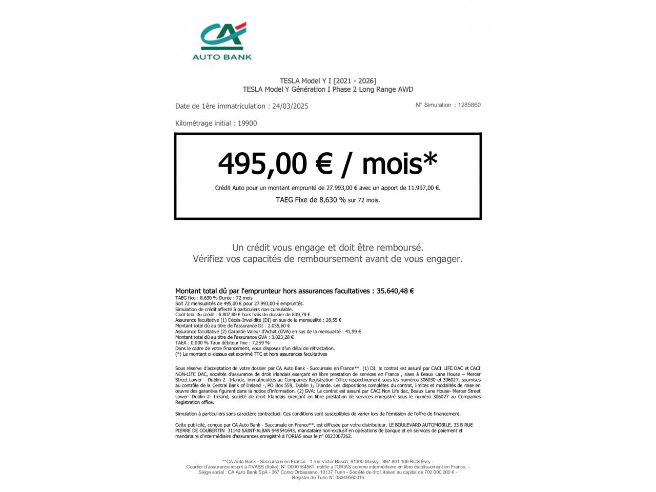 * Financement possible de 6 à 72 mois
