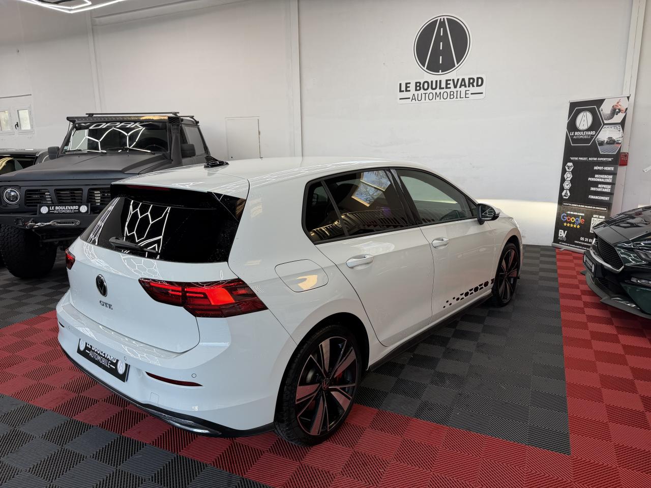 ‘Keyless Access Advanced’ sans alarme : Système de verrouillage/déverrouillage et de démarrage sans clé2 interfaces USB-C à l'avant et 2 prises de chargement USB-C derrière l’accoudoir pour les passagers arrièreActivation automatique des feux de détresse en cas de freinage d'urgenceAlerte de perte de pression des pneusAntipatinage électronique ASRApp-Connect sans filAssistance au freinage d'urgenceAssistant de changement de trajectoire "Side Assist"Baguette lumineuse entre les projecteursBanquette arrière rabattable 2/3 - 1/3 avec trappe à skisBlocage électronique de différentiel EDSCâble adaptateur USB-C vers USB-ACâble de recharge M2 UE Schuko coudé 8ACâble de recharge mode 3 type 2Cache-bagages amovibleCarte de recharge Volkswagen e-Pass avec 1 an d'abonnement et 50€ de crédit offertsCeintures de sécurité automatiques avant trois points à enrouleur, réglables en hauteur, avec prétensionneursCiel de pavillon noirClimatiseur "Air Care Climatronic" 3 zones et filtre anti-allergène et éléments de commandes à l'arrièreCompartiment de rangement et prise 12 V à l' AVContrôle vocal intuitifCorrecteur électronique de trajectoire ESPDigital Cockpit Pro : combiné d’instruments digital avec écran digital haute résolution couleur de 10.25”Direction progressiveDisques de frein 17” à l'avant et à l'arrièreE-call : Appel d’urgence manuel ou automatiqueEclairage à LED de la plaque d'immatriculation arrièreEclairage d'ambiance - 30 couleurs et éclairage de plancher à l'avantEclairage d'ambiance extérieur : poignées de portes éclairées et éclairage périmétrique avec projection du logoEclairage de plancher à LED à l'avant avec possibilité de sélectionner la couleur d'éclairageEtriers de frein rouge à l'avant et à l'arrièreFatigue Detection : Système de détection de fatigue du conducteurFeu arrière de brouillard d’un côté, feux de recul des deux côtésFixation pour siège enfant ISOFIX (arrière, x2)Frein de stationnement électromécanique avec fonction d’immobilisation en pente ‘Auto hold’ et assistant de démarrage en côteFront assist avec freinage d’urgence et détection de piétonsGénérateur de son e-soundIndicateur de température extérieure avec avertisseur de gelInterface Bluetooth pour téléphone portable (mains-libres)Interface téléphonique avec fonction de charge inductiveLane Assistant : assistant de maintien dans la voieLiseré bleu dans la calandre et les pharesPack Travel Assist: combinaison du Lane Assist, du Side Assist, du Régulateur de distance et de l'Emergency Assist qui interagissentPack visibilitéPalettes au volantPare-chocs avant et arrière spécifiques GTE, prise d'air en structure nid d'abeilles à l'avantPark Assist : Système d'assistance au stationnement en créneau et en batailleParkPilot : Système d’aide au stationnement avant/arrière avec signaux sonores et visualisation de la distance des obstacles sur l’écranPeinture unie Blanc PurPoignées de portes couleur carrosseriePréparation pour ‘We Connect’ et ‘We Connect Plus’ – Durée 3 ansPrise 12V dans le coffreProjecteurs antibrouillard dans le bouclier avant et feux de braquageProjecteurs IQ.Light - Matrix LEDProtection antidémarrageRear Assist : Caméra de recul avec visualisationRéception radio numérique DAB+Régulateur de vitesse adaptatif et prédictif 'ACC' jusqu’à l’arrêt completRépartiteur électronique de freinage EBVRétroviseurs extérieurs rabattables et réglables électriquement, avec fonction mémoire et dégivrage séparéSélection du profil de conduiteSellerie tissu ‘Scale Paper’Service d’appel d’urgence (inclus 10 ans et disponible indépendamment de l’inscription dans le système d’infotainment)Sièges avant réglables en hauteurSièges sport à l'avant spécifiques GTE avec appuis-tête intégrés et appuis lombaires à l'avantSign Assist: Reconnaissance des panneaux de signalisation et affichage sur le ‘Digital Cockpit’ et l’écran du système de radionavigationSystème d'antiblocage des roues ABSSystème de Freinage anti-multicollisionSystème Navigation & Infotainment ‘Discover Media’ avec «Services de streaming et radio via Internet»Technologie Car2XTémoin et alerte sonore de non-bouclage des ceintures de sécurité avant et arrièreTrains roulants sportTrappe pour recharge électrique : aile avant gaucheVerrouillage centralisé avec télécommande à fréquence radio par clé rétractableVitres arrière et lunette arrière surteintées à 65%Vitres avant et arrière électriquesVolant réglable en hauteur et en profondeurVolant sport multifonction en cuir spécifique GTE avec commandes tactiles, retour haptiqueXDS : Système agissant comme un différentiel autobloquant électronique permettant une meilleure motricité en courbe grâce à une répartition optimale de la puissance et du couple sur les roues avant